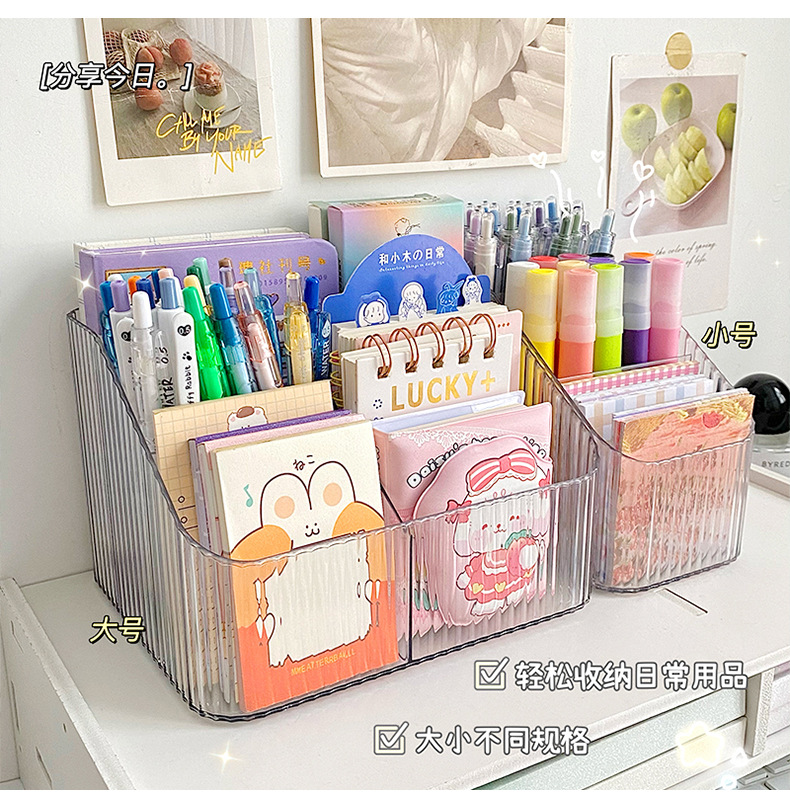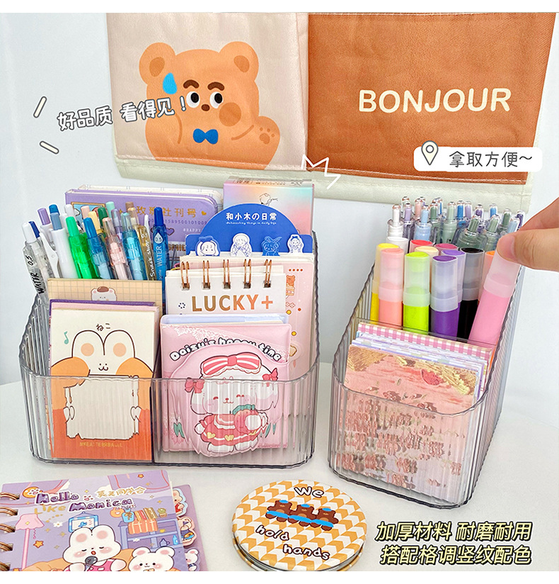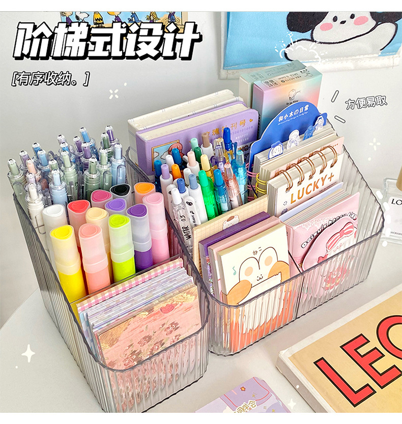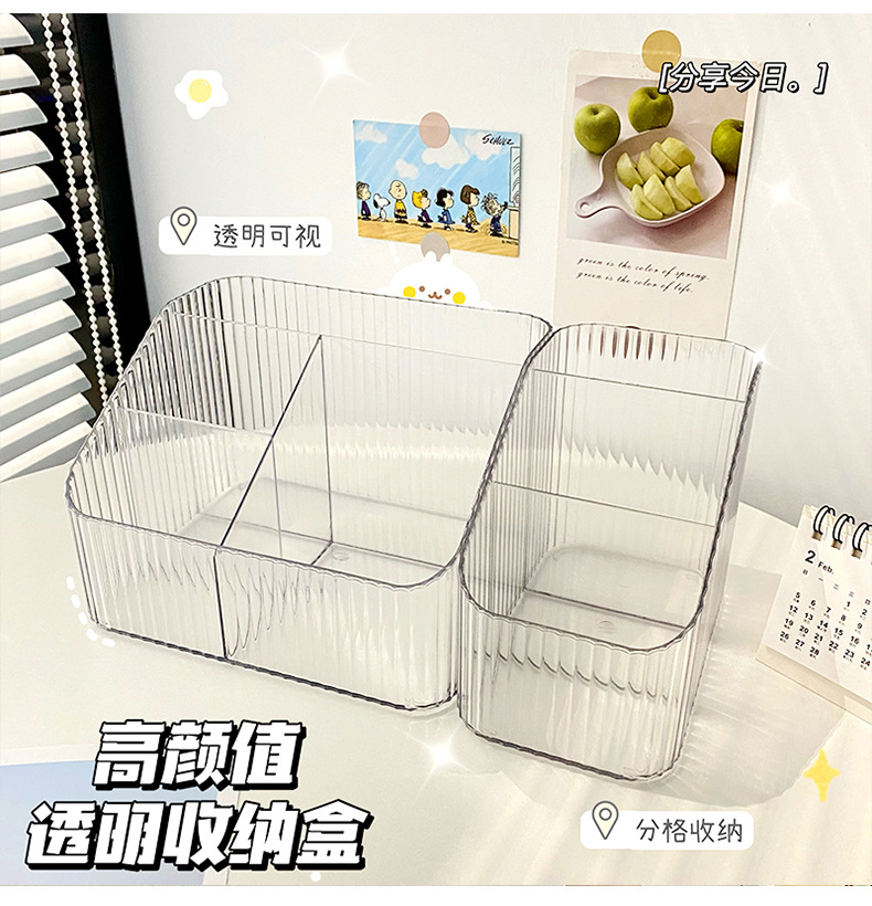 简约轻奢收纳盒桌面化妆品杂物整理盒办公室 学生文具笔筒储物盒