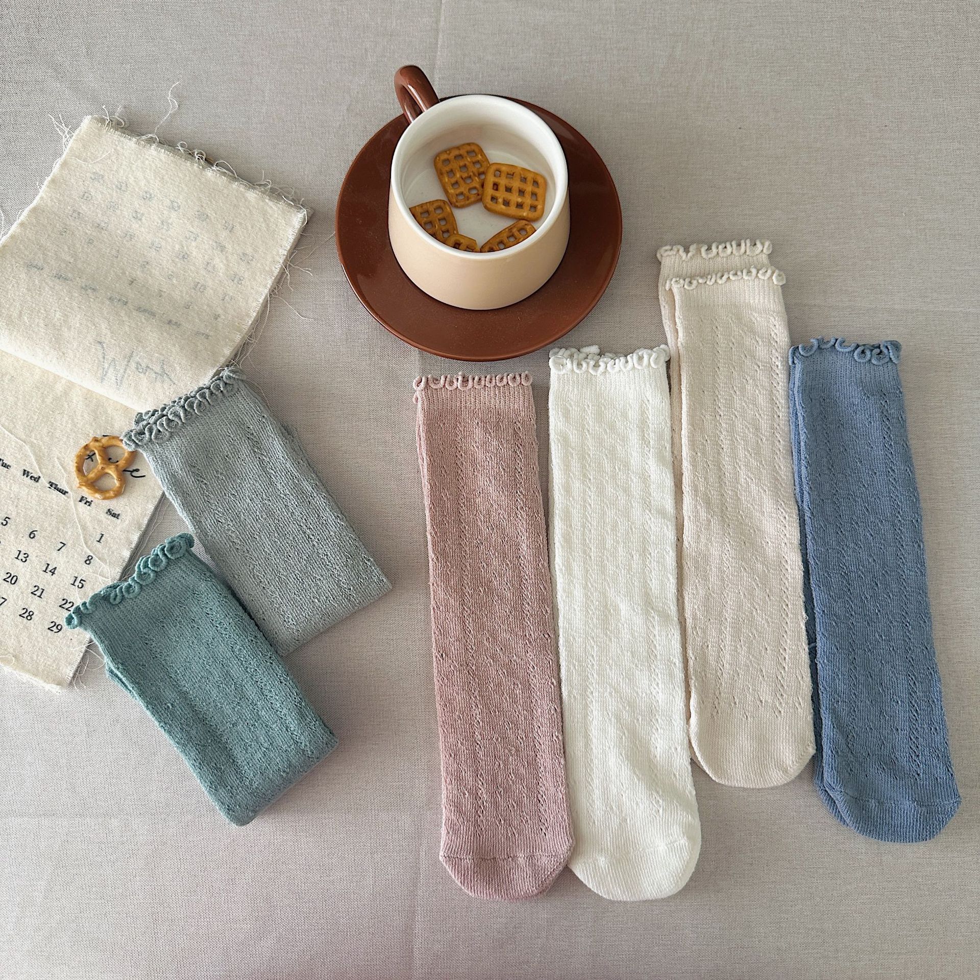 维木童装儿童袜子2024秋季新款男女童棉袜甜美网眼无跟袜宝宝短袜