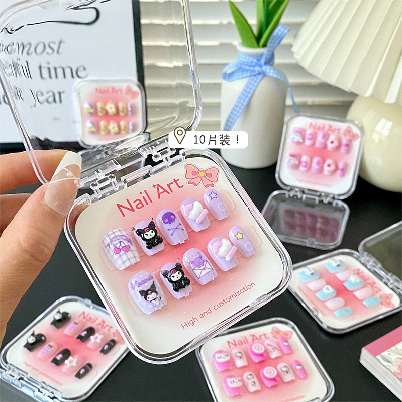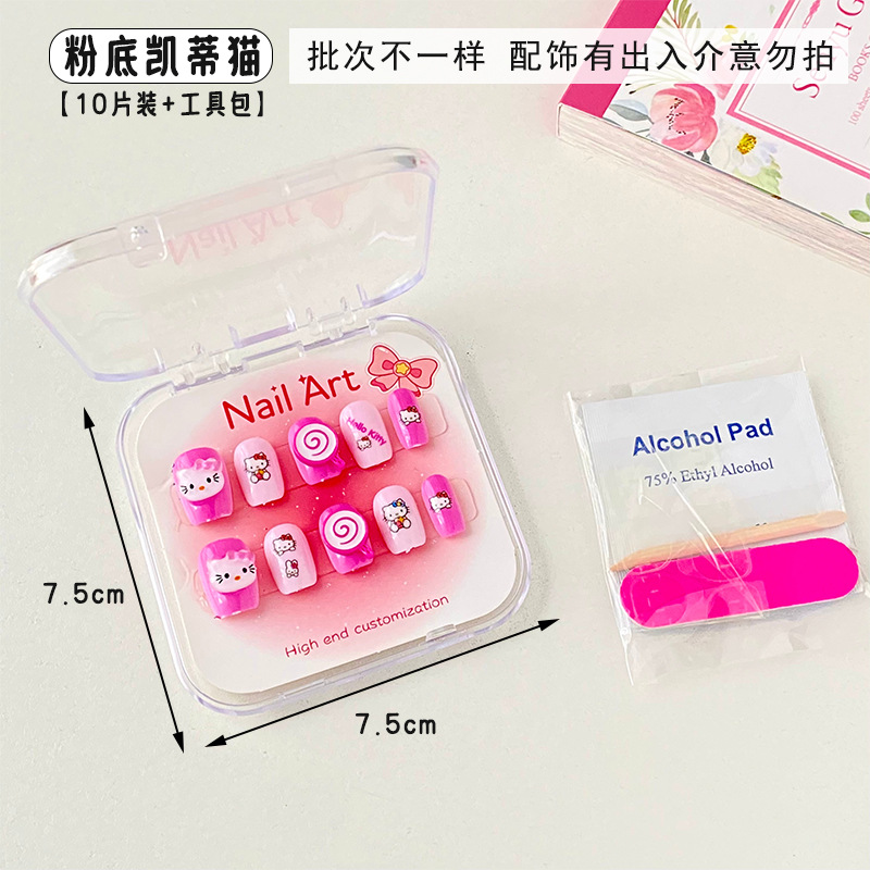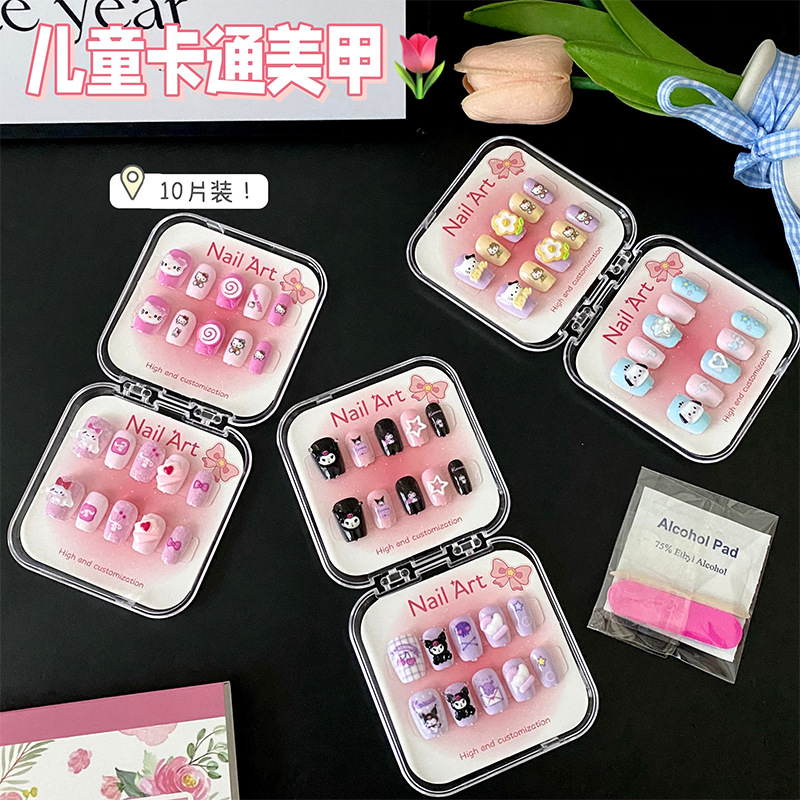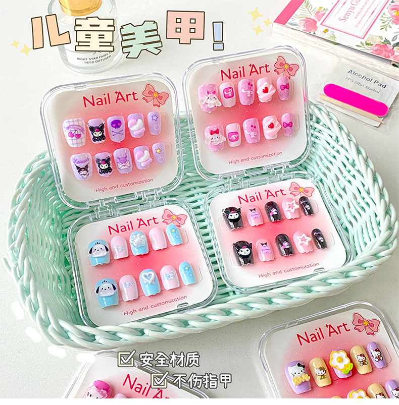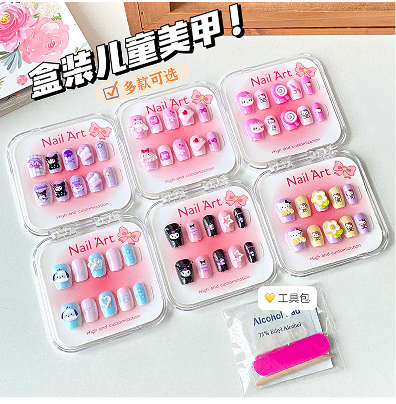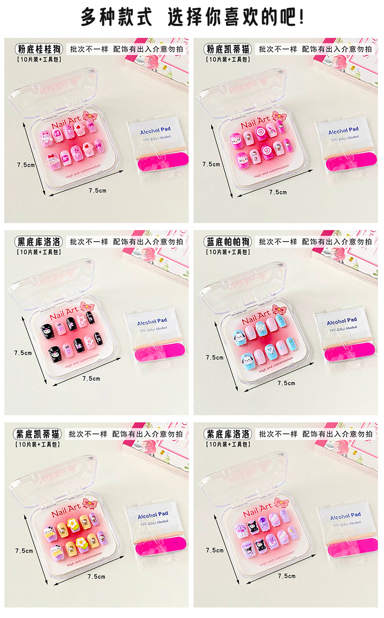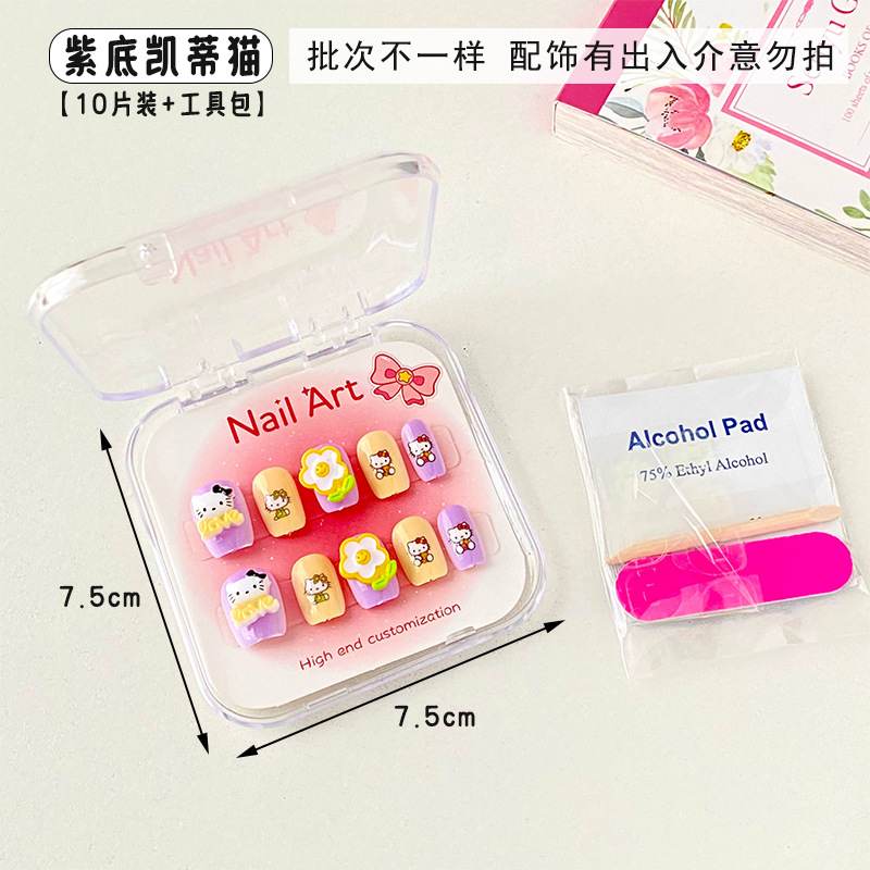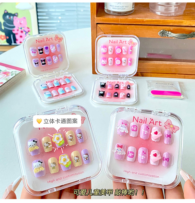 新款凯蒂猫精美儿童穿戴甲可爱diy三丽鸥美甲盒透明盒装厂家批发