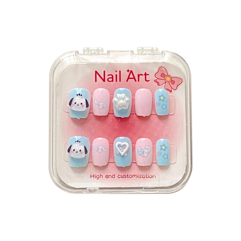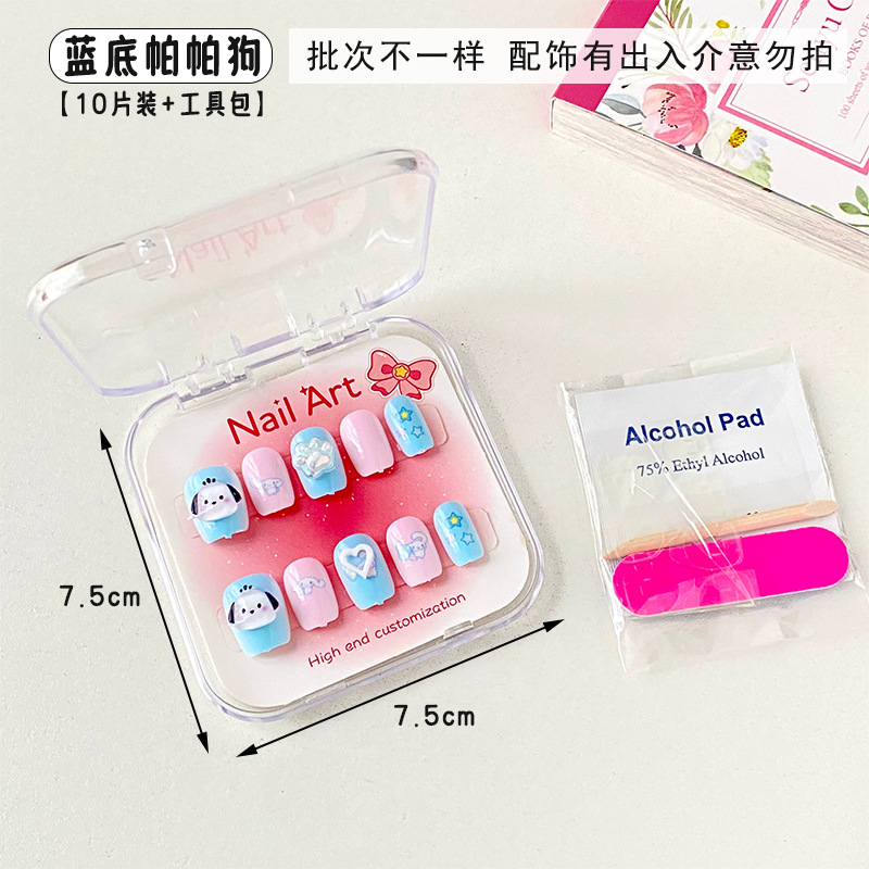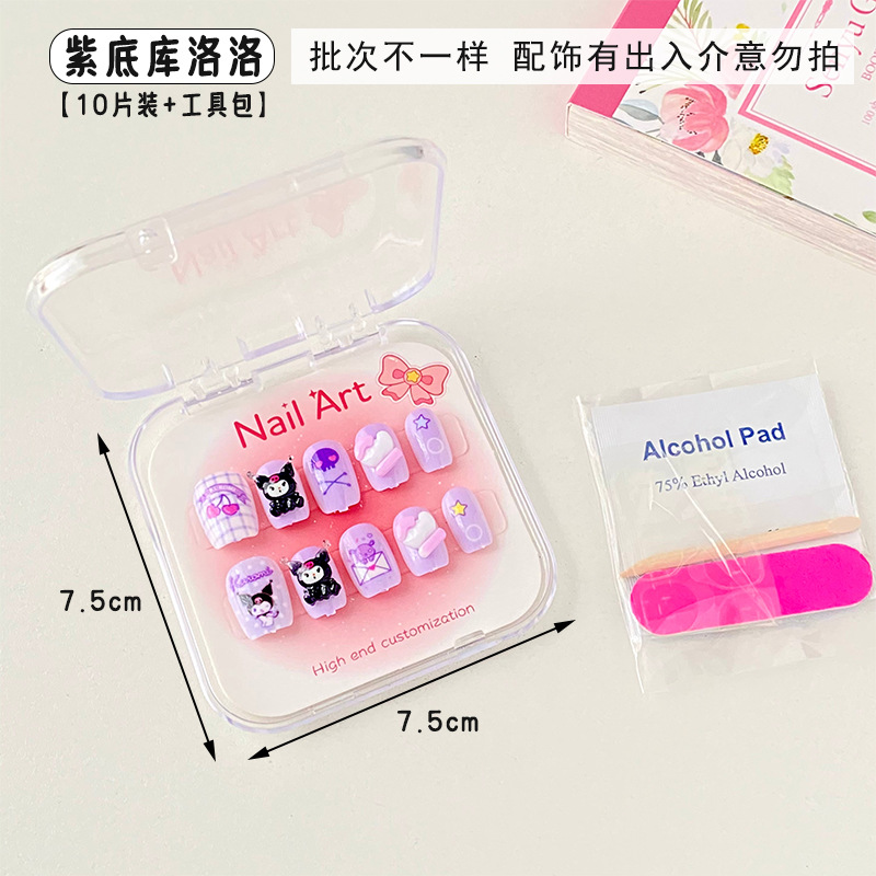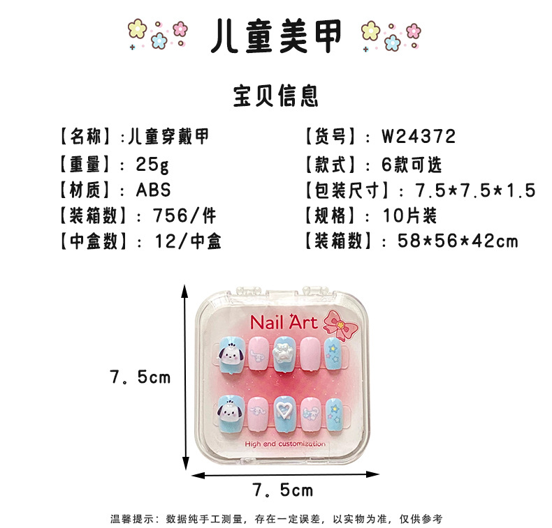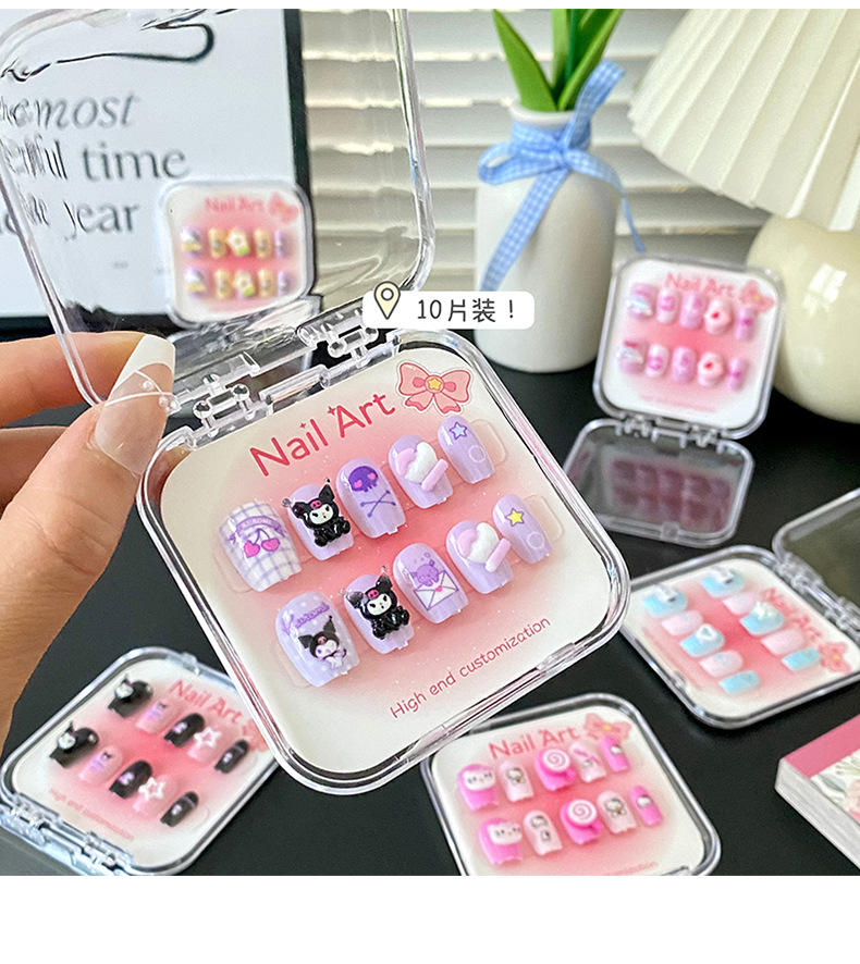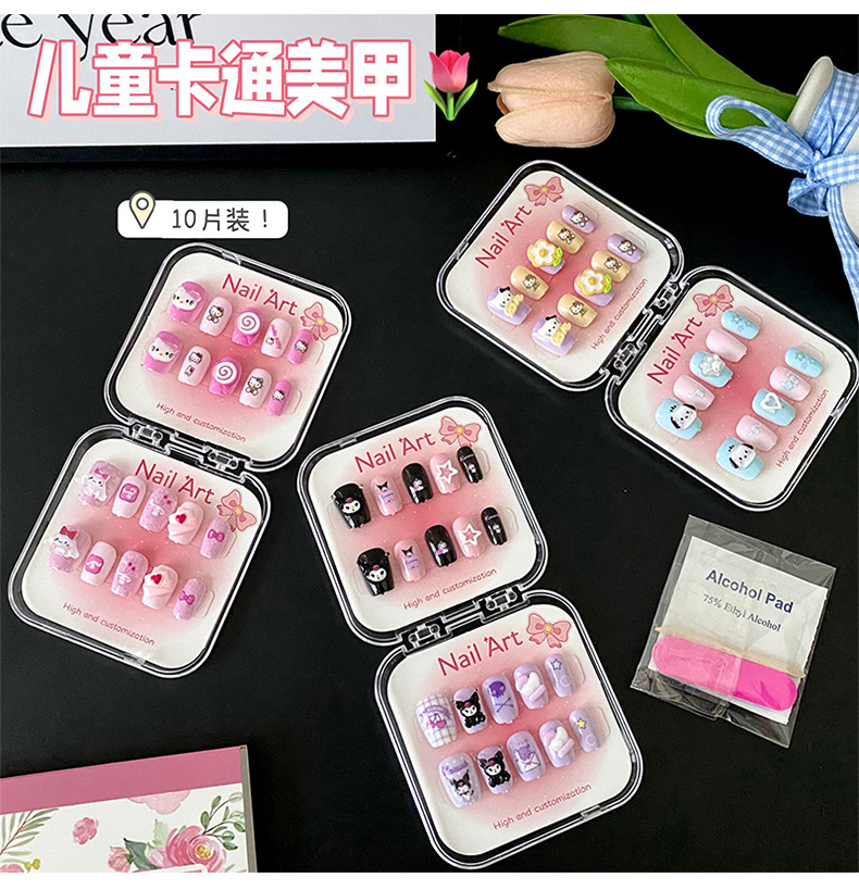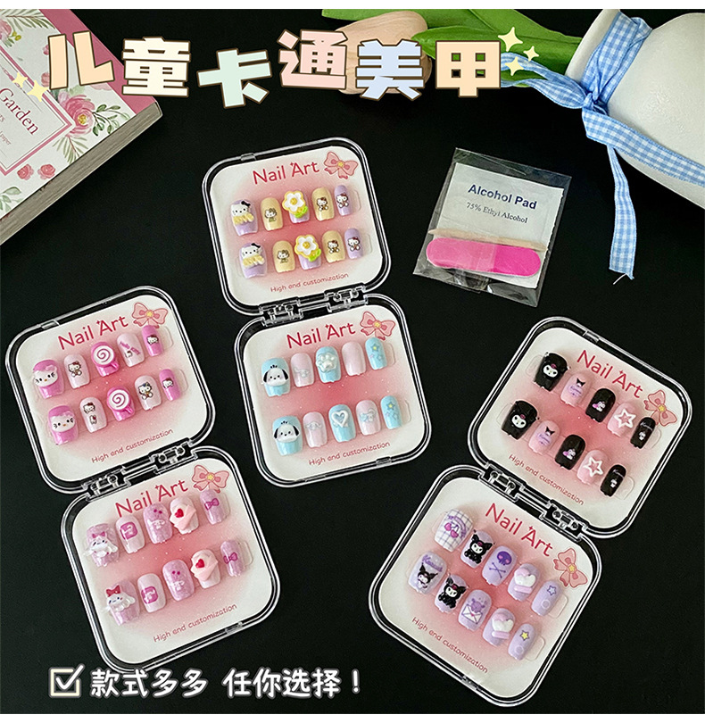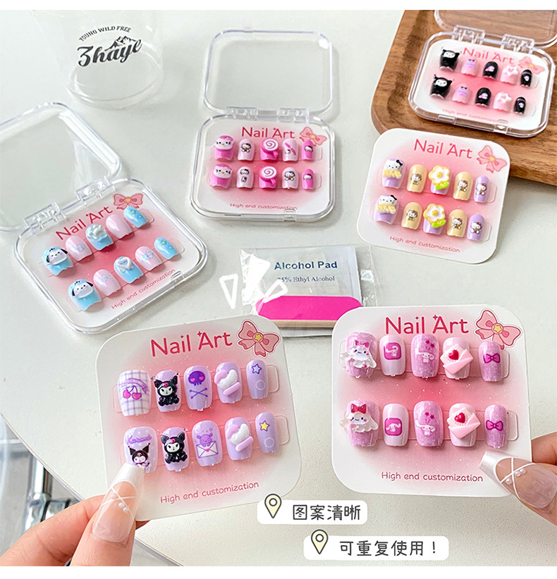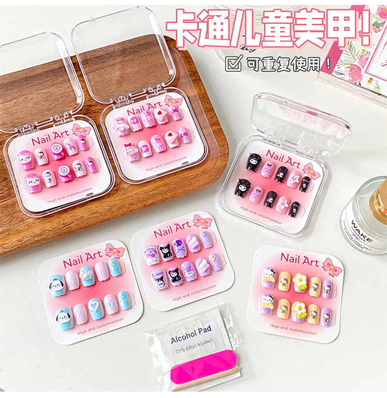 新款凯蒂猫精美儿童穿戴甲可爱diy三丽鸥美甲盒透明盒装厂家批发