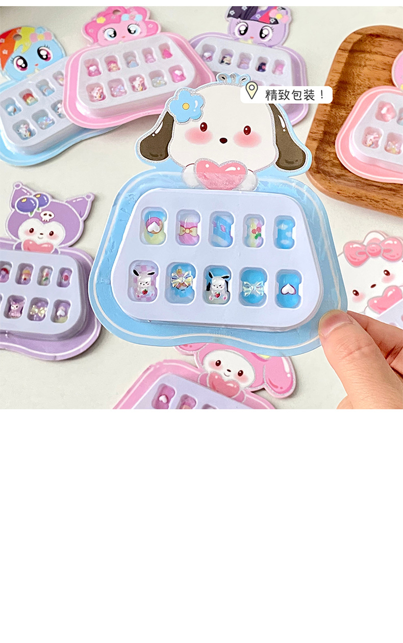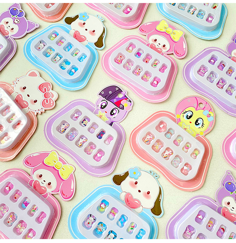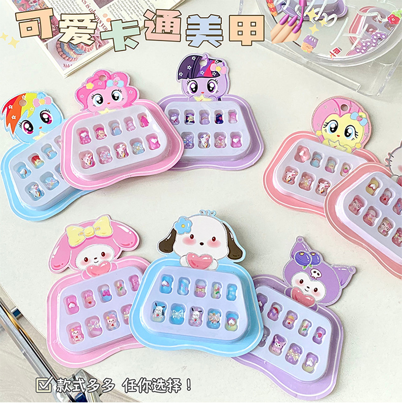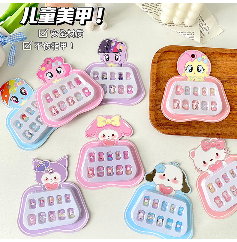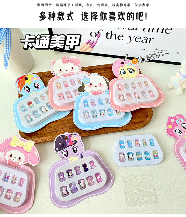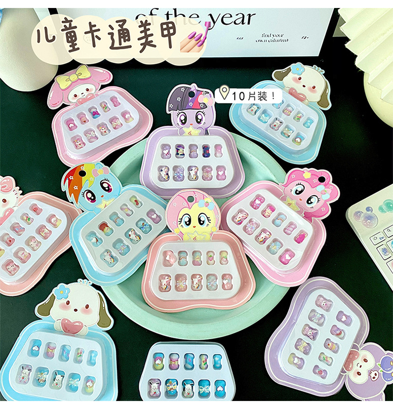 新款闪亮可爱卡通立体美甲片儿童指甲贴片公主穿戴美甲贴现货批发