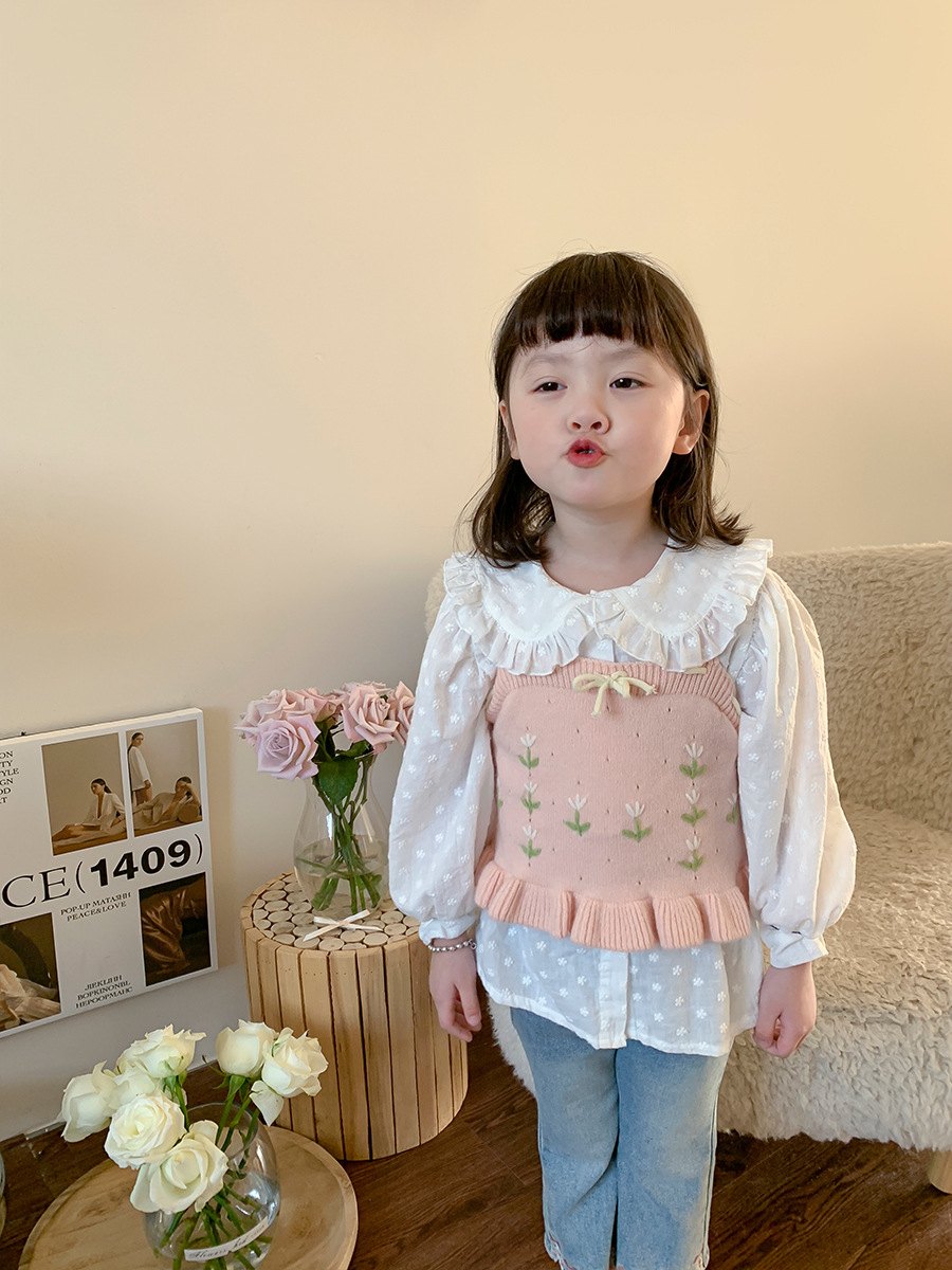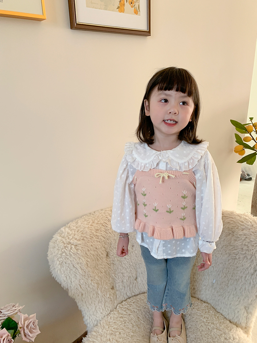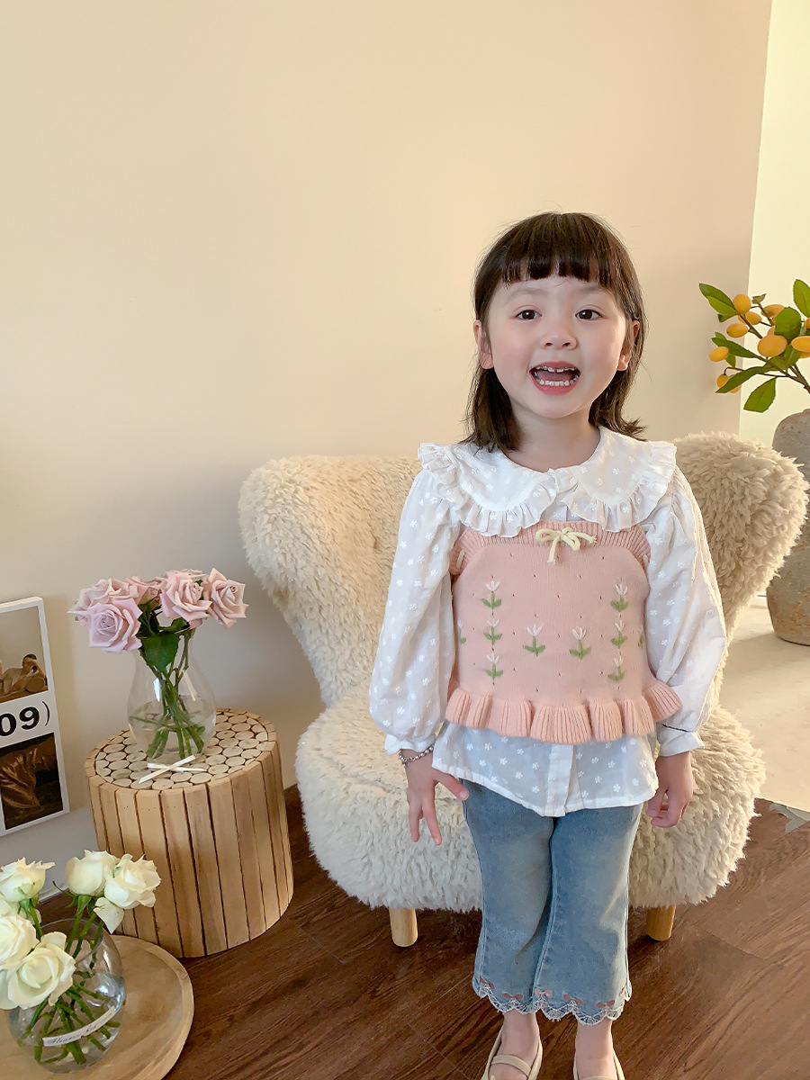维木童装儿童套装2024春装新款女童韩版洋气背心衬衫裤子宝宝衣服