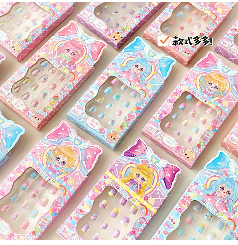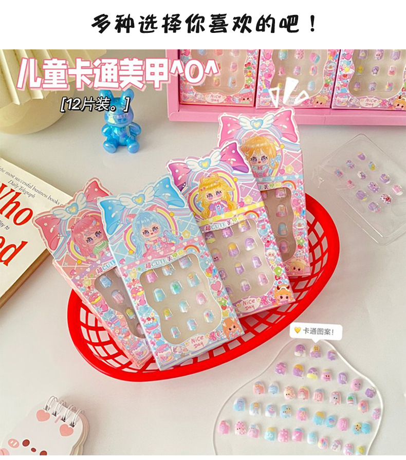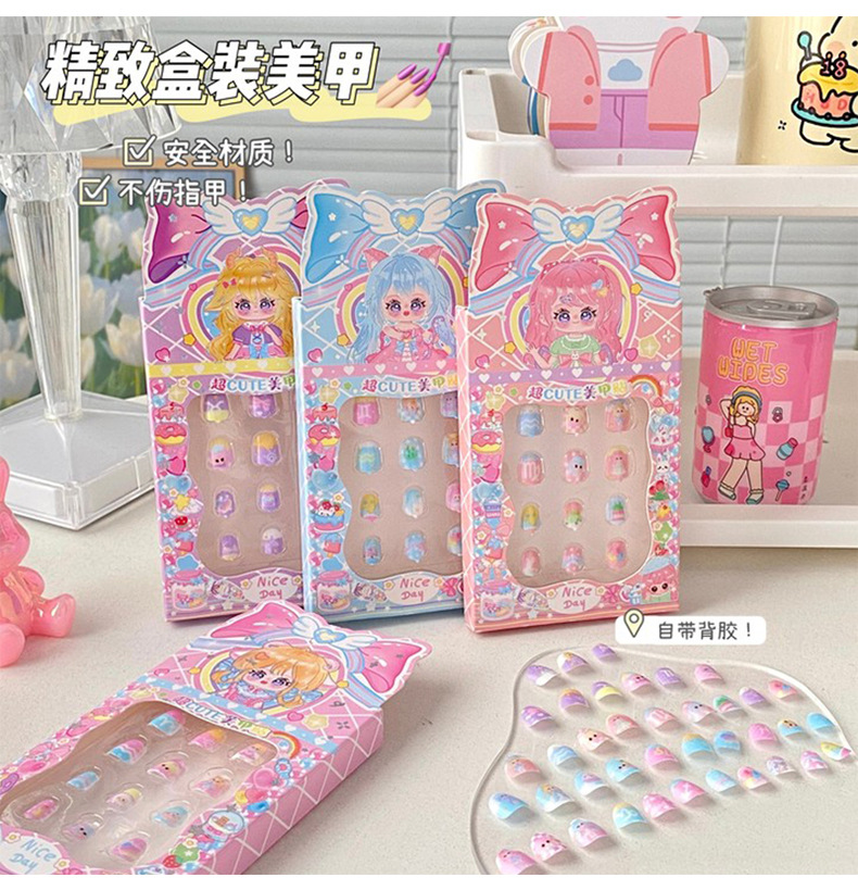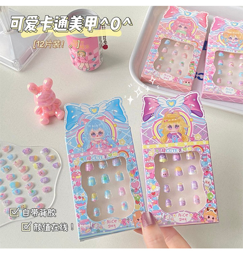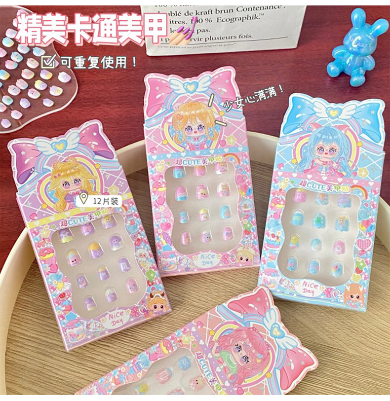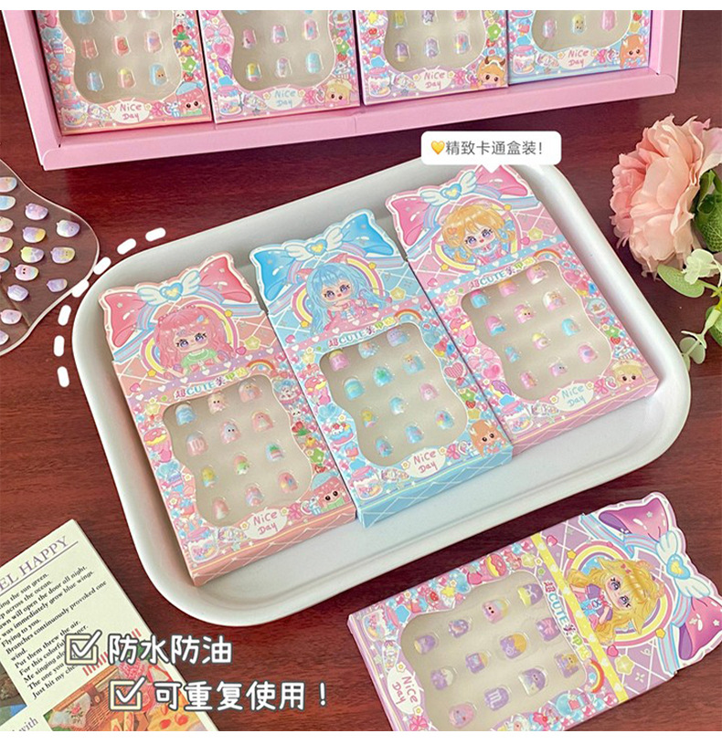 新款儿童卡通美甲贴果冻胶可爱美少女假指甲可拆卸甲片礼物批发