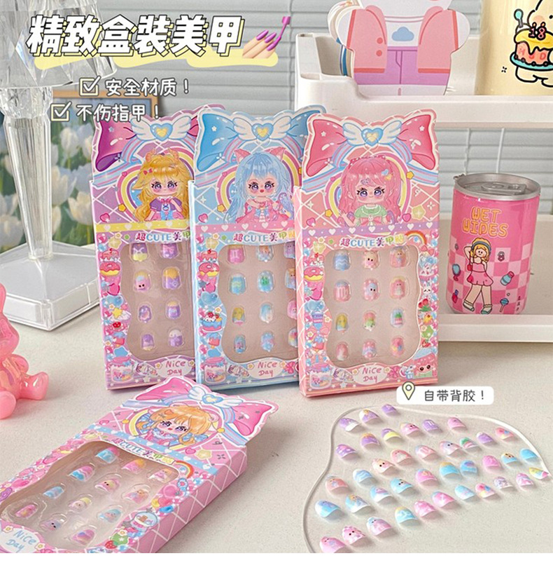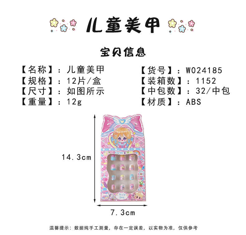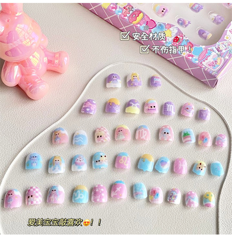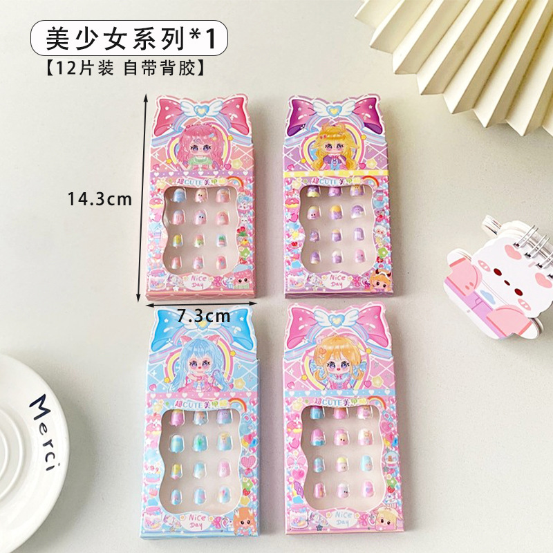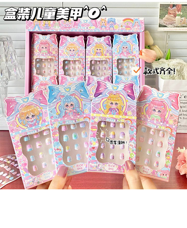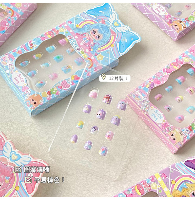 新款儿童卡通美甲贴果冻胶可爱美少女假指甲可拆卸甲片礼物批发