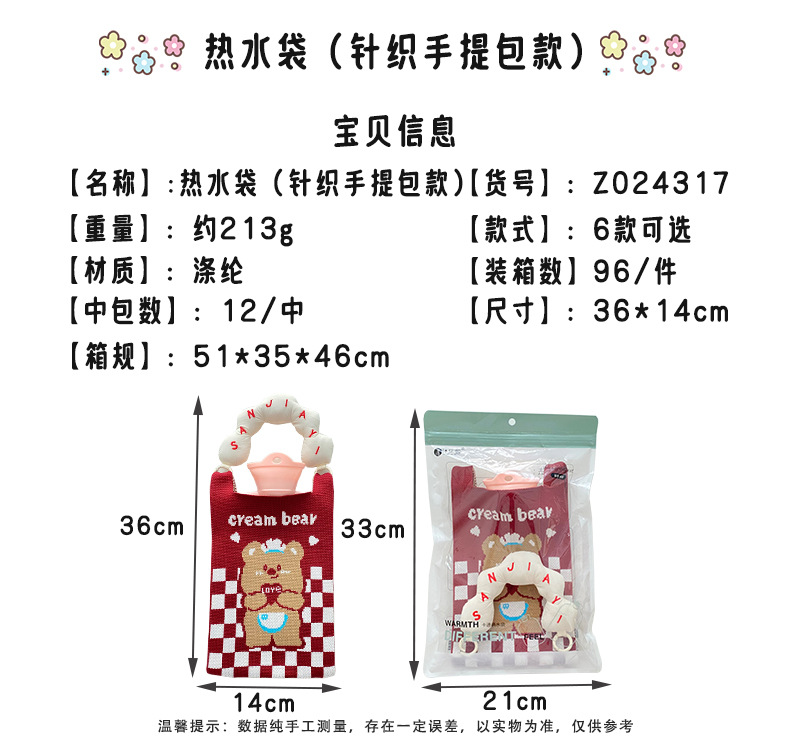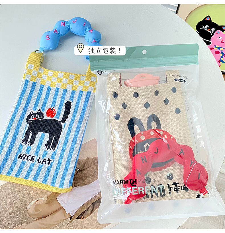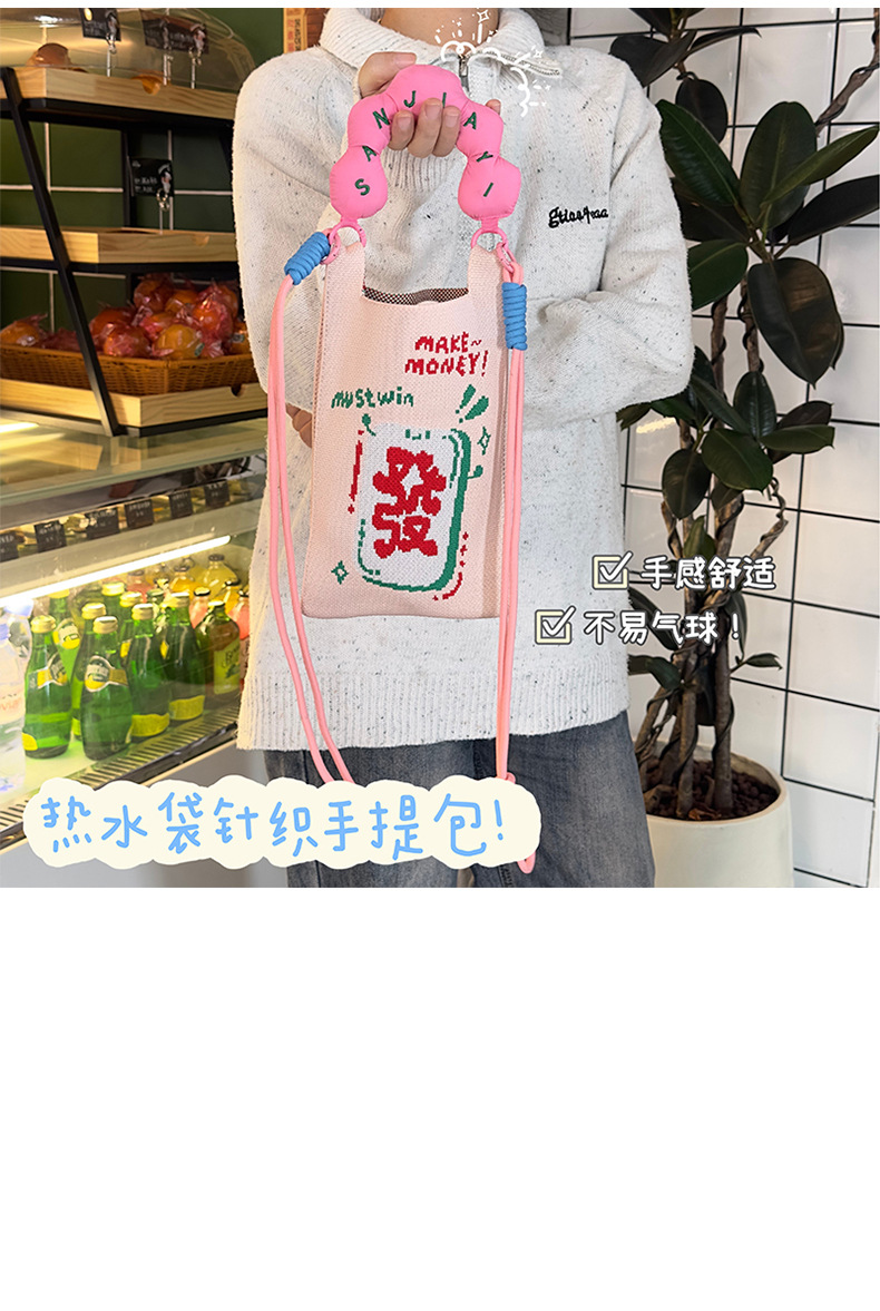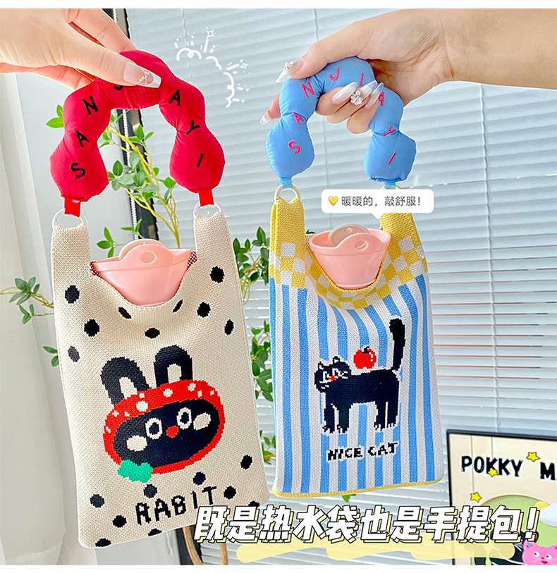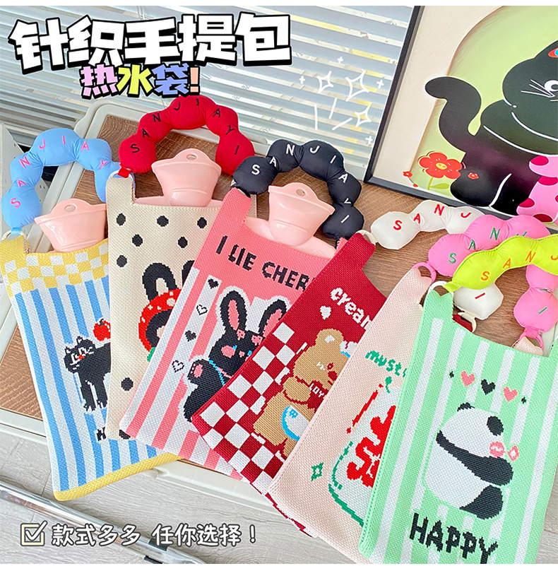网红爆款针织手提热水袋防爆注水袋学生暖手袋便携可爱挎包暖手宝