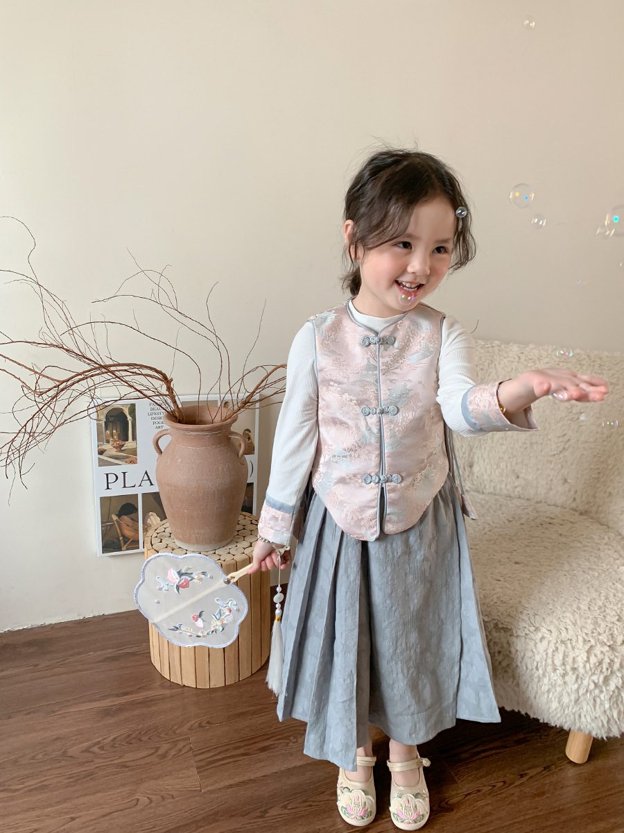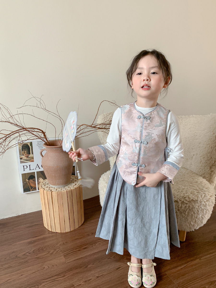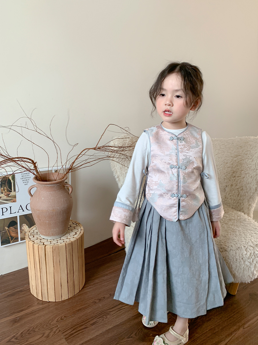 维木童装女童套装2024夏季新款儿童韩版新中式上衣裙子女宝宝衣服