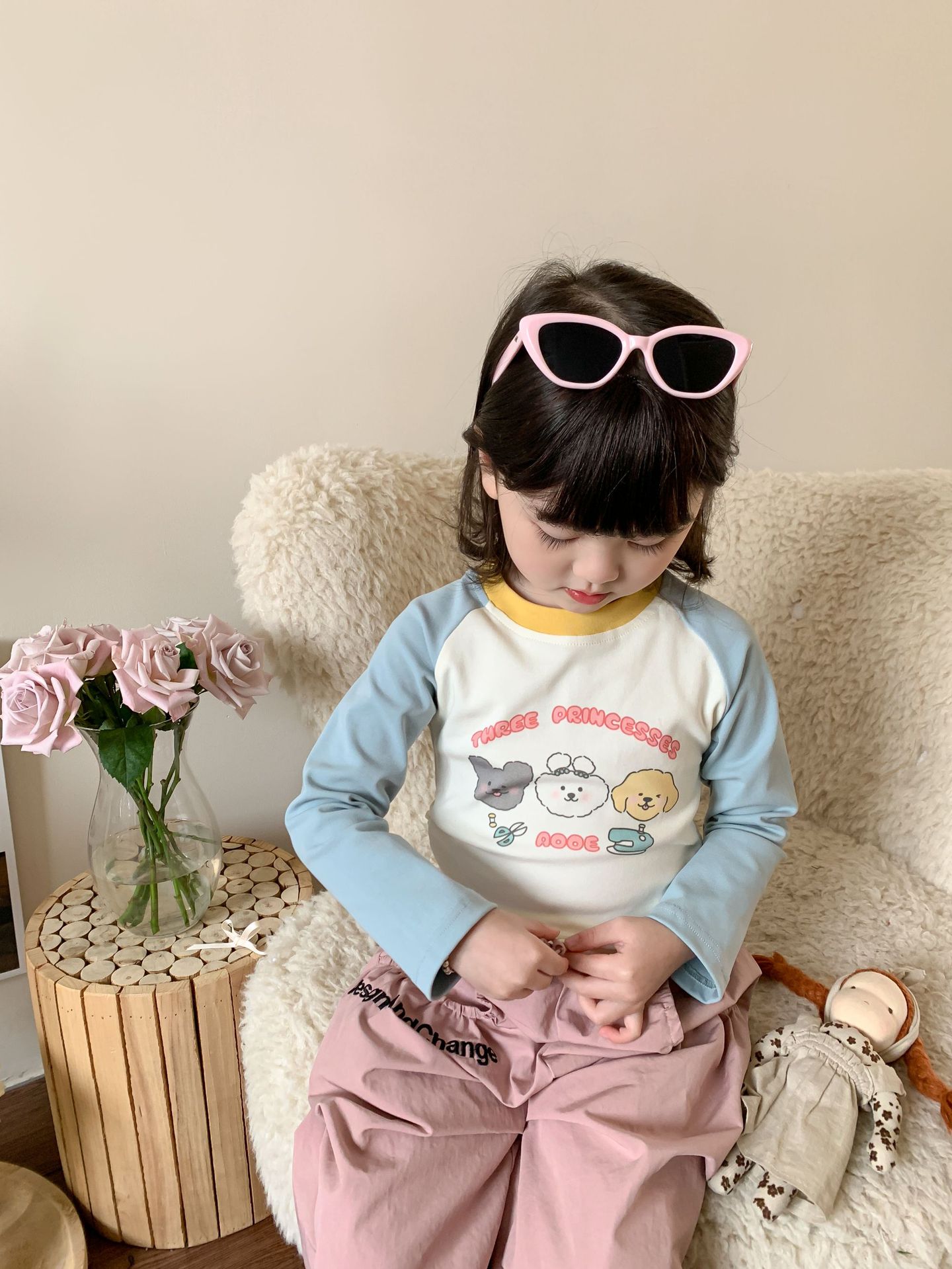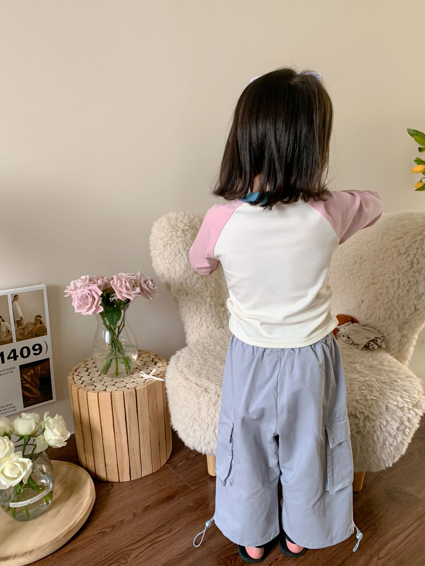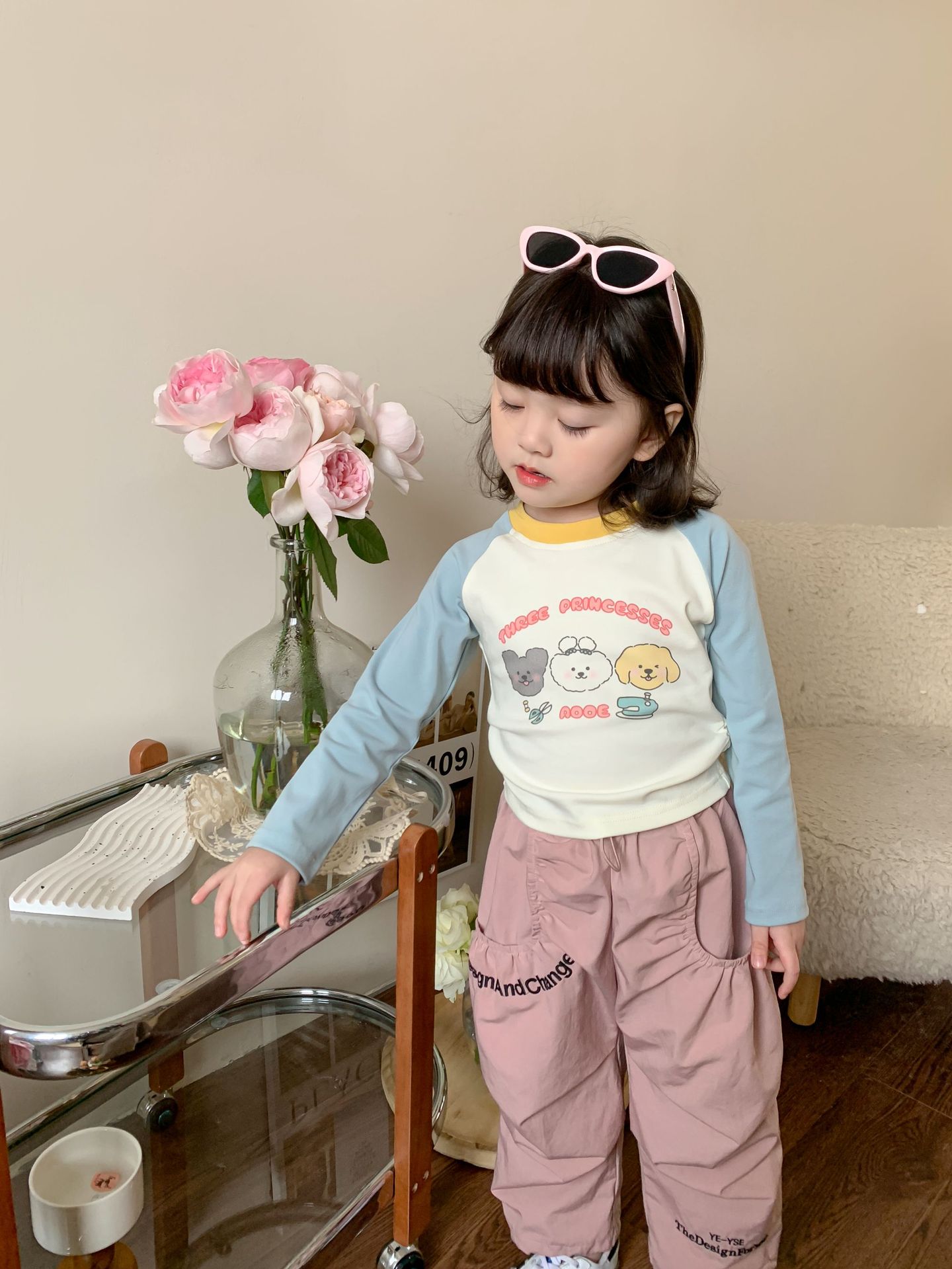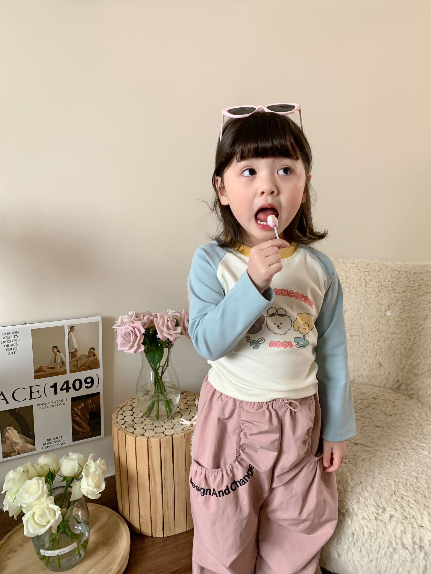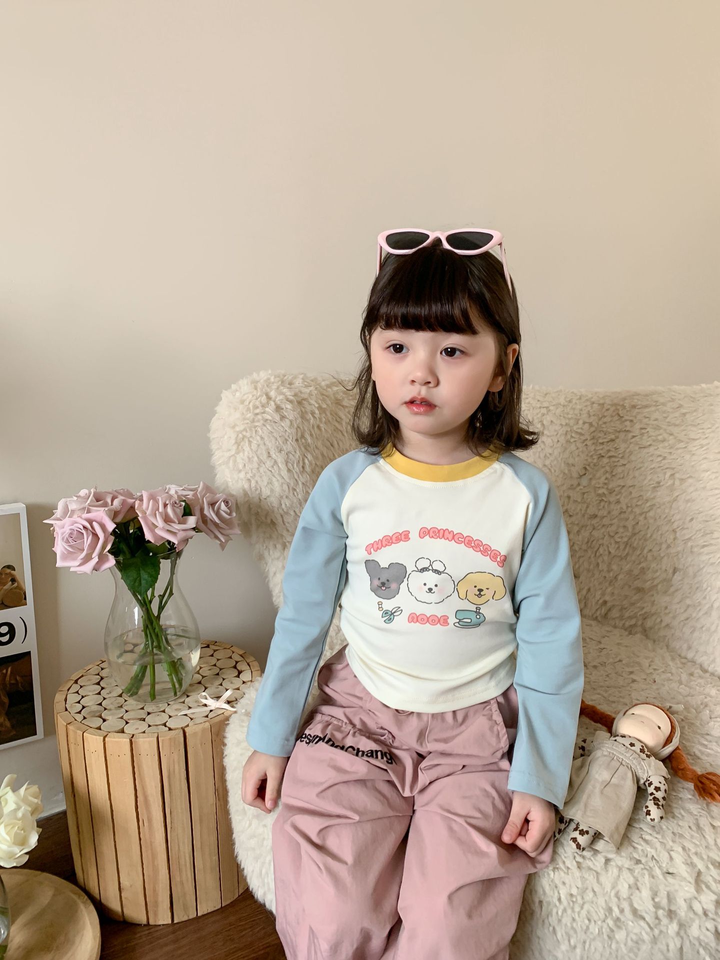 维木童装女童t恤2024春季新款儿童韩版拼色插肩长袖上衣2宝宝衣服