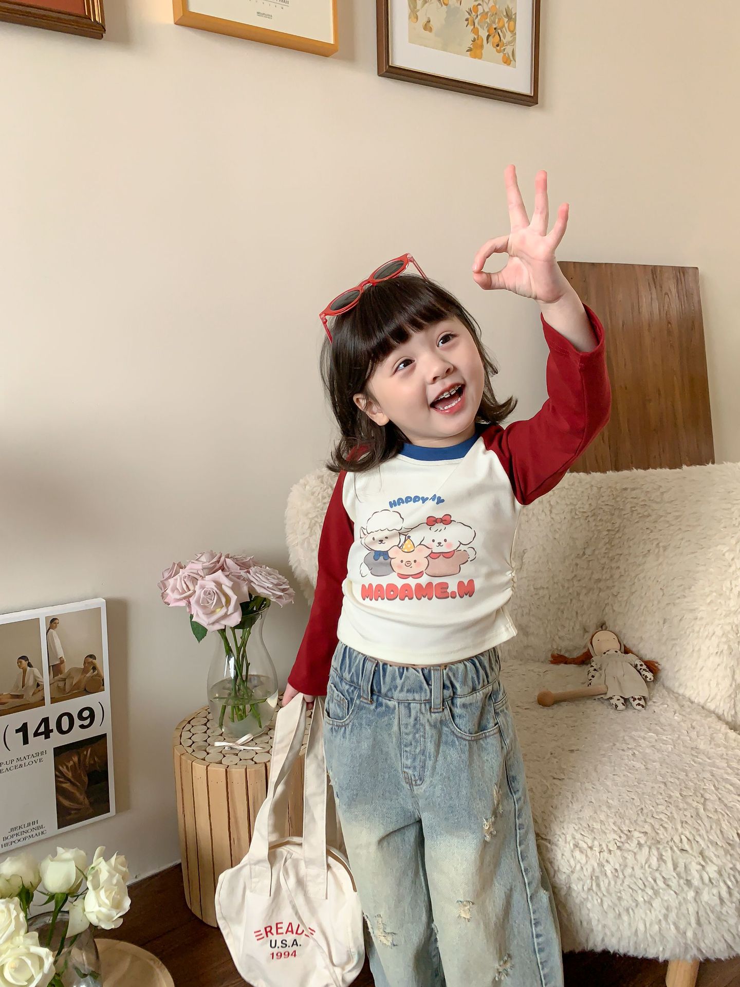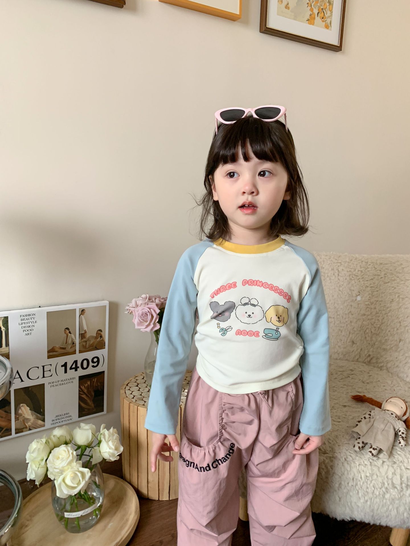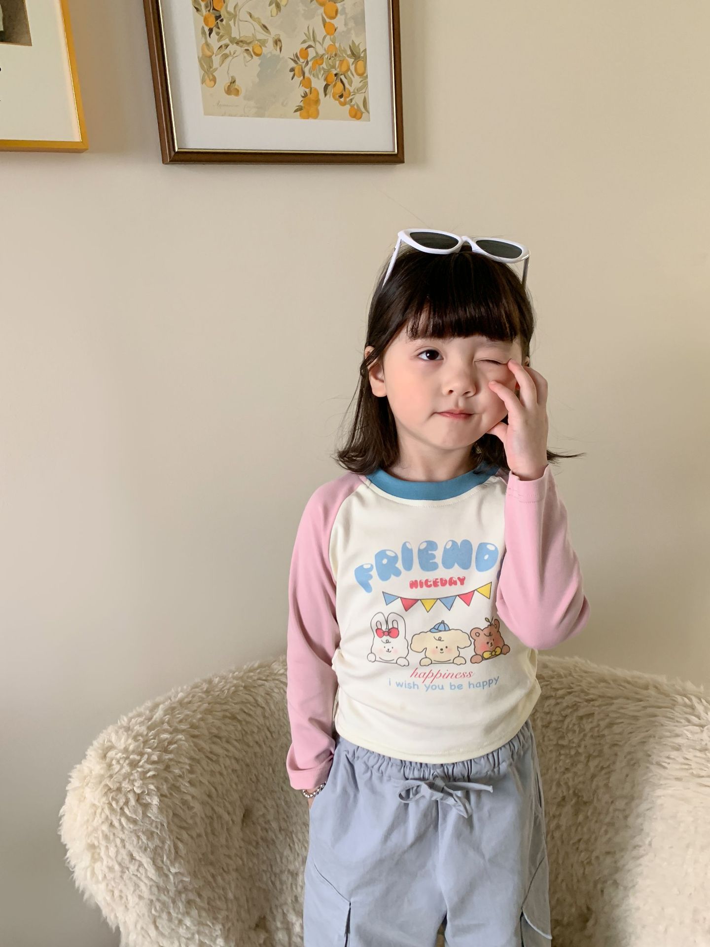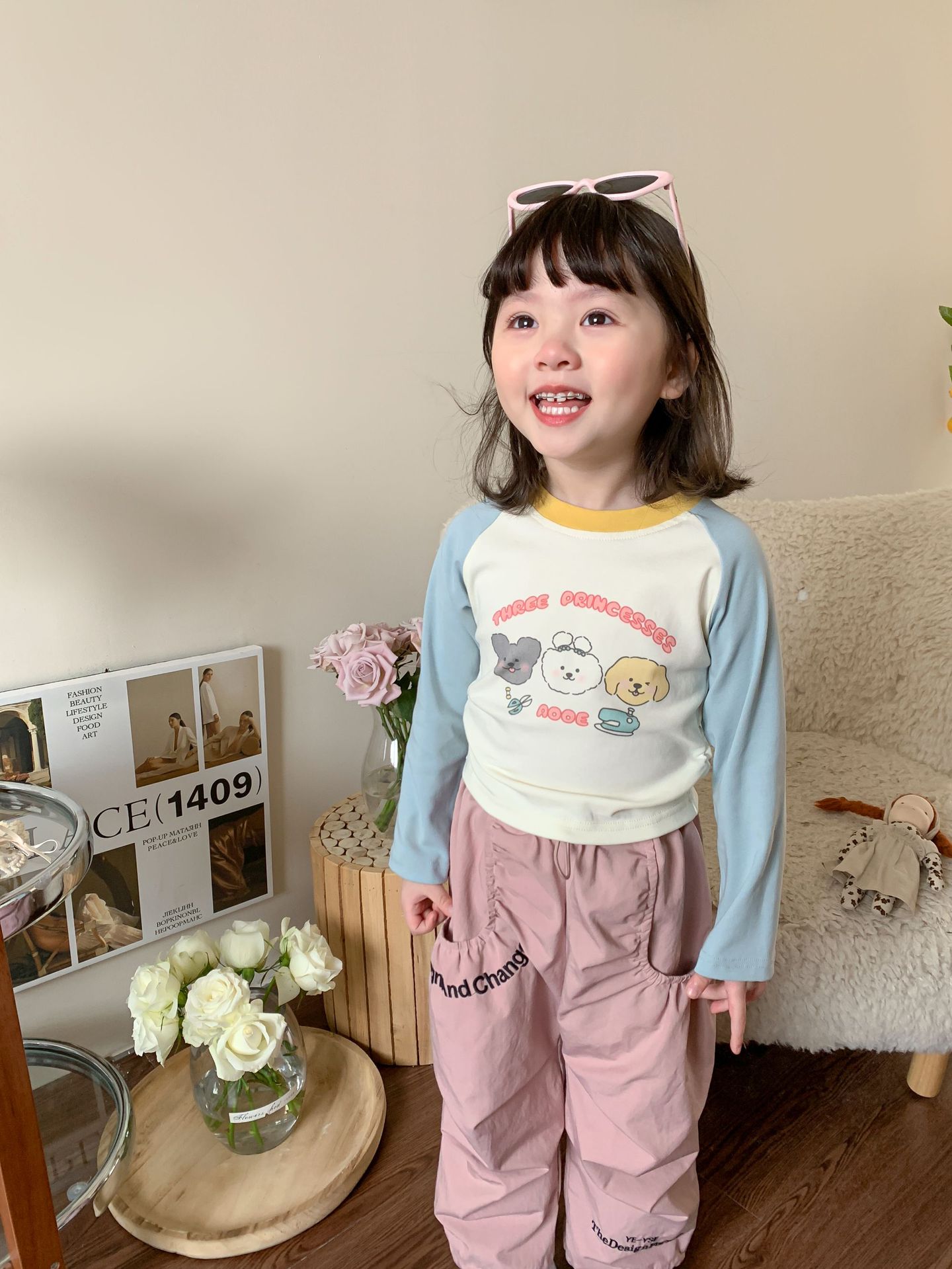 维木童装女童t恤2024春季新款儿童韩版拼色插肩长袖上衣2宝宝衣服
