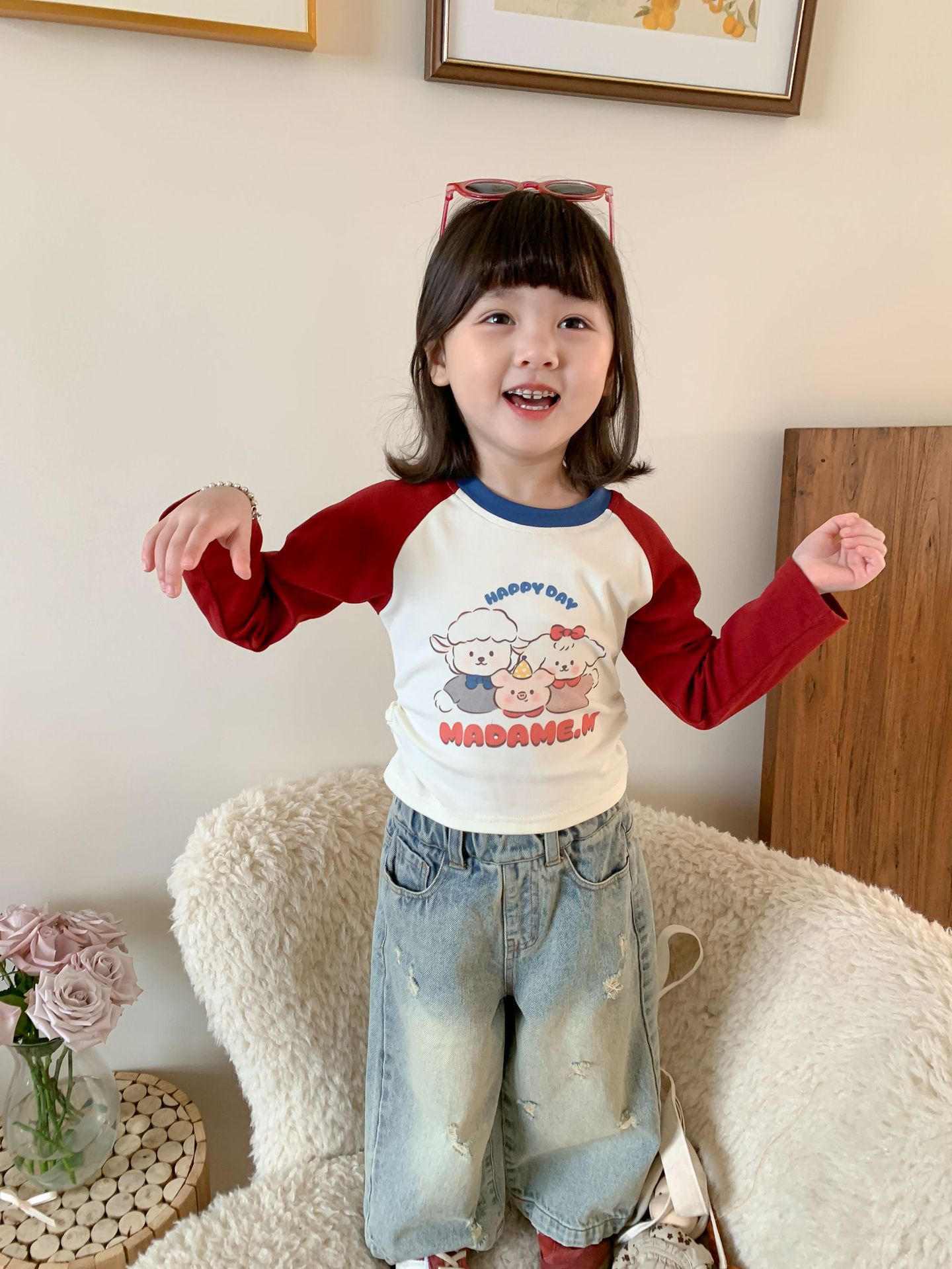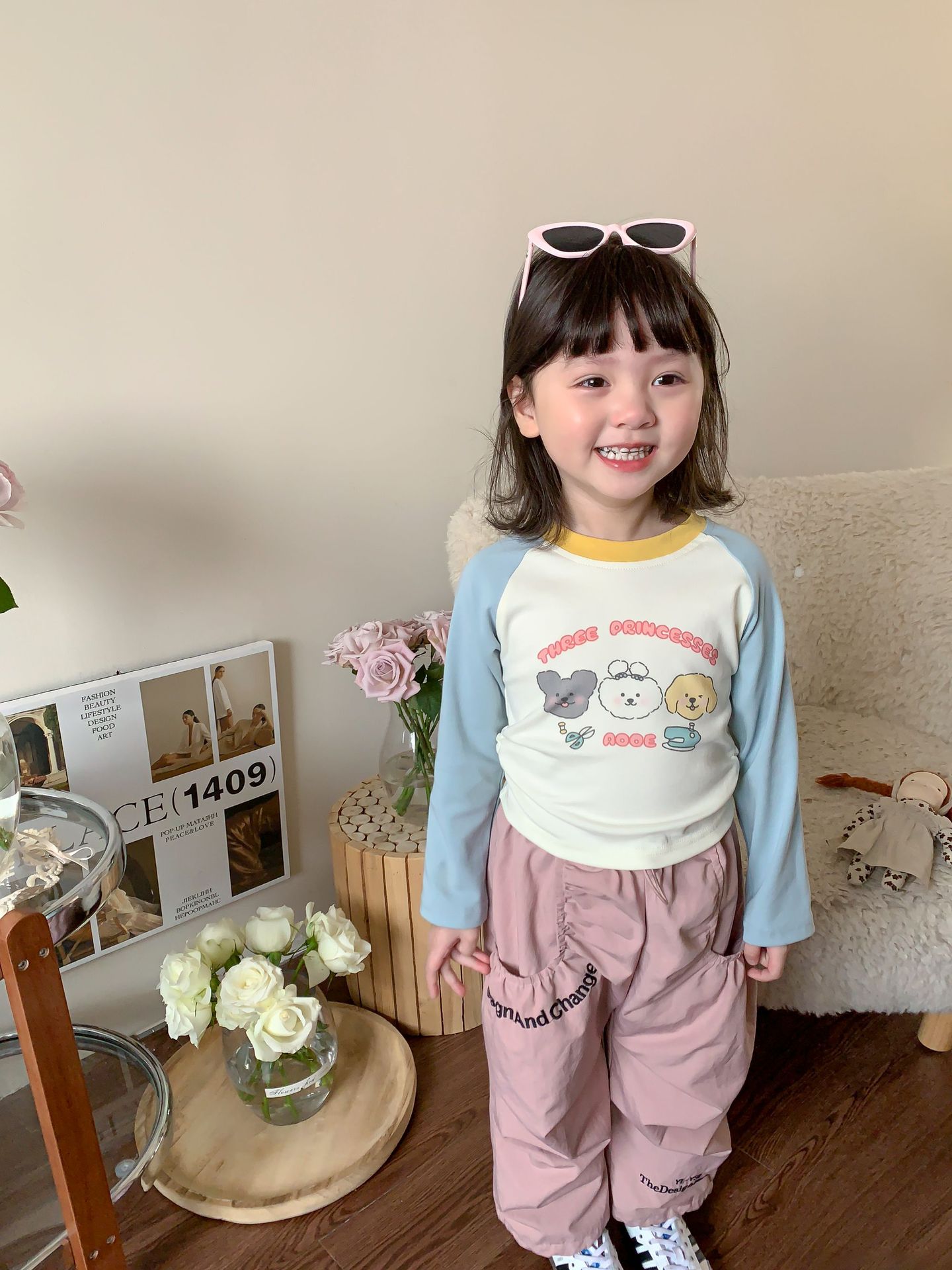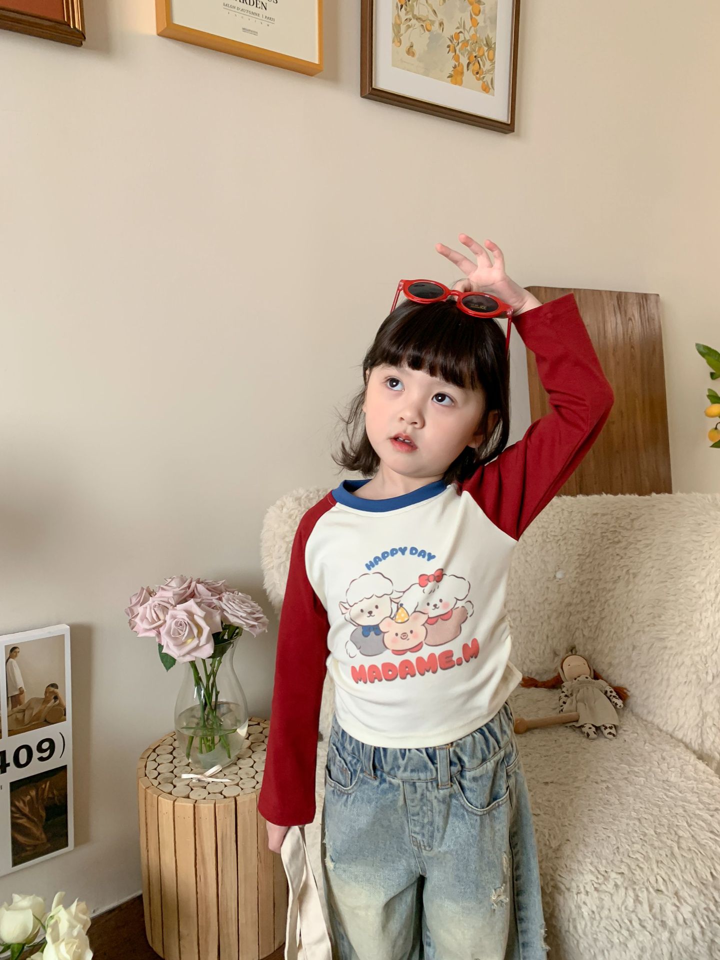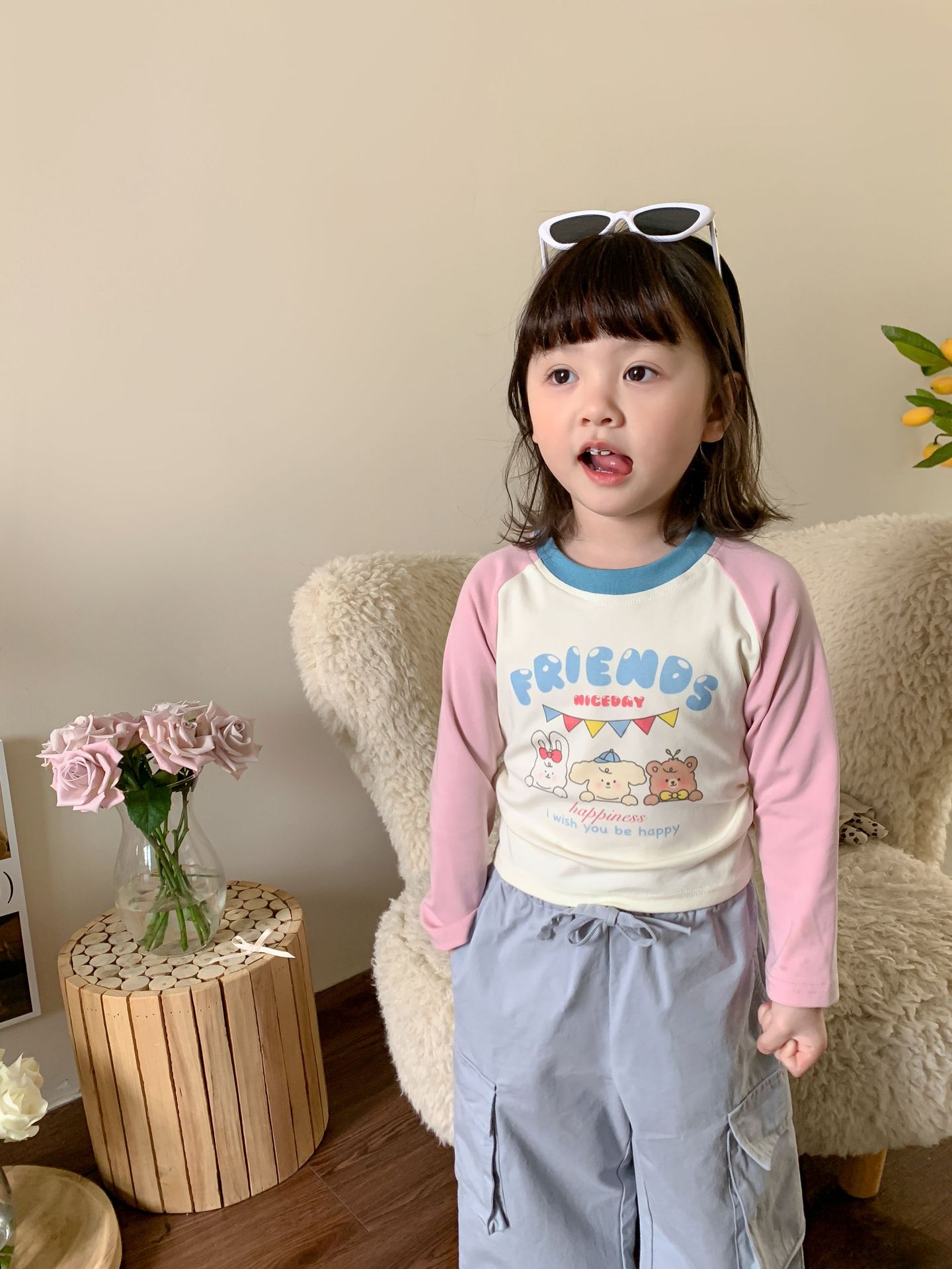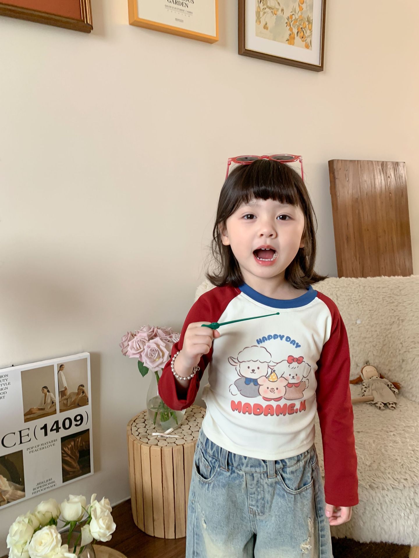 维木童装女童t恤2024春季新款儿童韩版拼色插肩长袖上衣2宝宝衣服