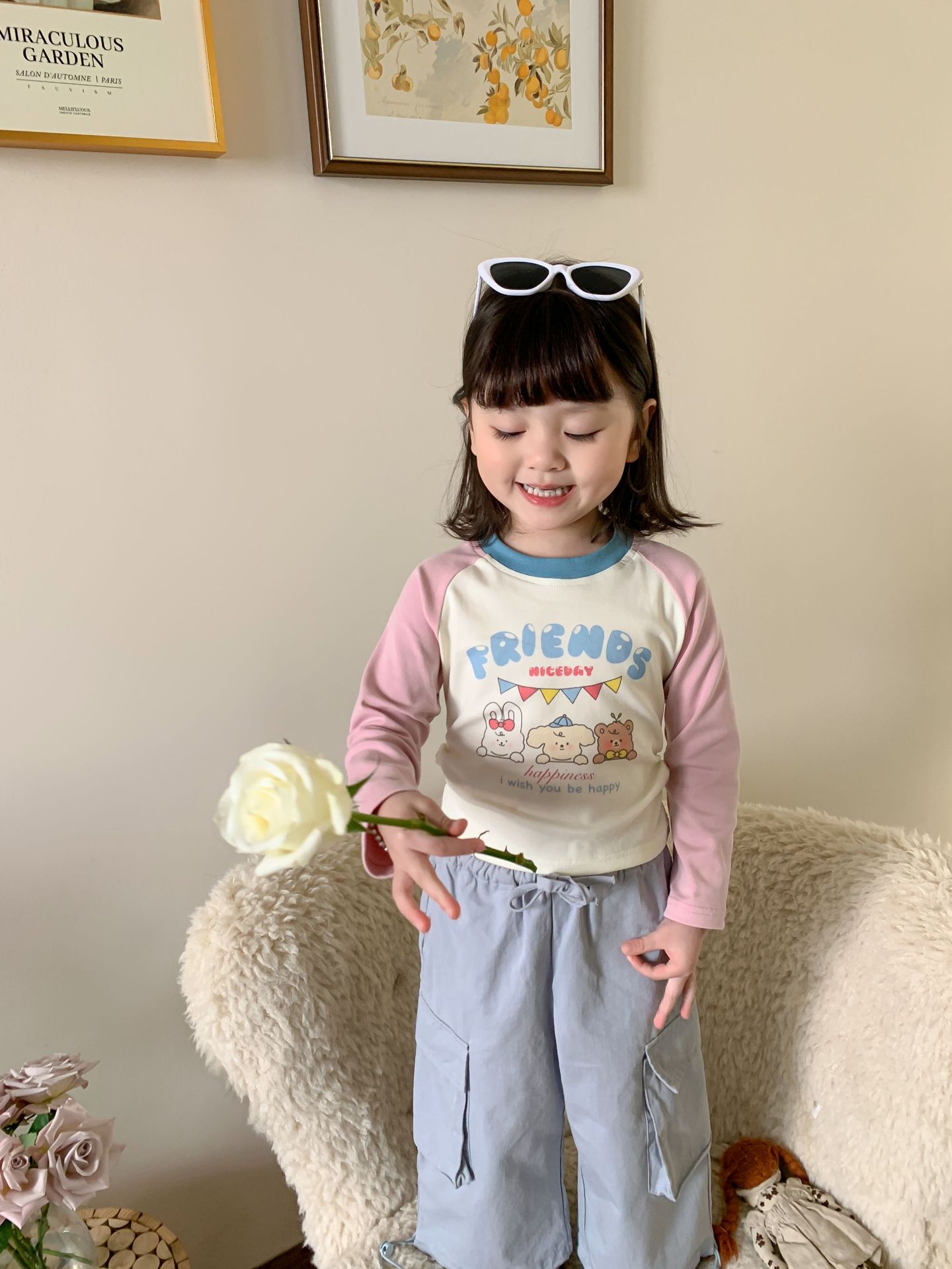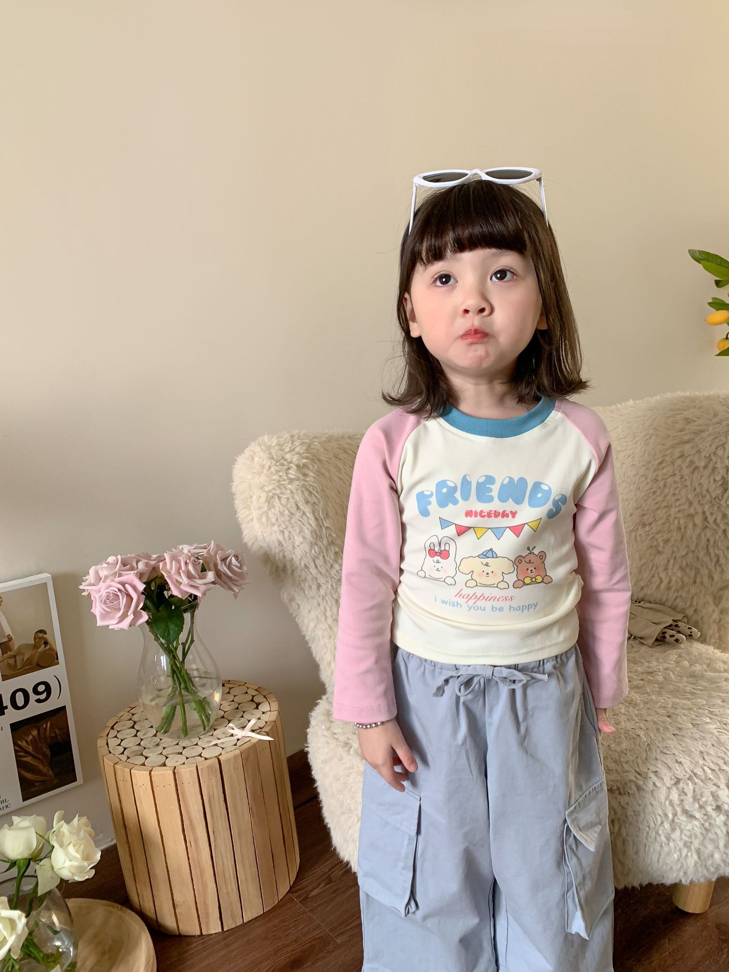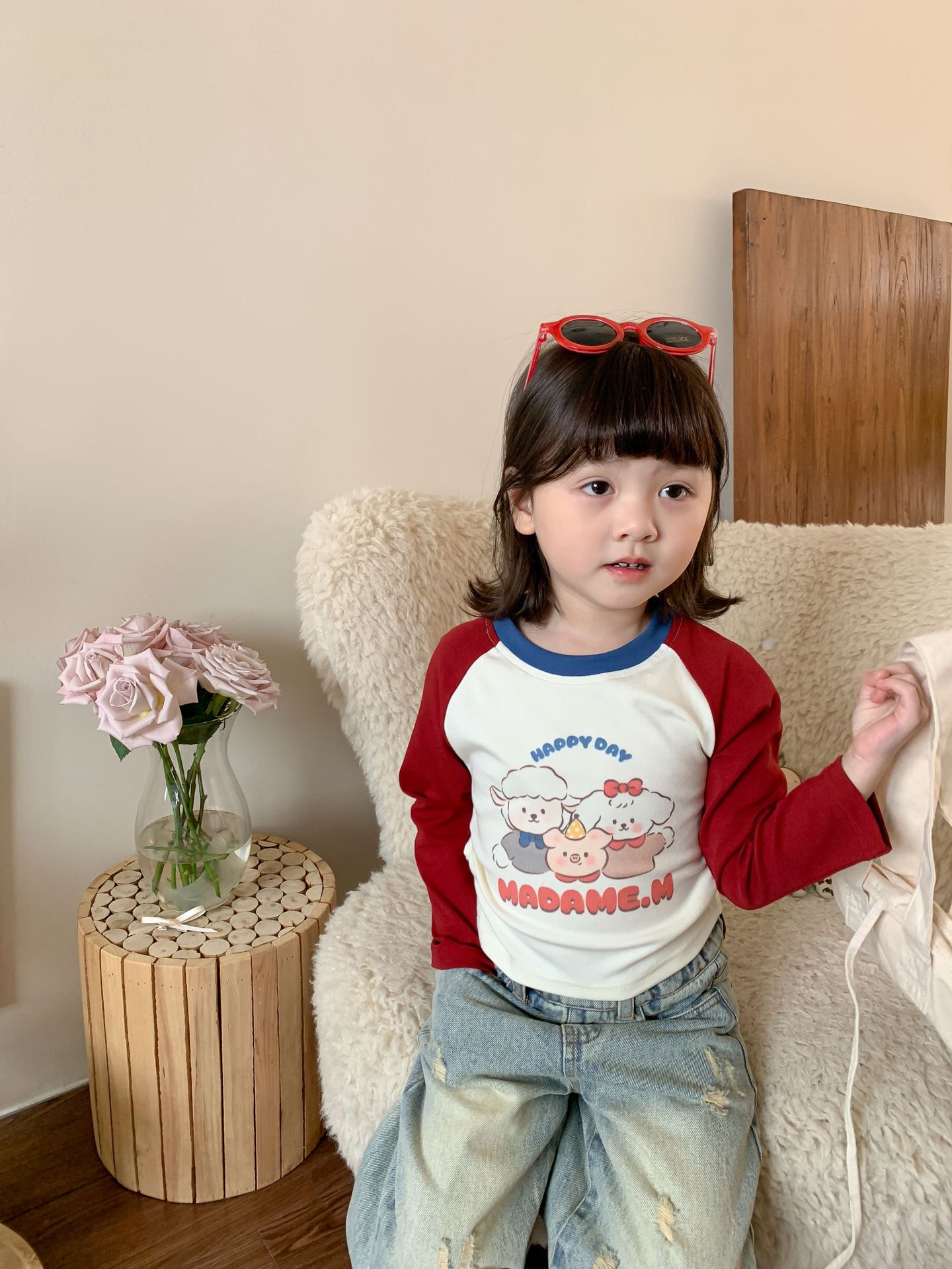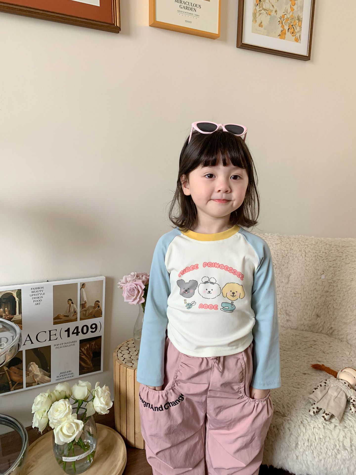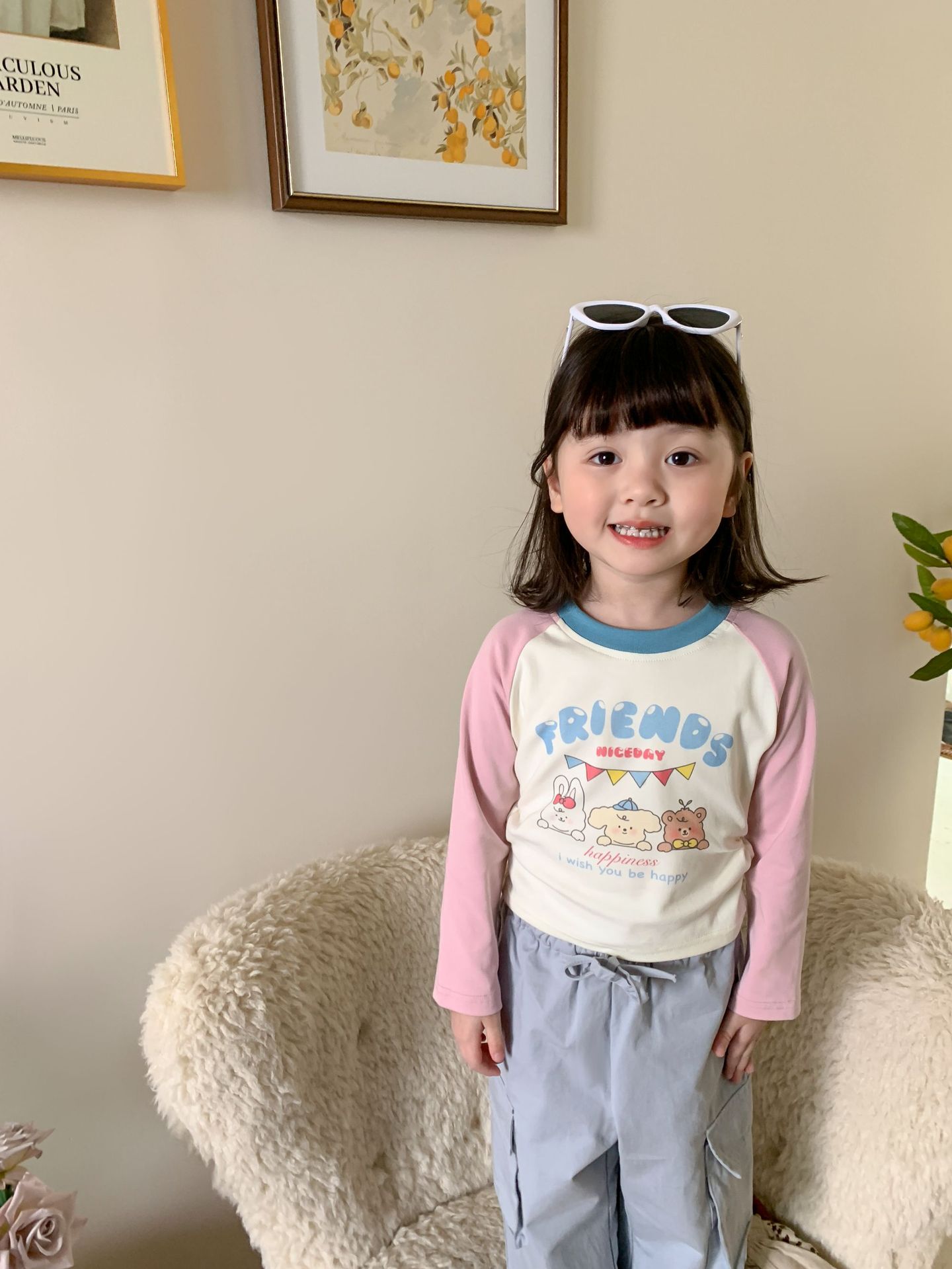 维木童装女童t恤2024春季新款儿童韩版拼色插肩长袖上衣2宝宝衣服