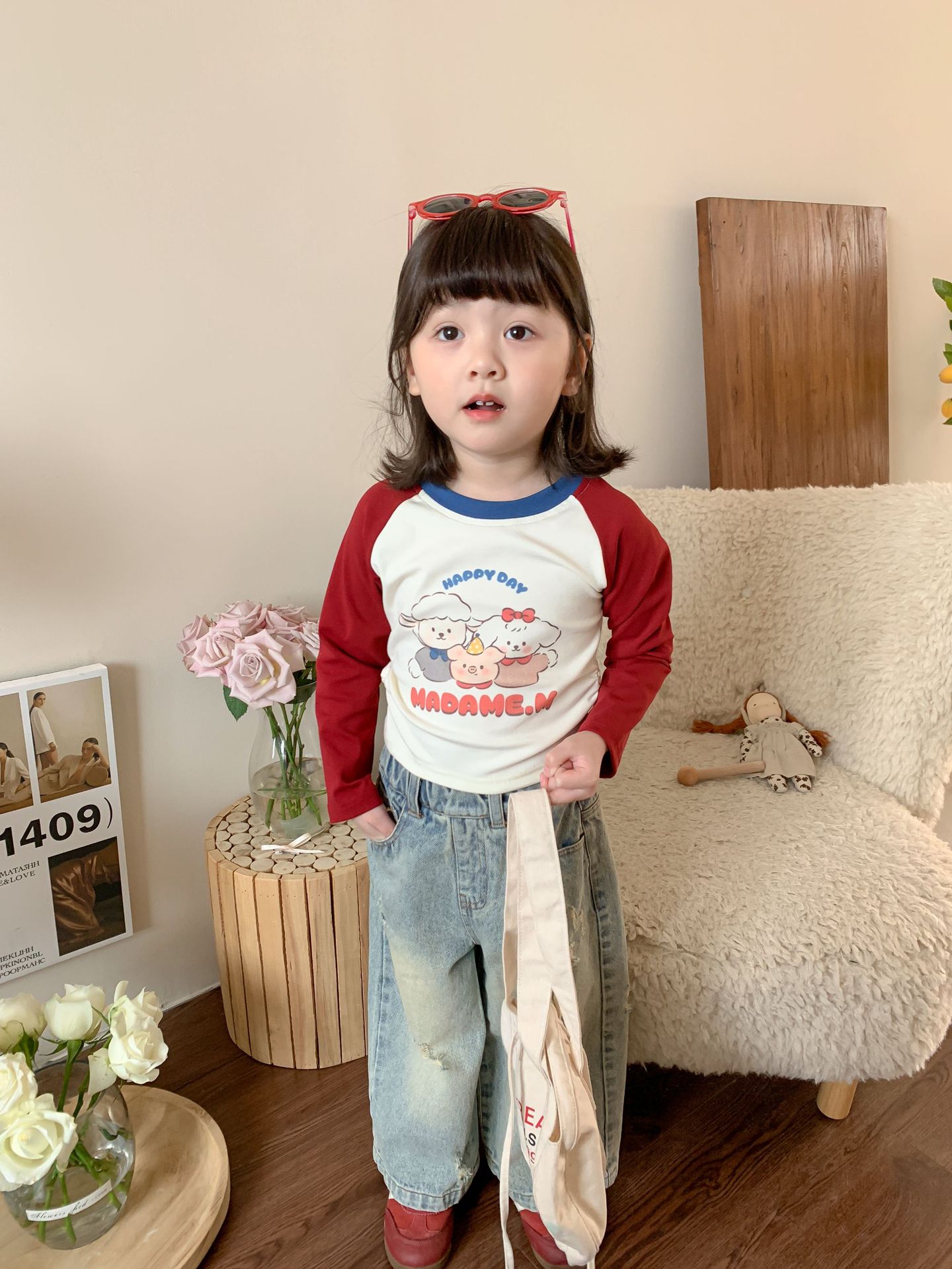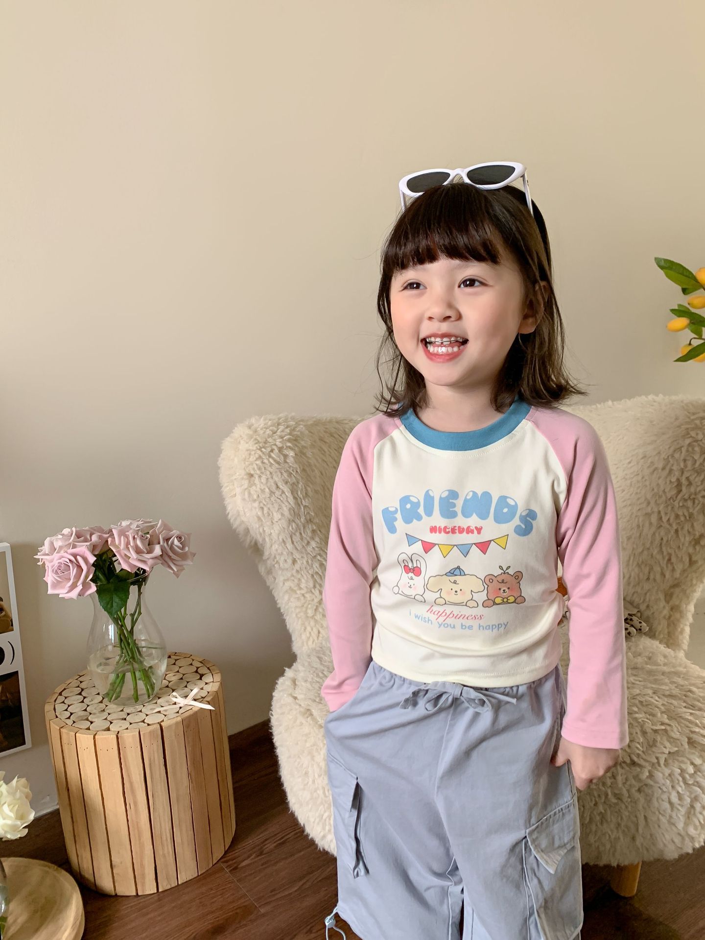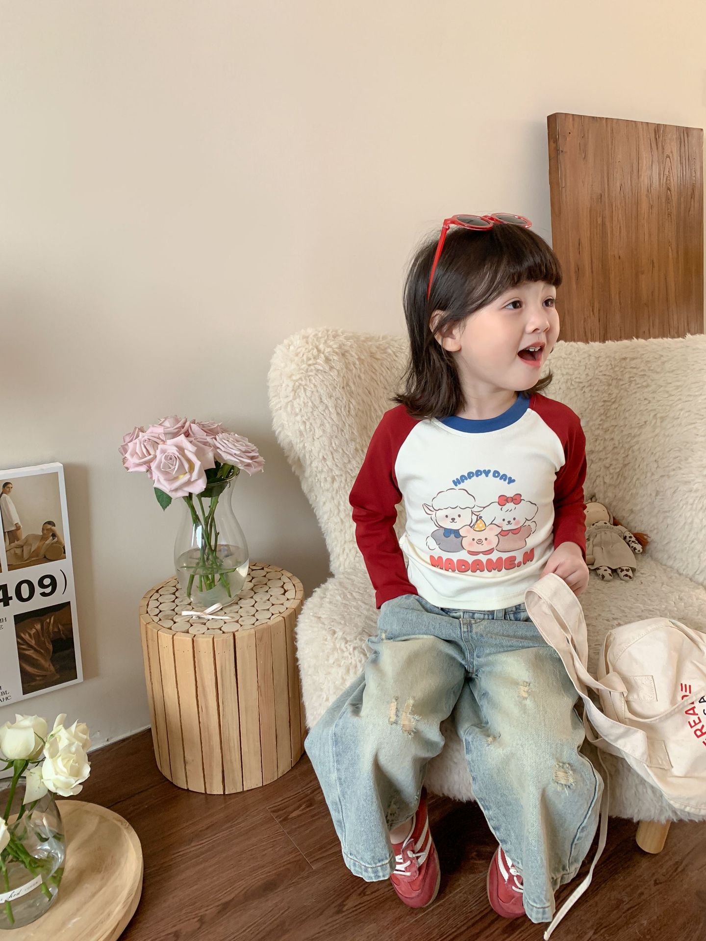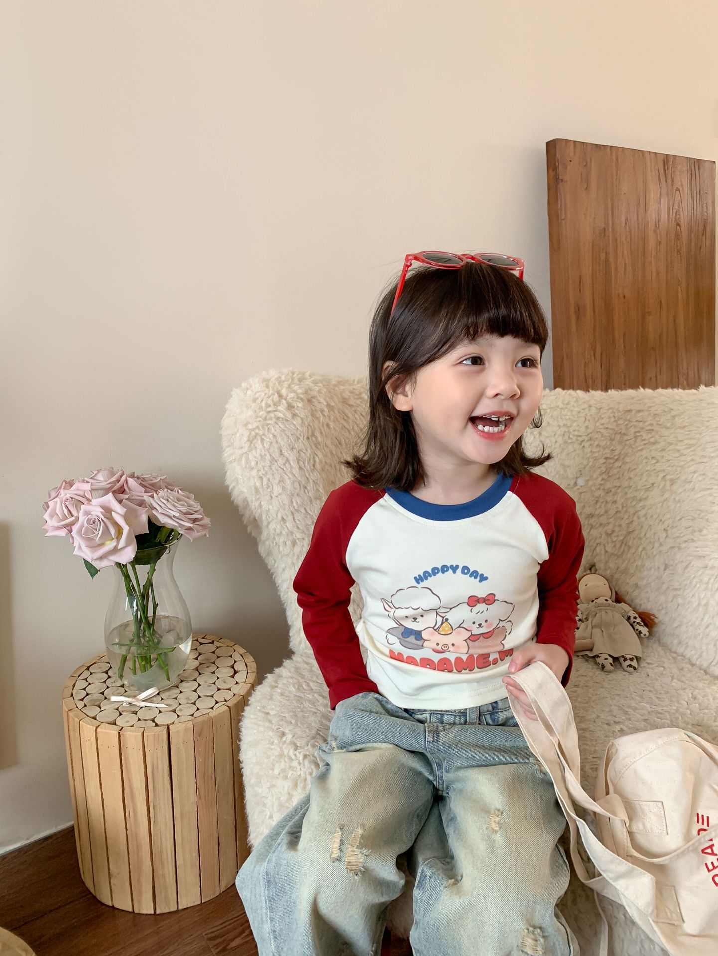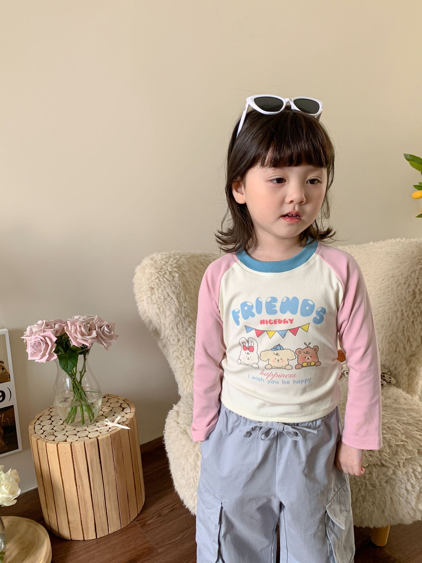 维木童装女童t恤2024春季新款儿童韩版拼色插肩长袖上衣2宝宝衣服