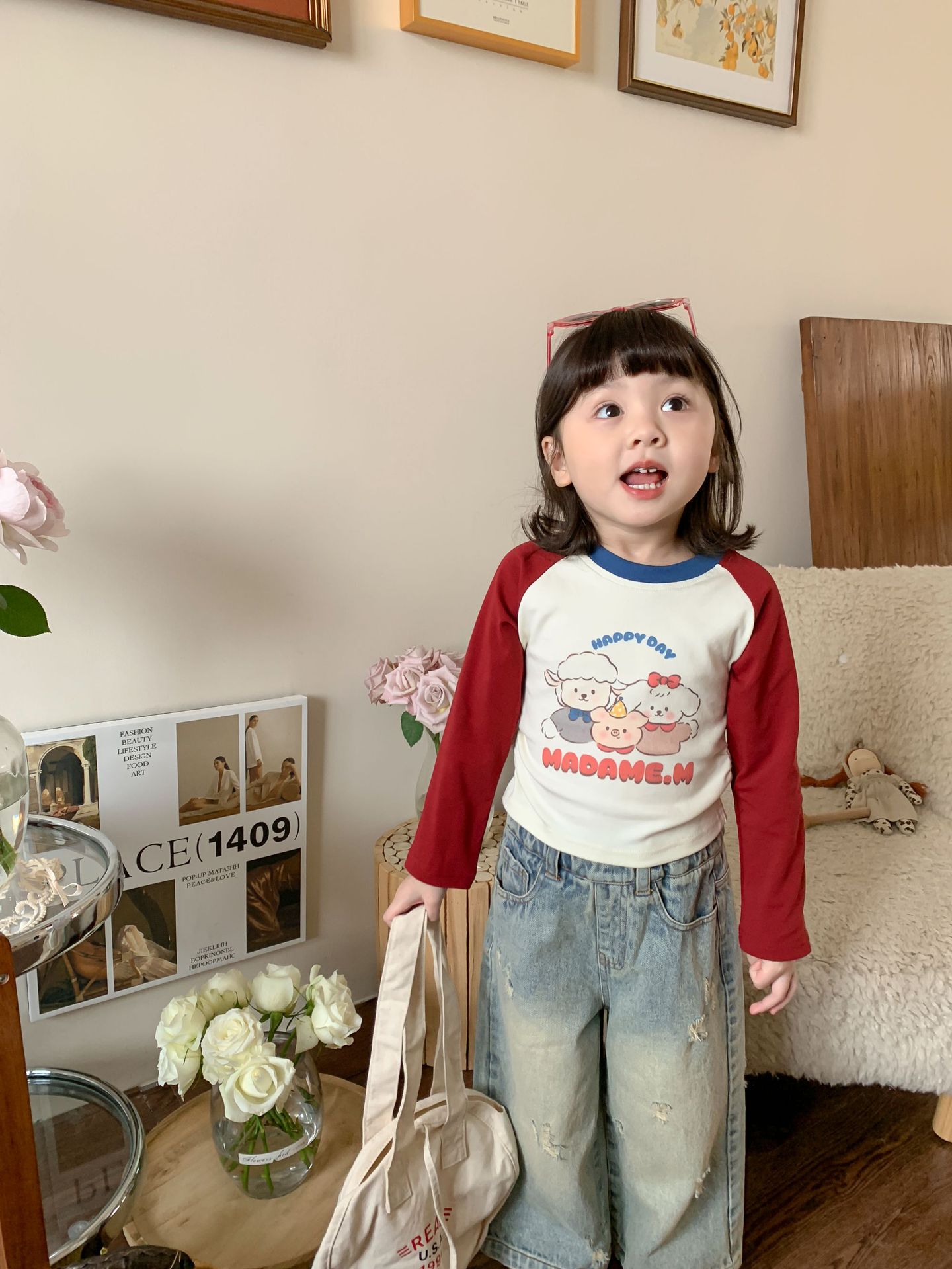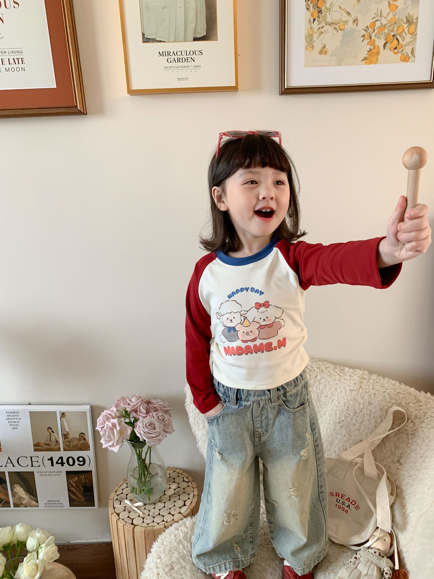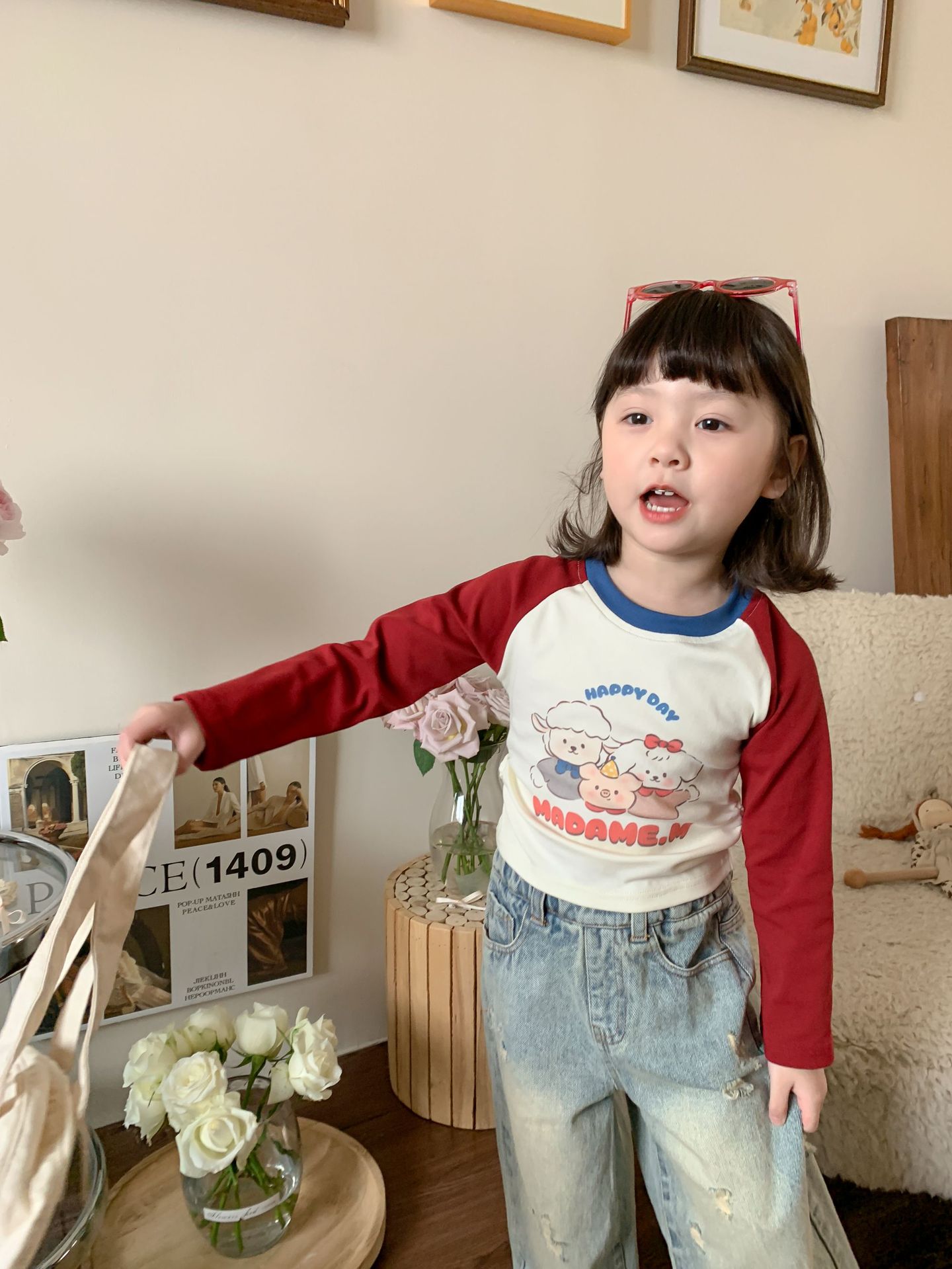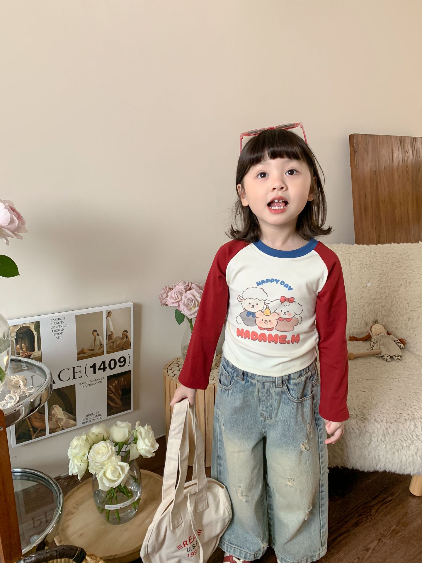 维木童装女童t恤2024春季新款儿童韩版拼色插肩长袖上衣2宝宝衣服