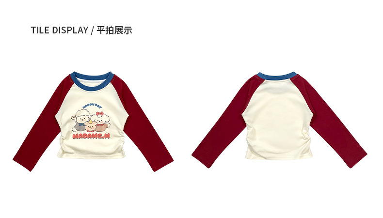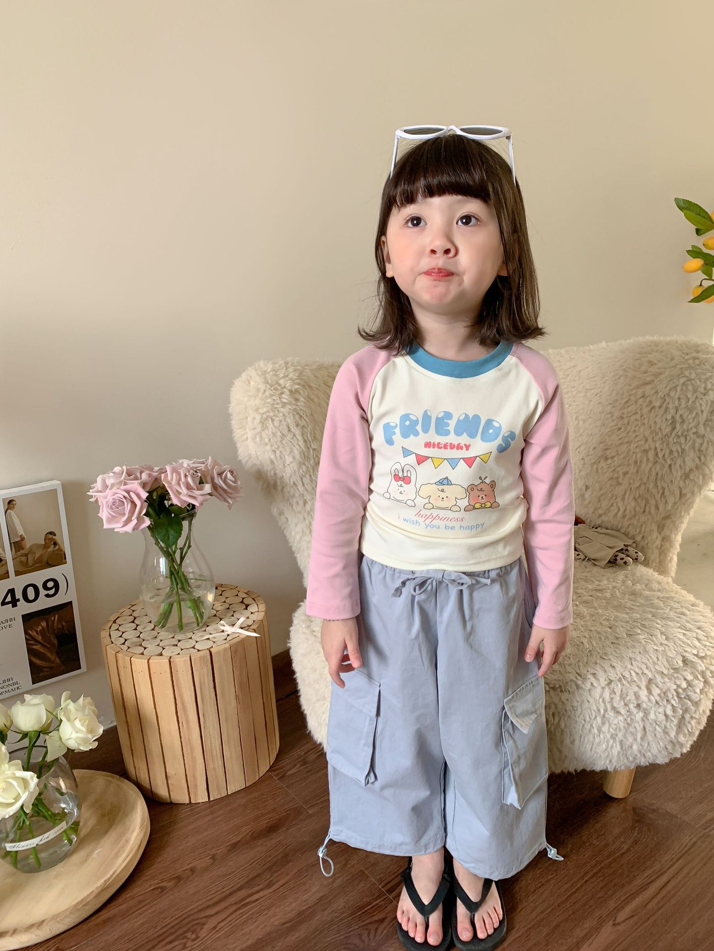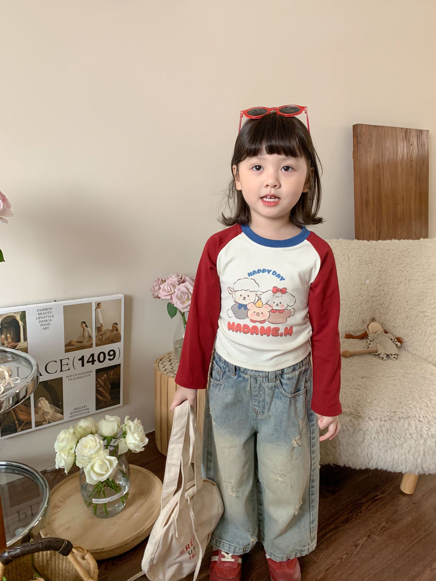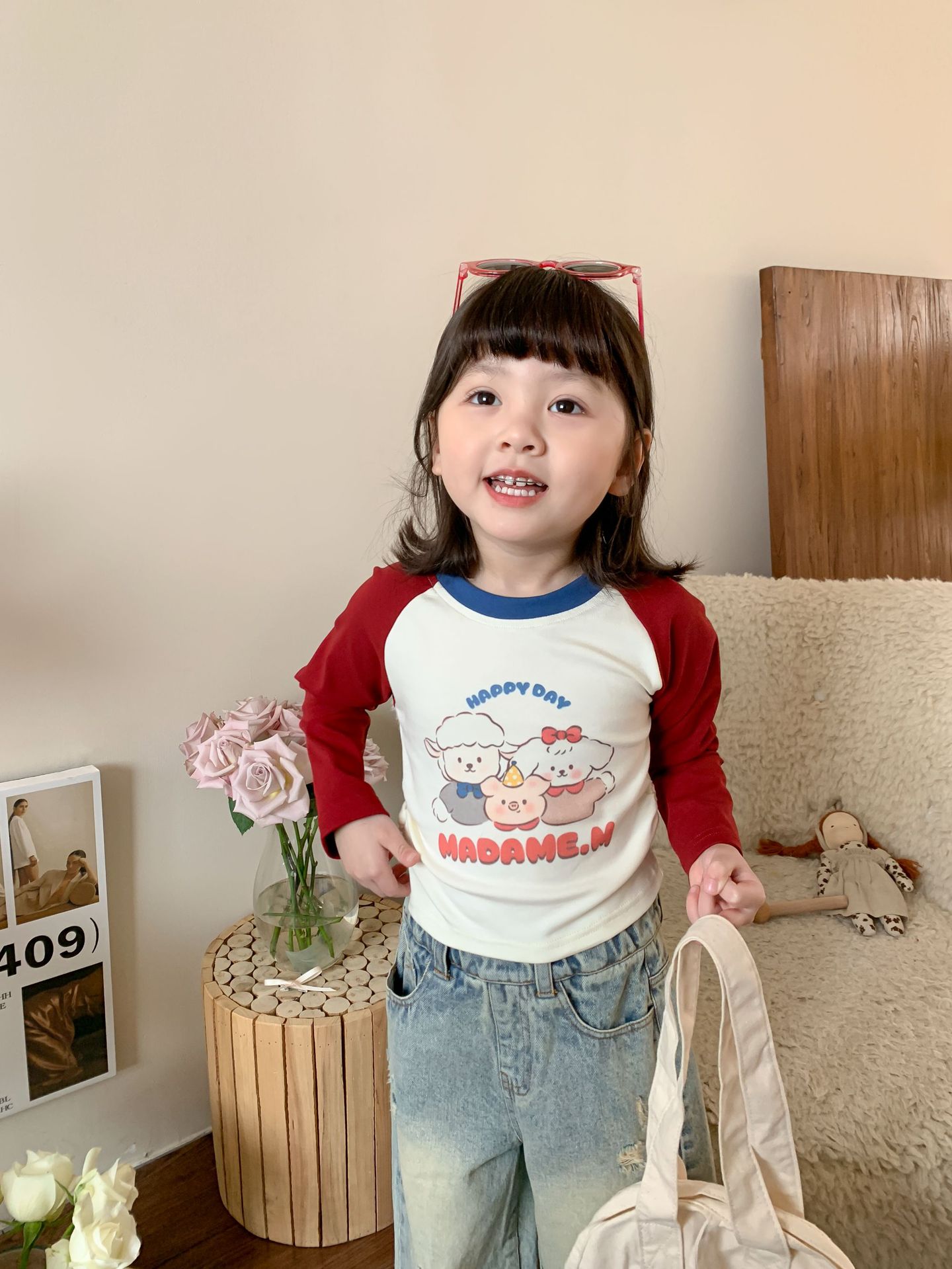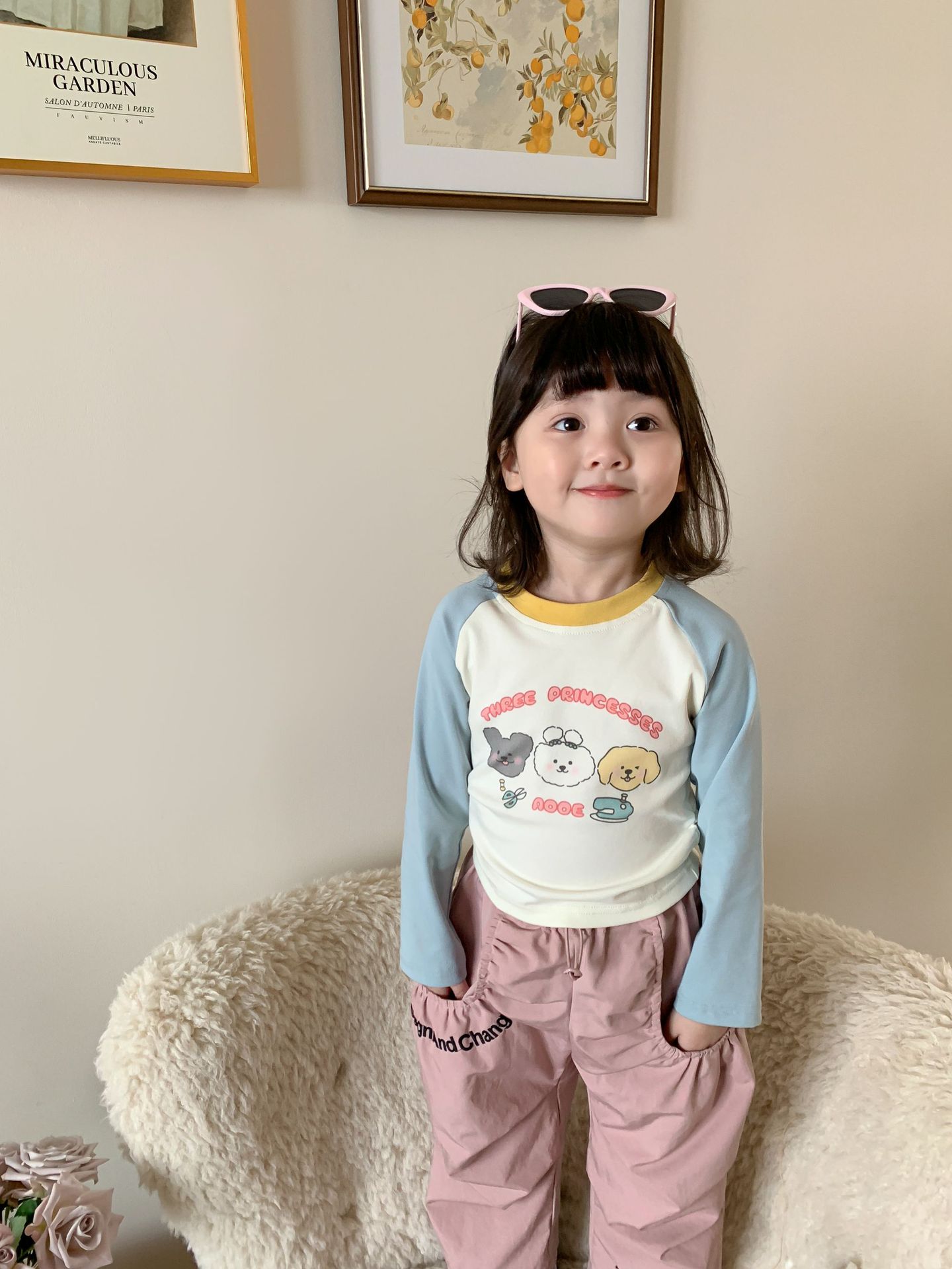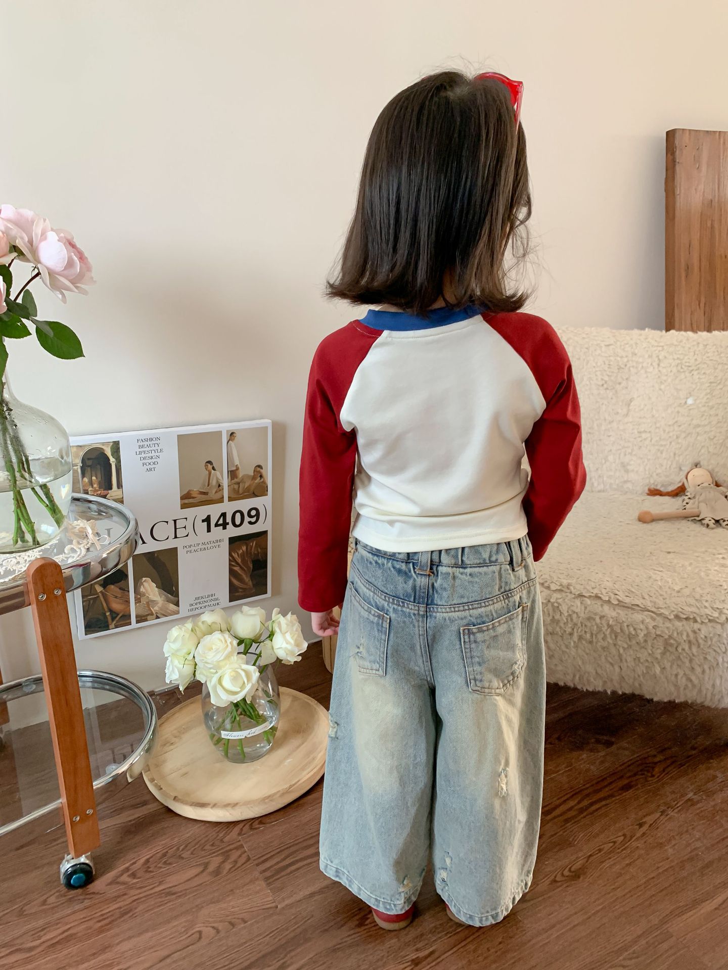 维木童装女童t恤2024春季新款儿童韩版拼色插肩长袖上衣2宝宝衣服