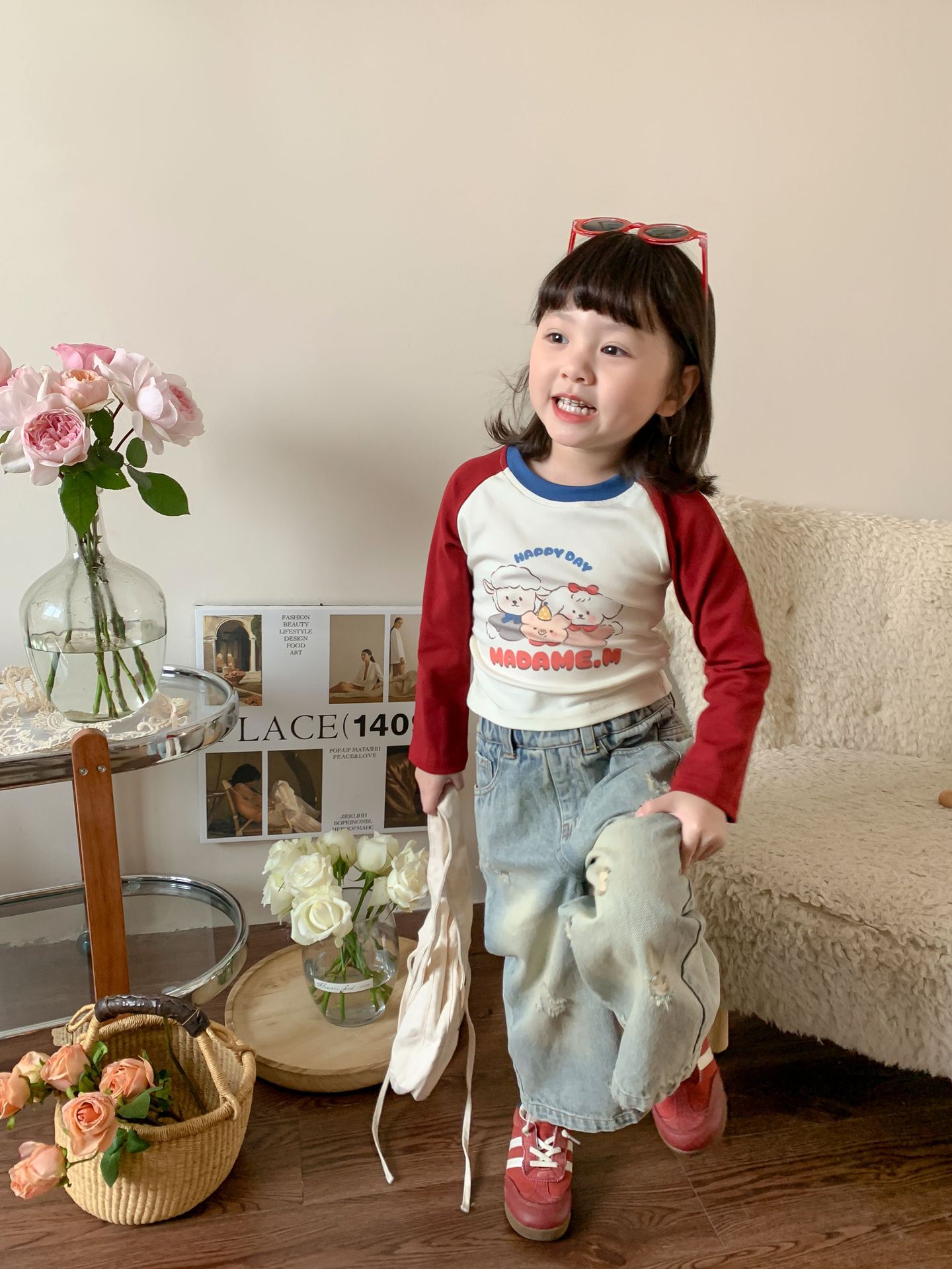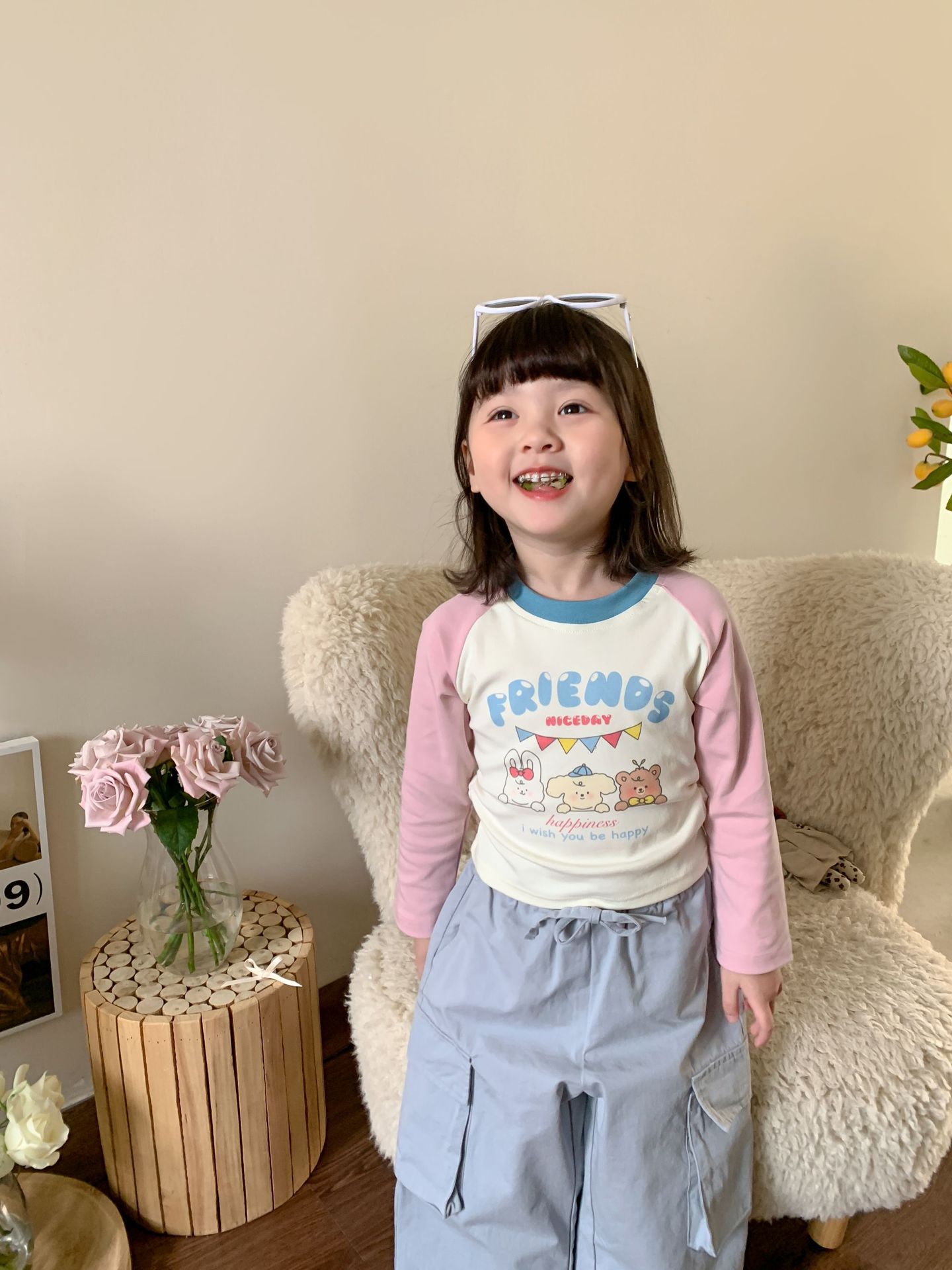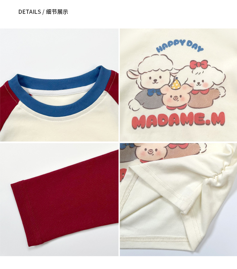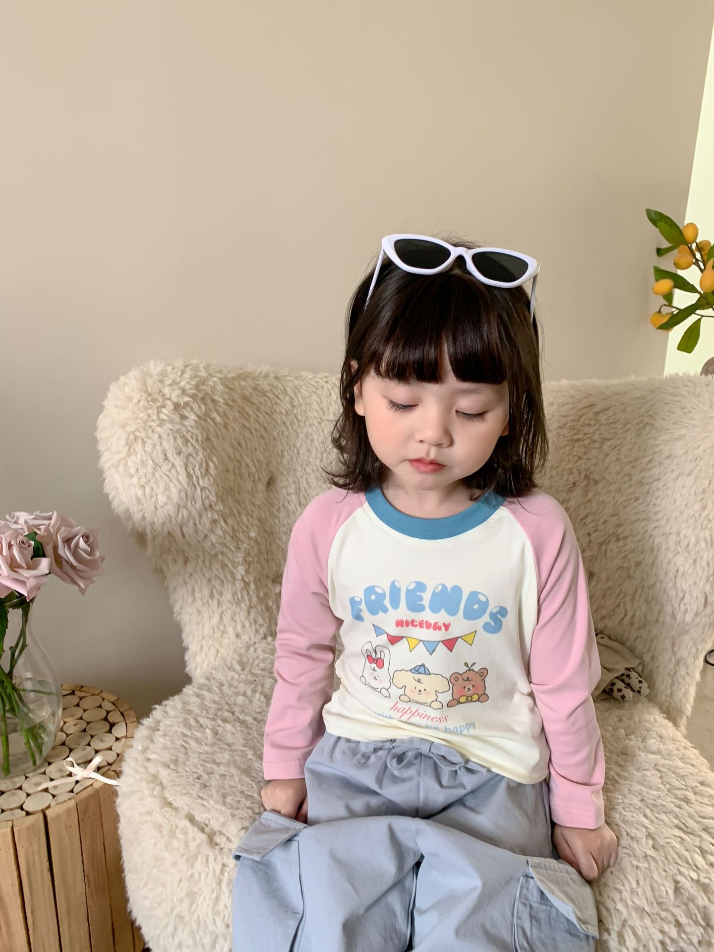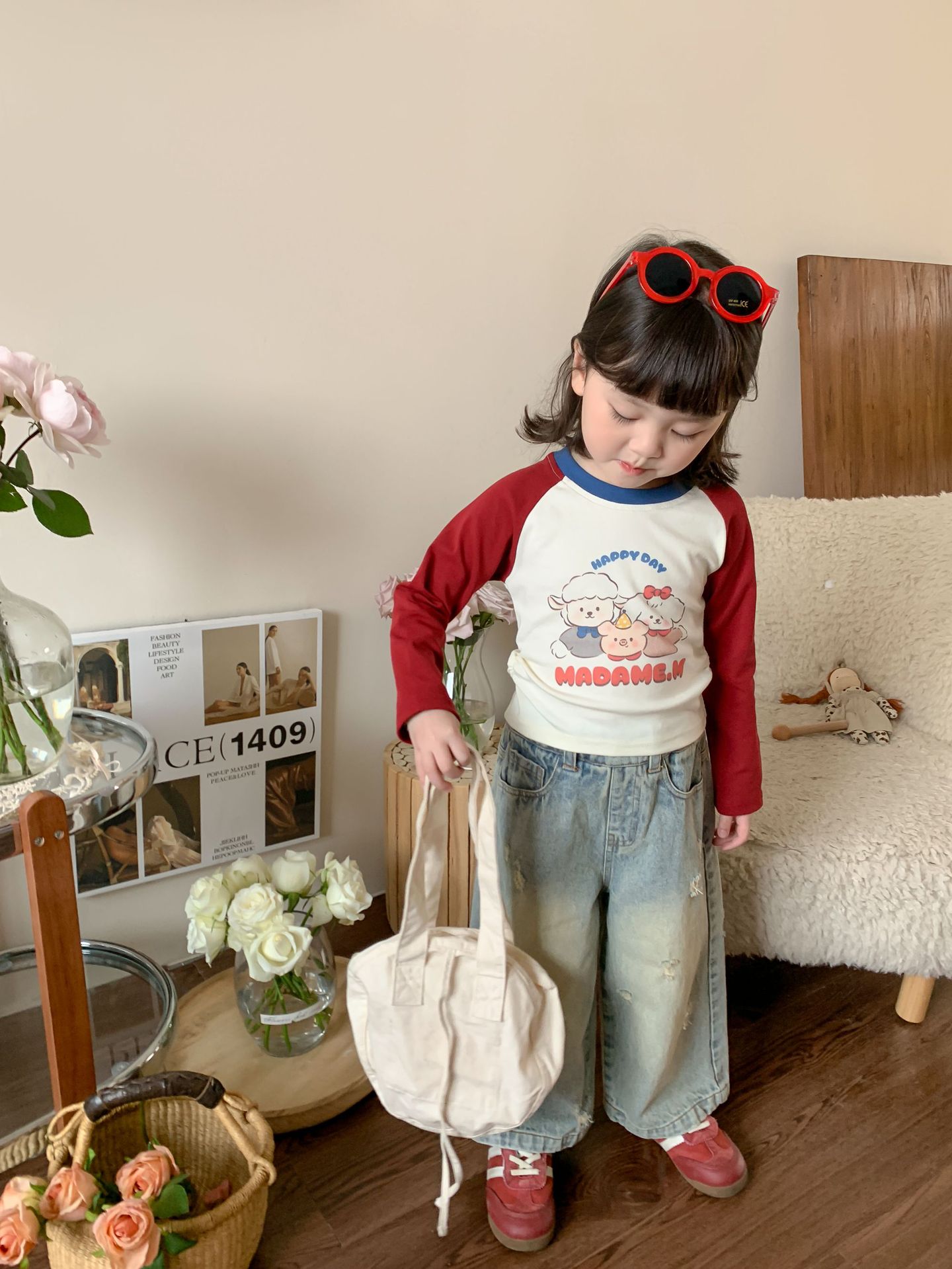 维木童装女童t恤2024春季新款儿童韩版拼色插肩长袖上衣2宝宝衣服