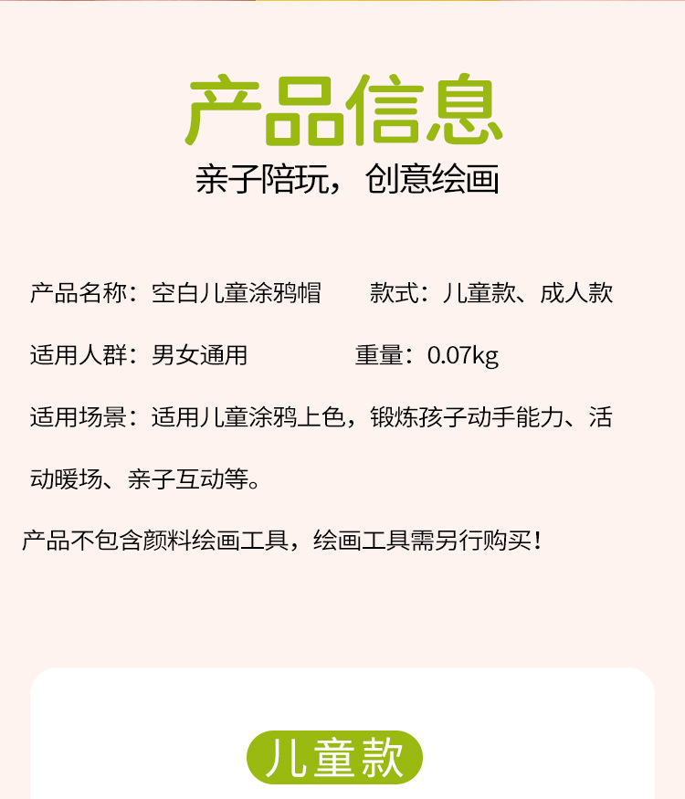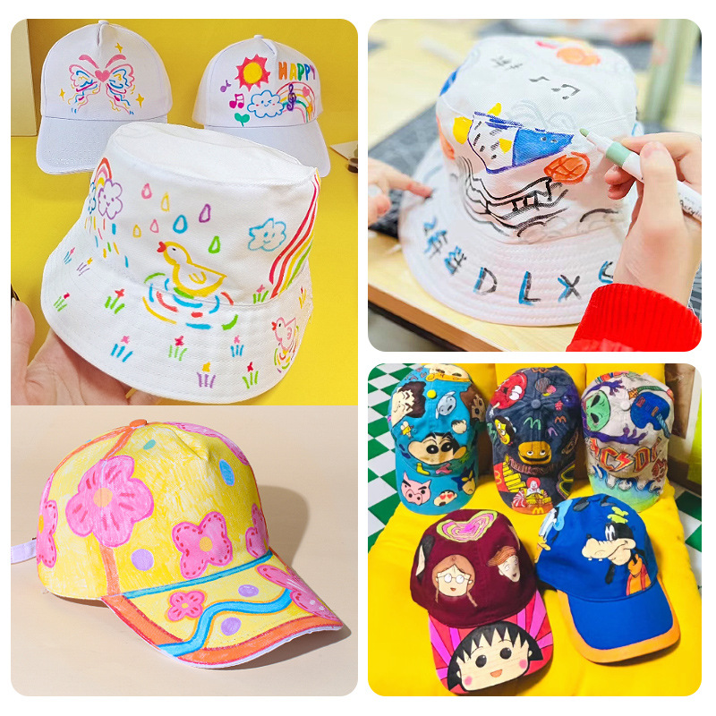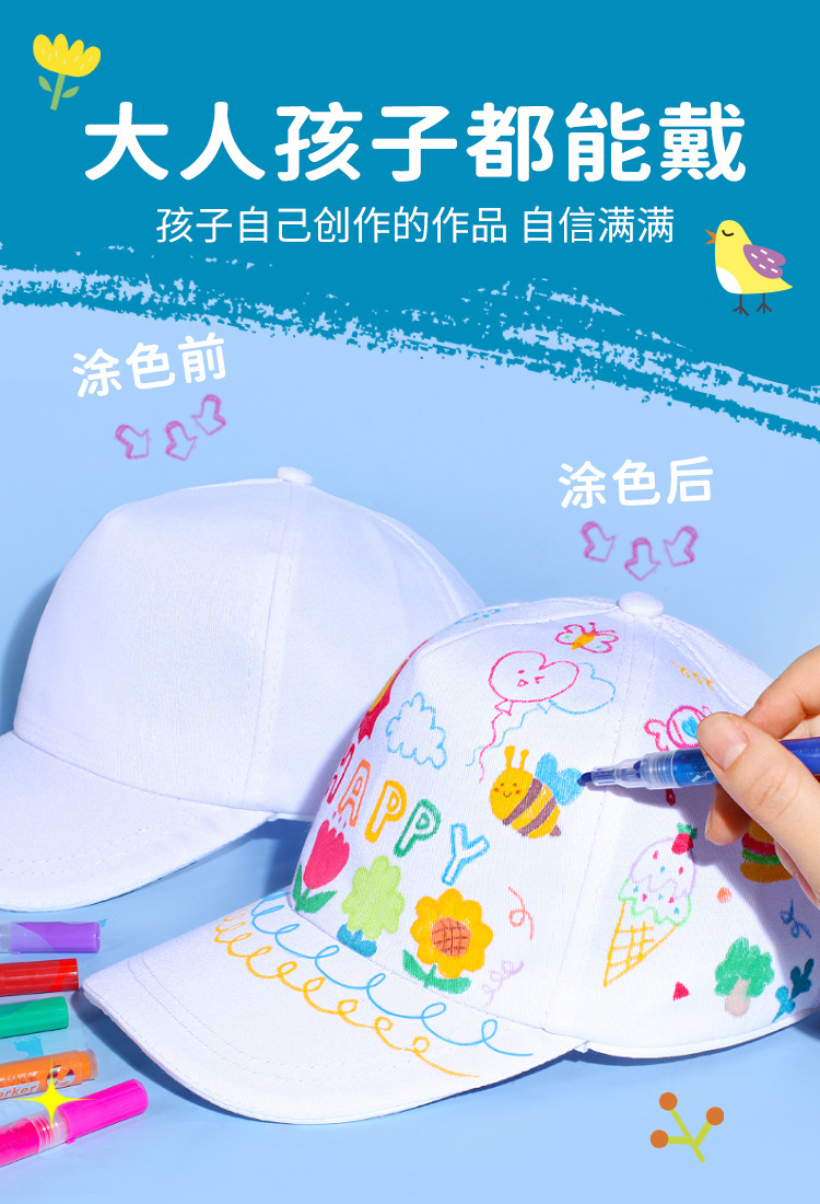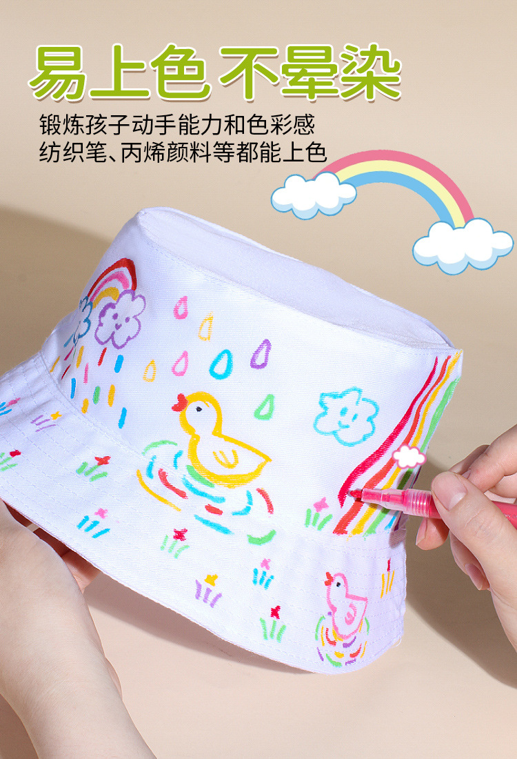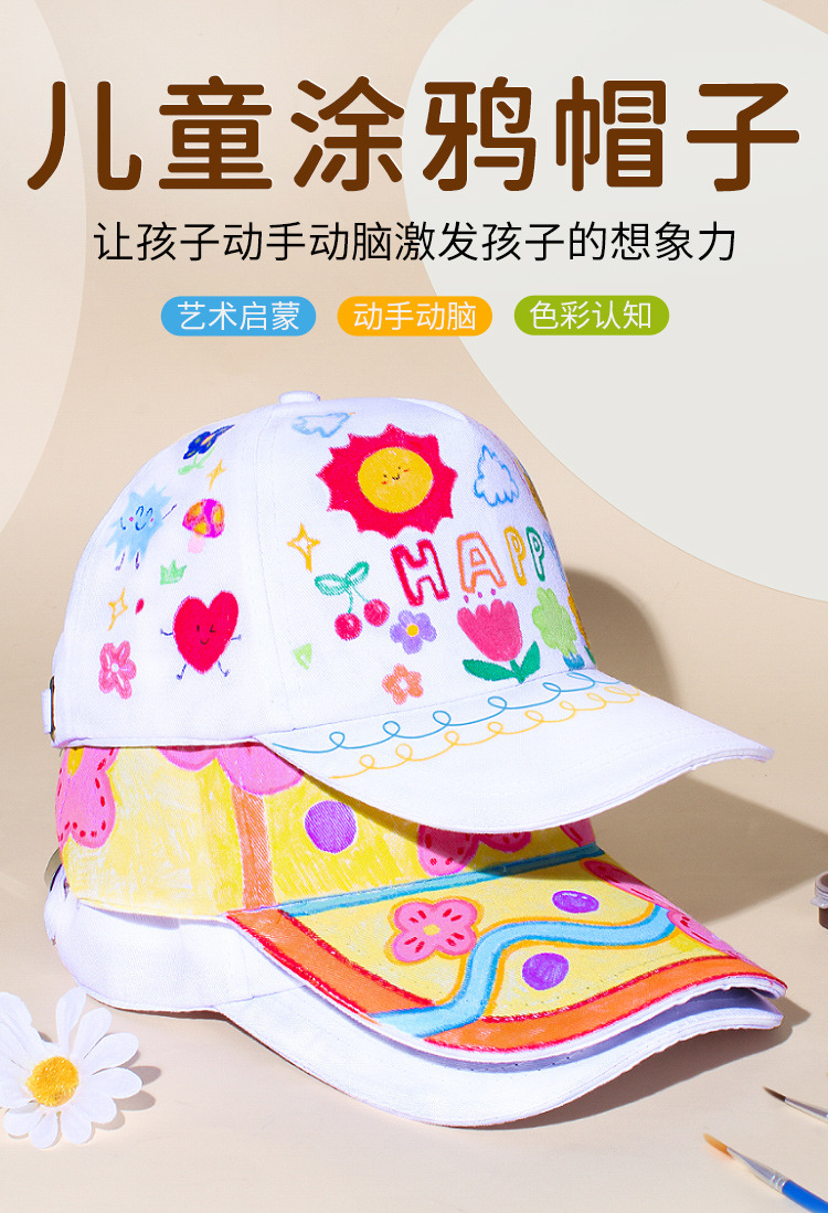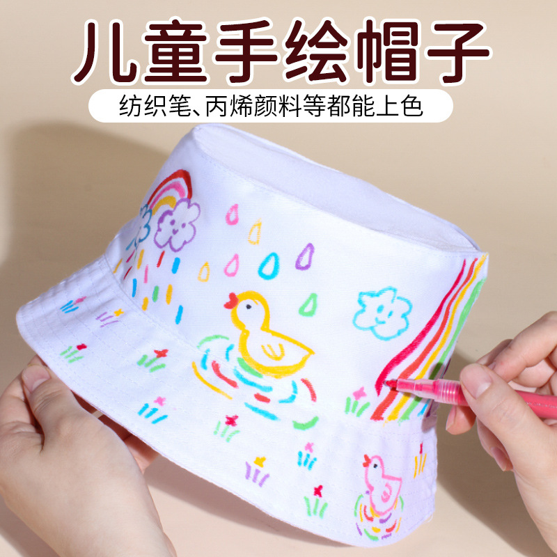 涂鸦手绘帽子渔夫帽鸭舌帽绘画儿童手工diy创意材料包幼儿园亲子