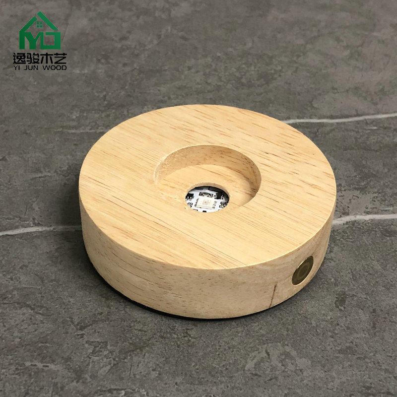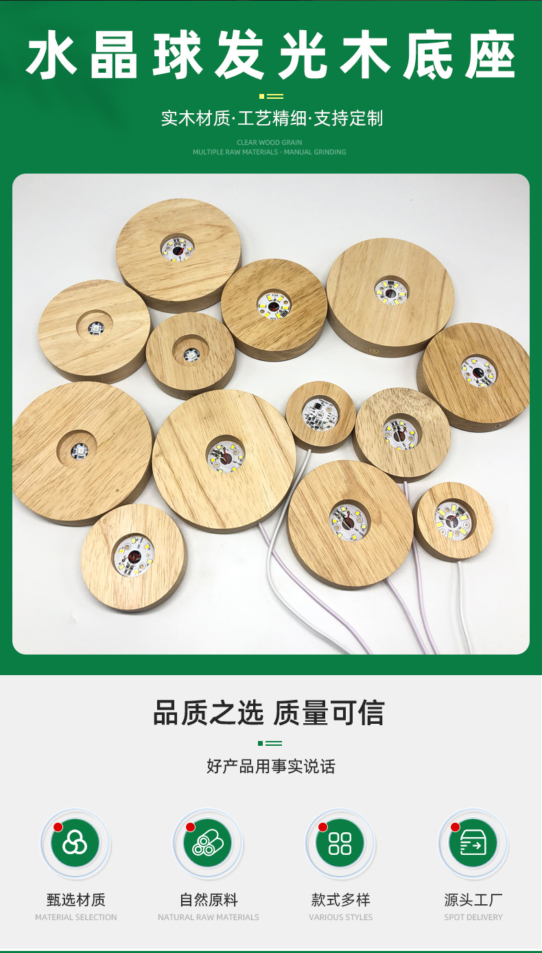小夜灯木底座 USB开关暖光冷光圆形水晶球木质灯底座木质发光底座