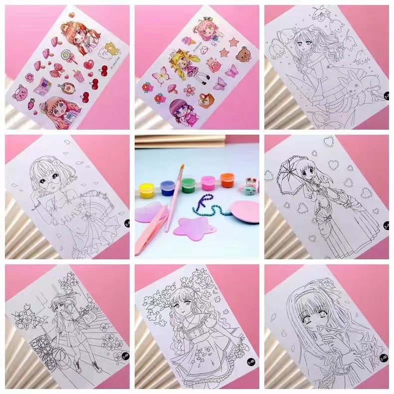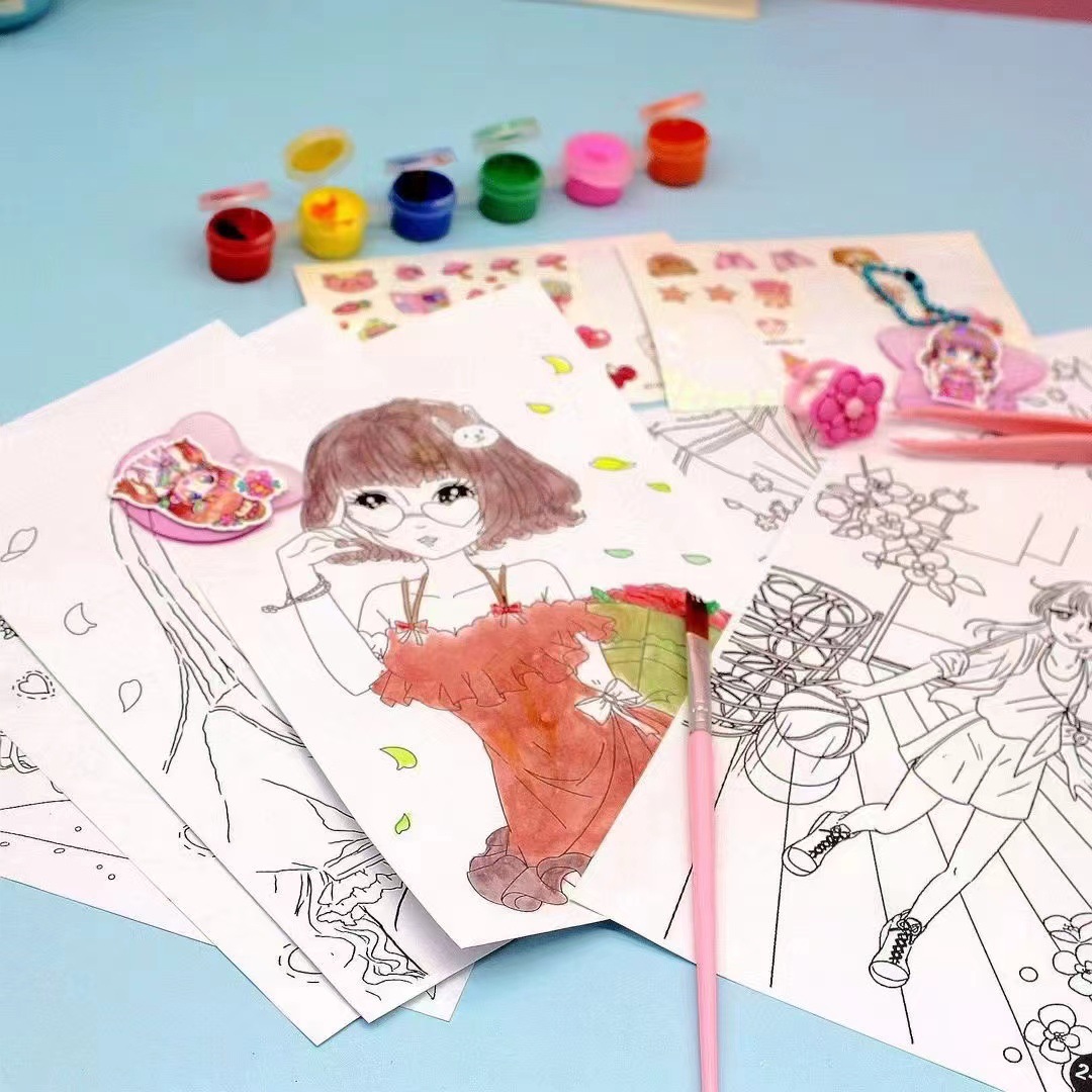 咕咔水彩填色画咕咔涂涂乐套装儿童创意手工DIY涂鸦画公主彩妆画