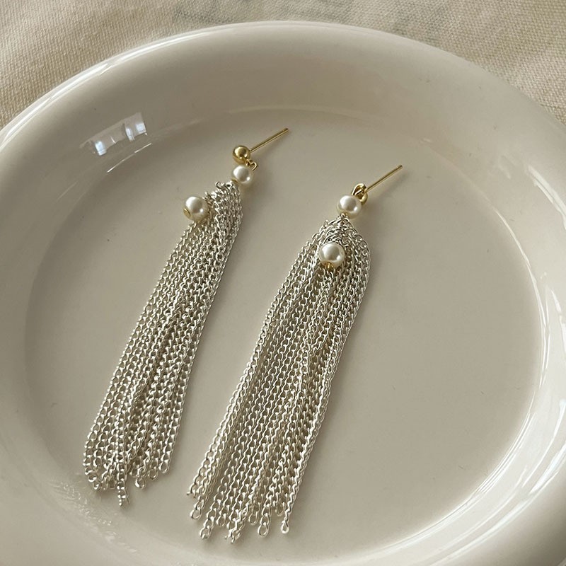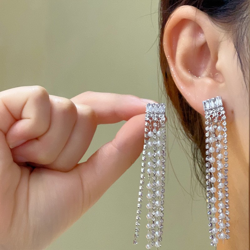 气质奢华长款流苏珍珠耳环小众设计感高级网红爆款耳坠耳钉耳饰女