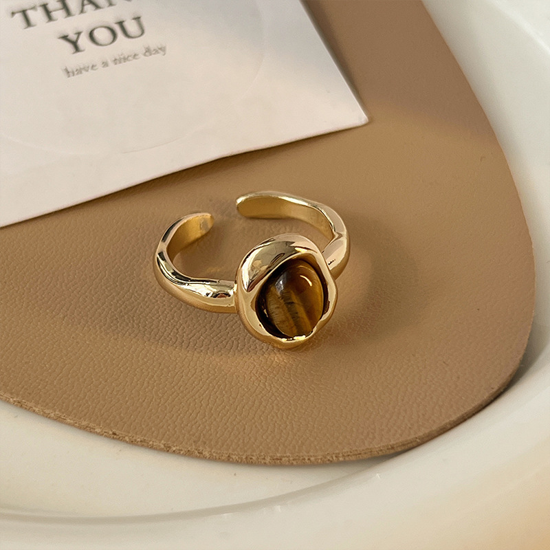 天然石复古琥珀色食指开口戒指气质小众设计高级感秋冬指环