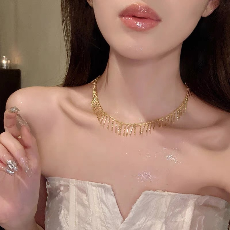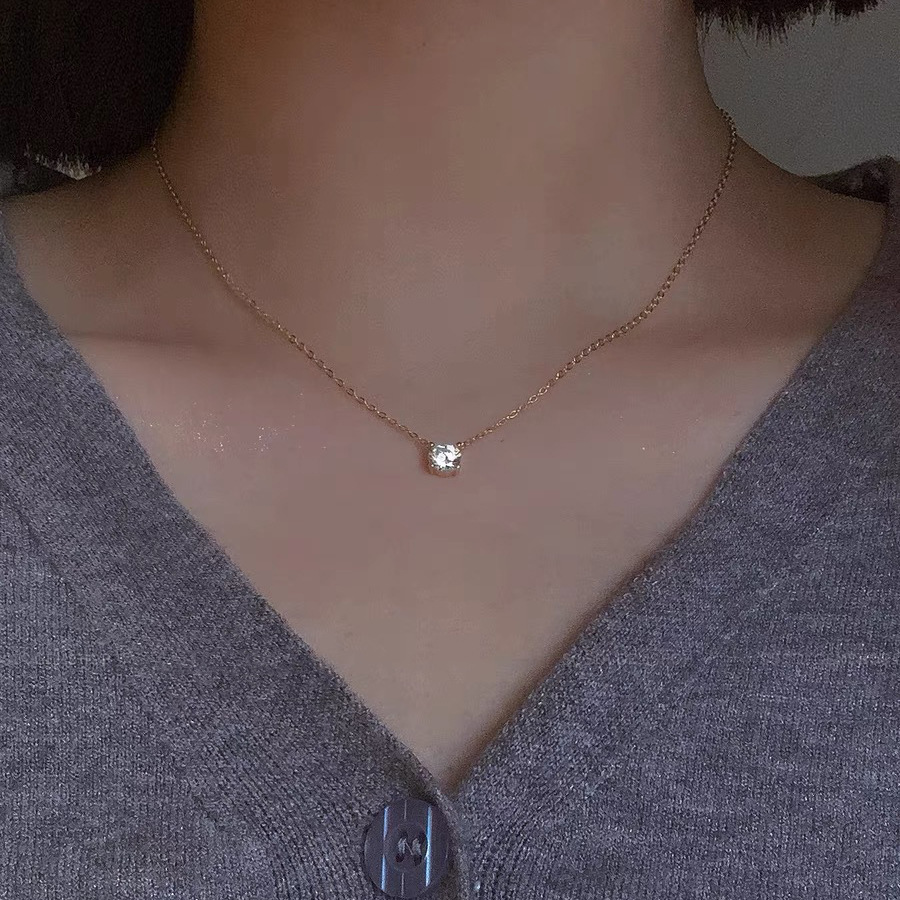 韩国圆环锆石项链女ins简约高级感轻奢配饰小众设计感百搭锁骨链