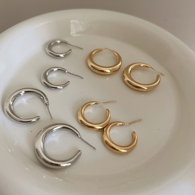 法式复古耳环2023年新款潮高级感欧美小众设计极简椭圆环耳扣耳钉