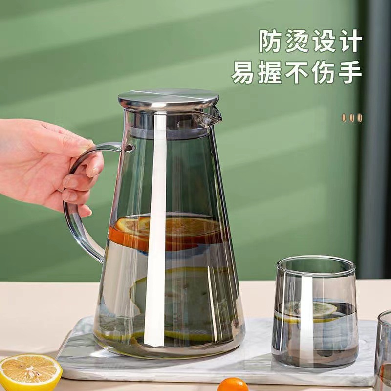 凉水壶玻璃耐高温家用冷水壶套装大容量扎壶泡茶壶凉水杯果汁水壶