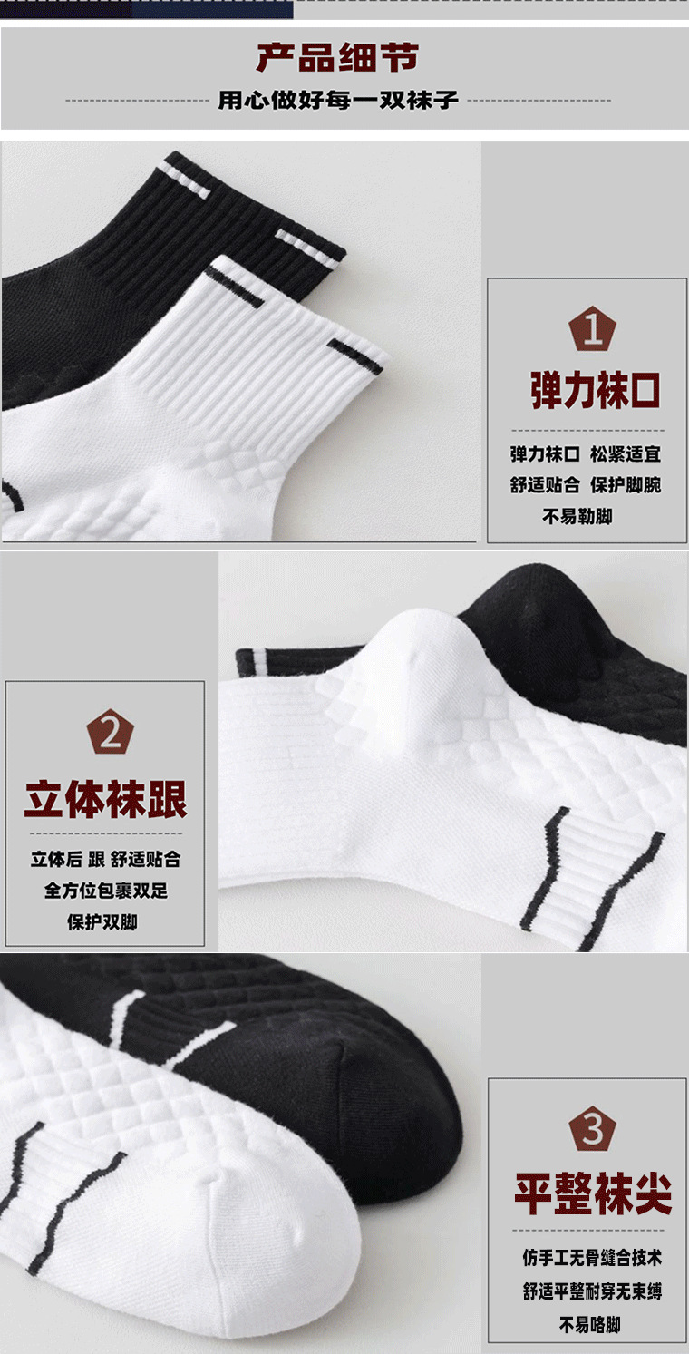 诸暨袜子男士防臭吸汗纯棉春夏薄款中筒按摩底篮球运动袜船袜