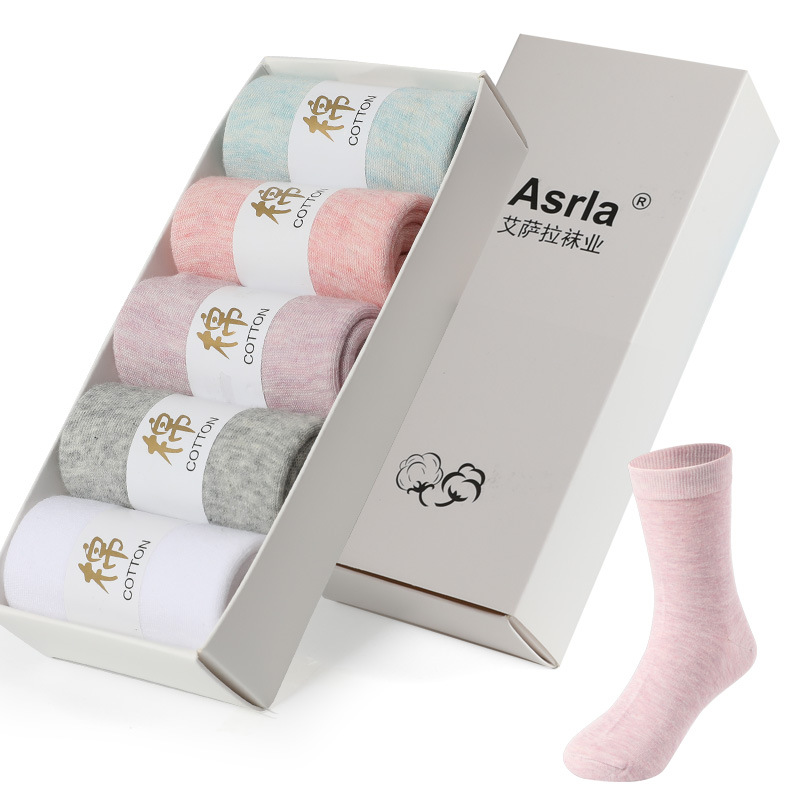 5双盒装男士袜子商务纯色中筒吸汗长袜秋冬款棉袜子批发一件代发