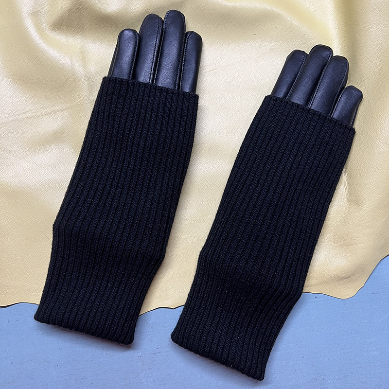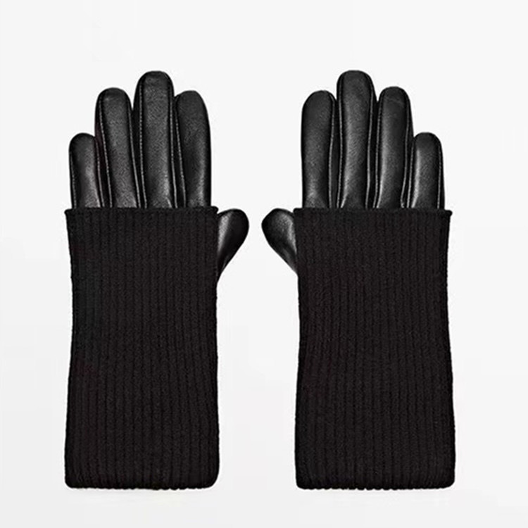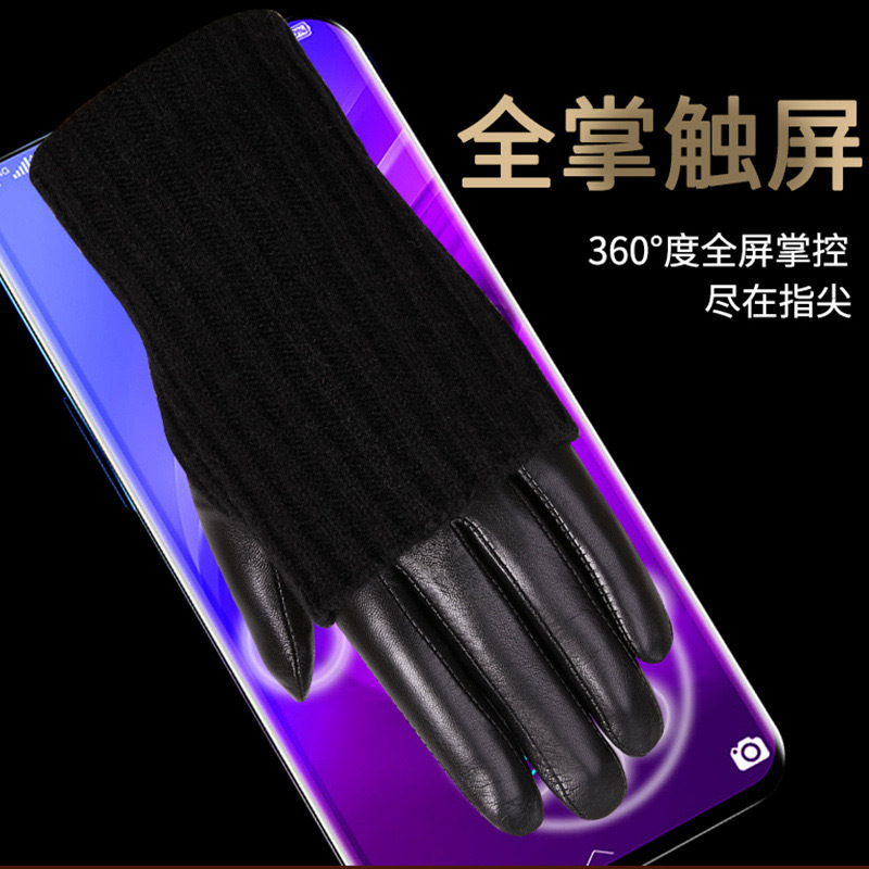 冬季新款女式骑车山羊皮真皮手套女士开车中长款加绒加厚保暖手套