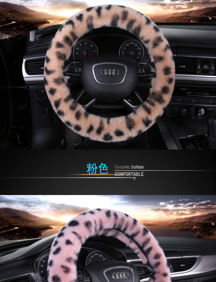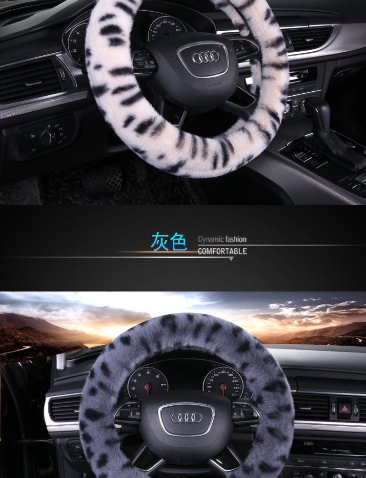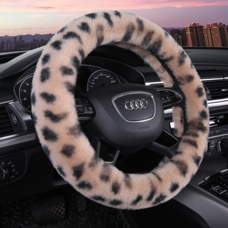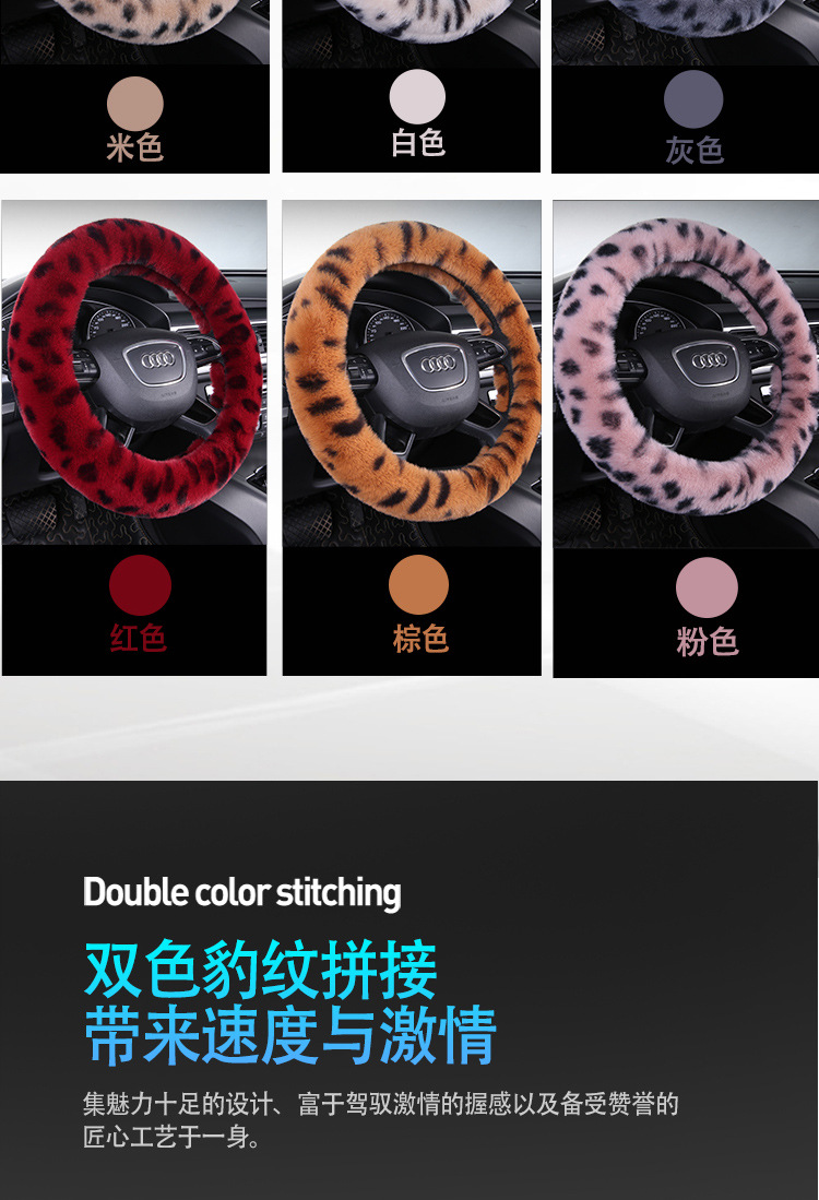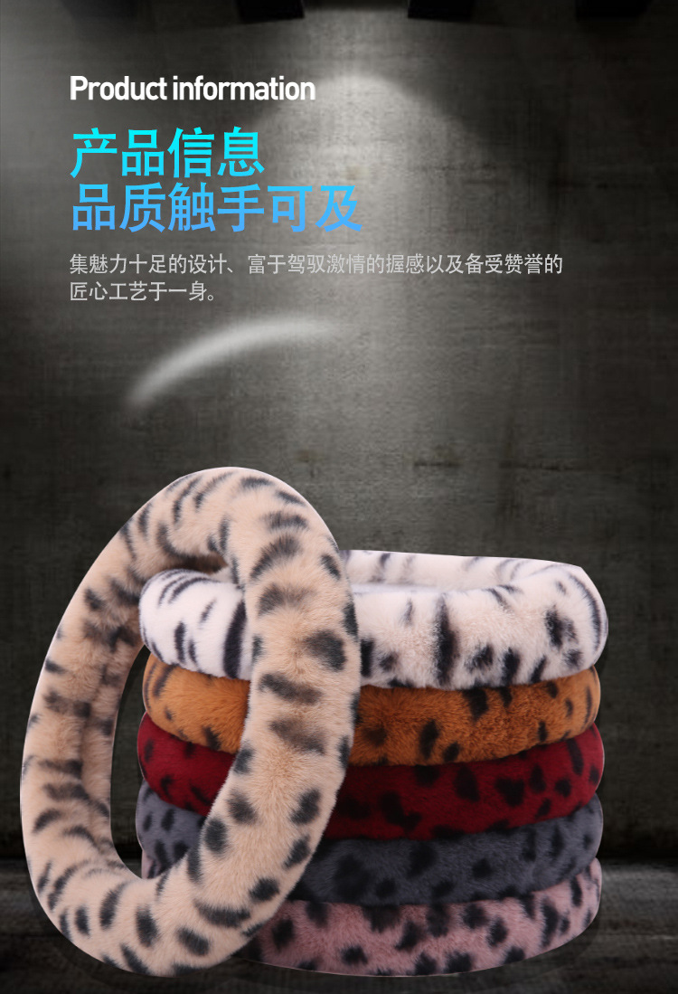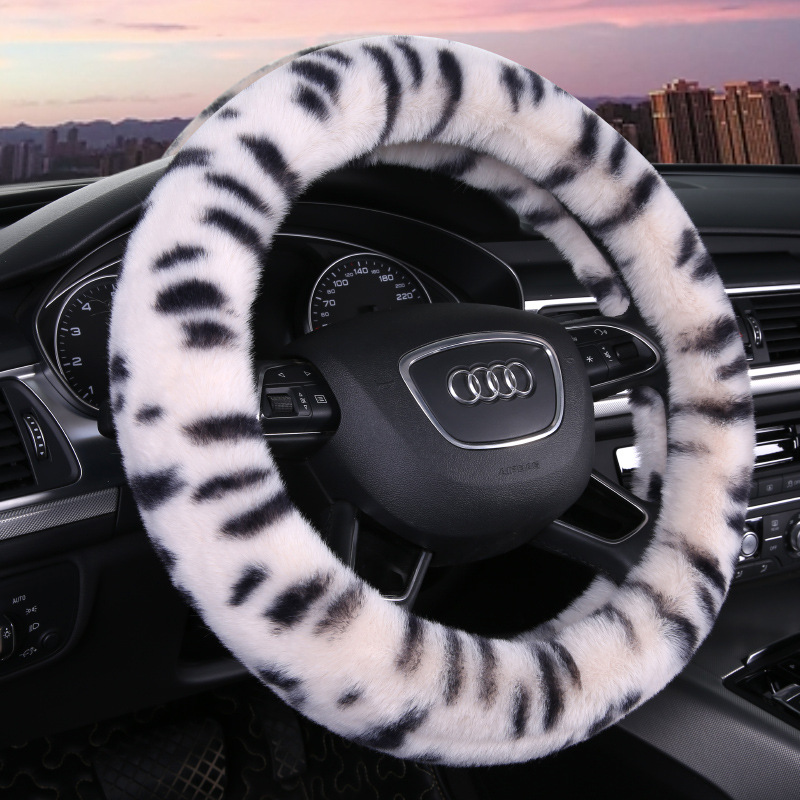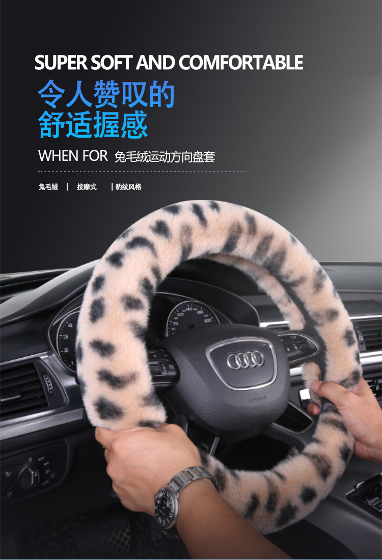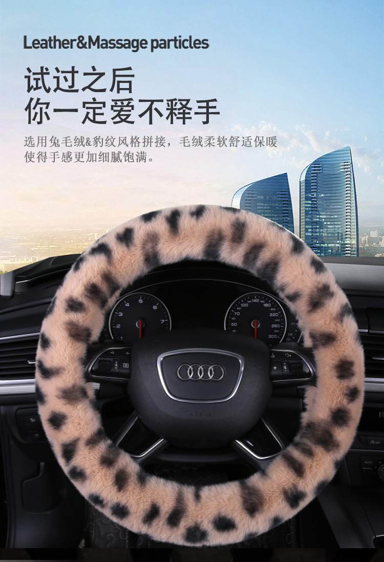 冬季汽车方向盘套兔毛绒保暖长短羊毛绒男女防滑豹纹内饰毛毛把套
