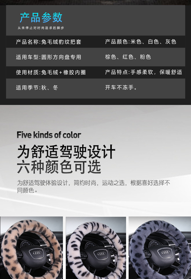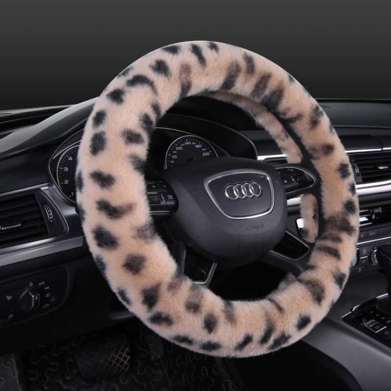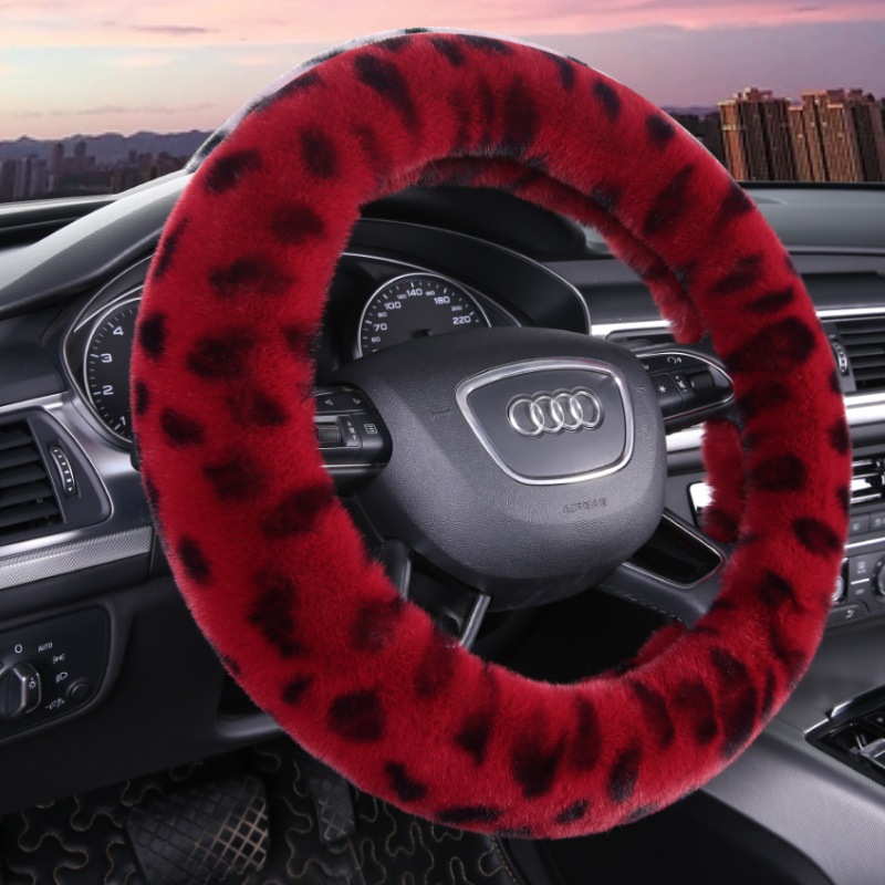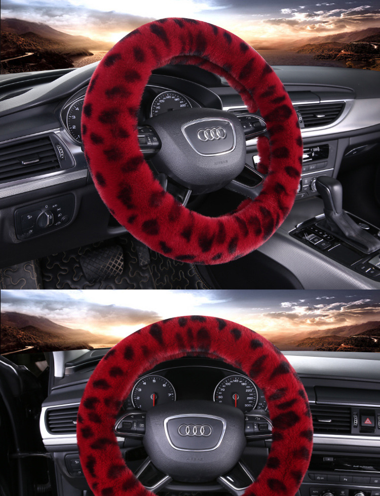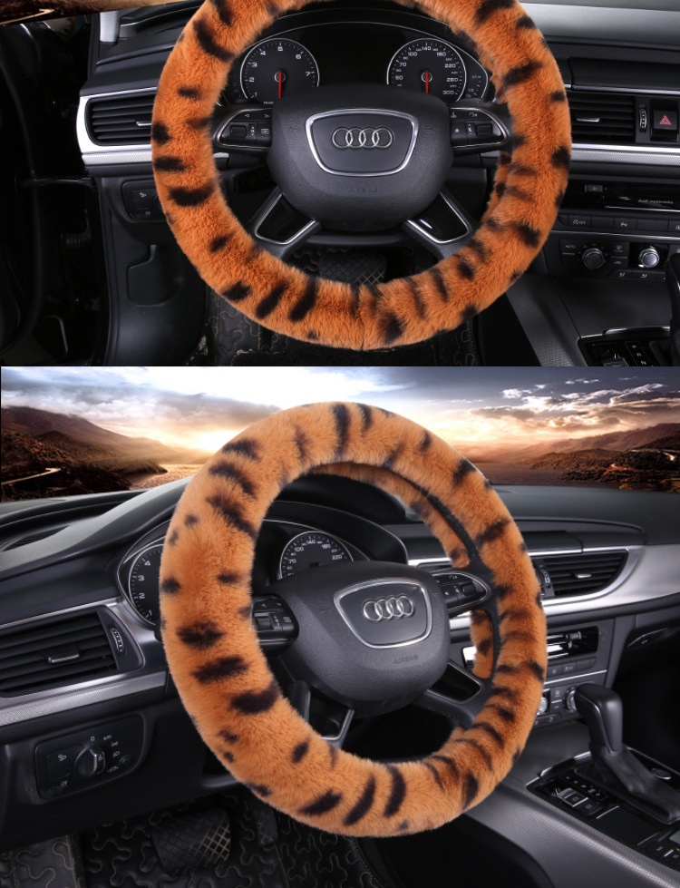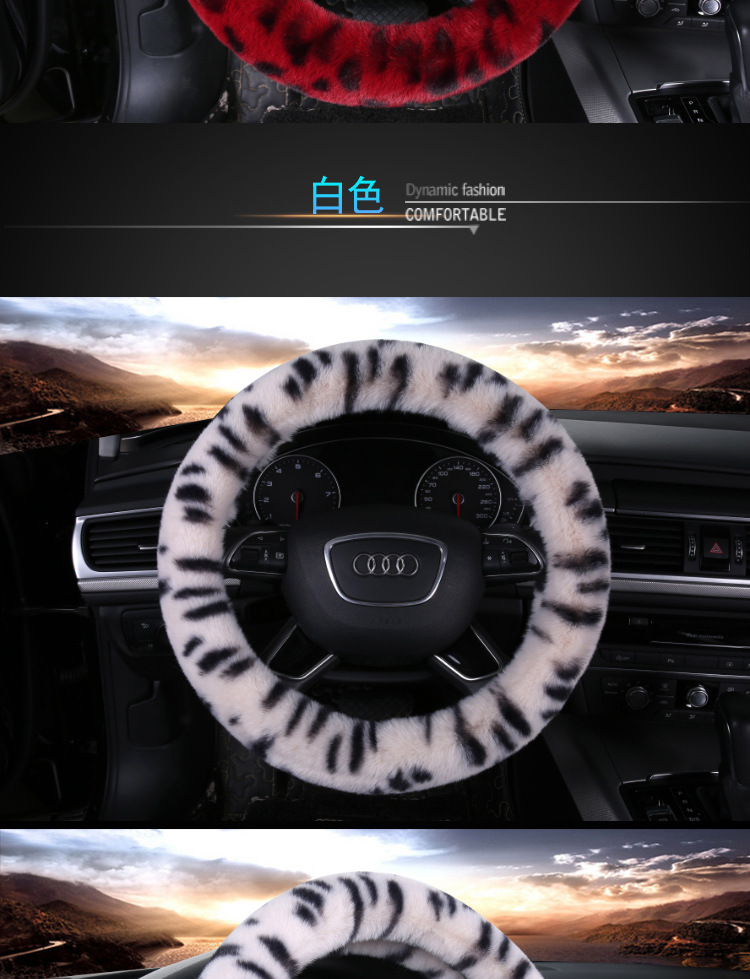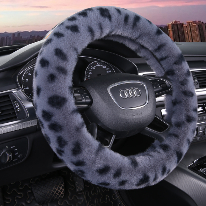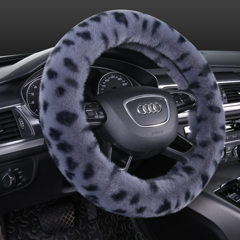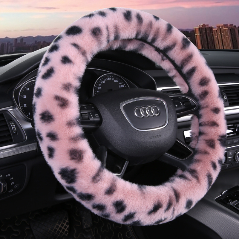 冬季汽车方向盘套兔毛绒保暖长短羊毛绒男女防滑豹纹内饰毛毛把套