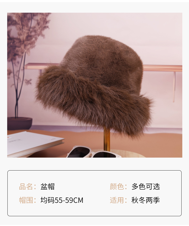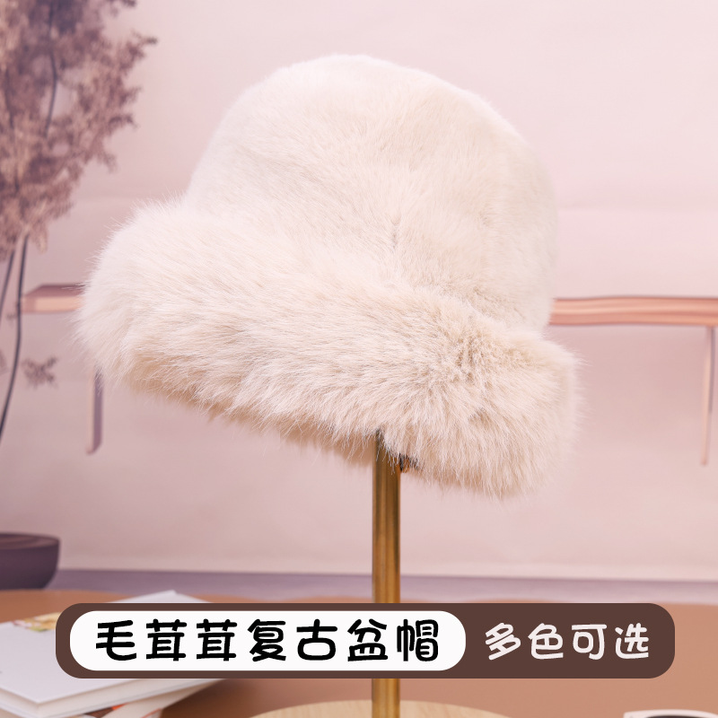 秋冬新款女防寒保暖盆帽时尚毛绒渔夫帽显脸小蒙古帽貂绒帽子批发