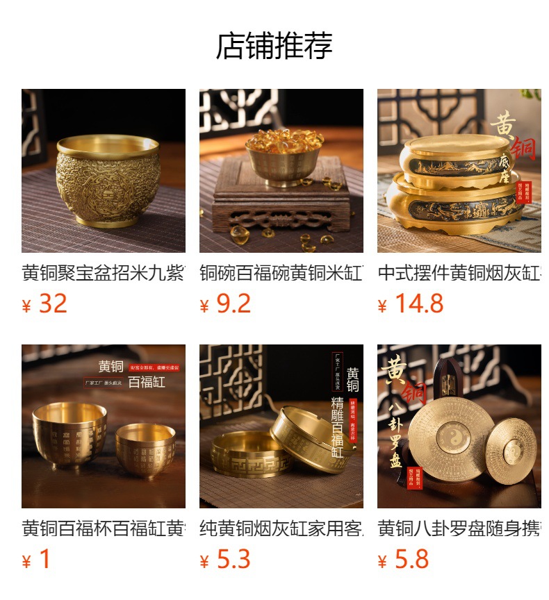 黄铜百福杯百福缸黄铜米缸聚宝盆一口杯五帝钱厂家批发代理