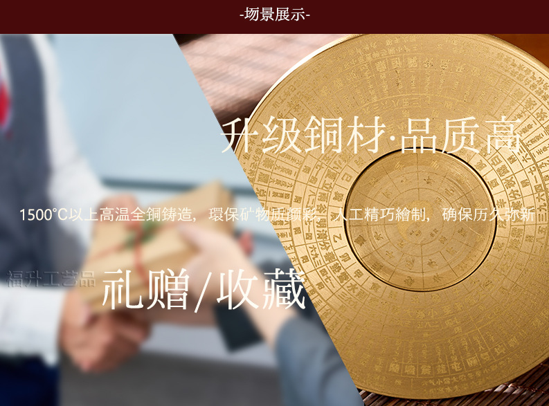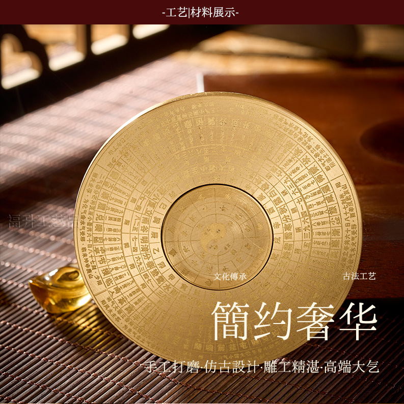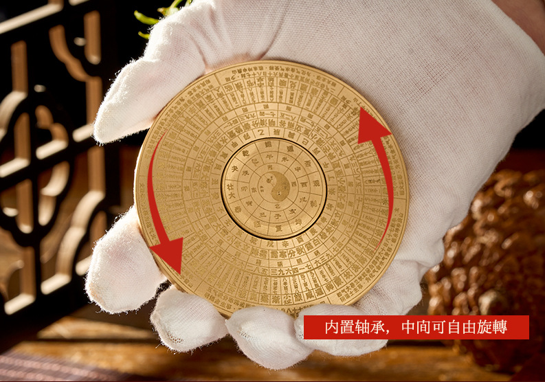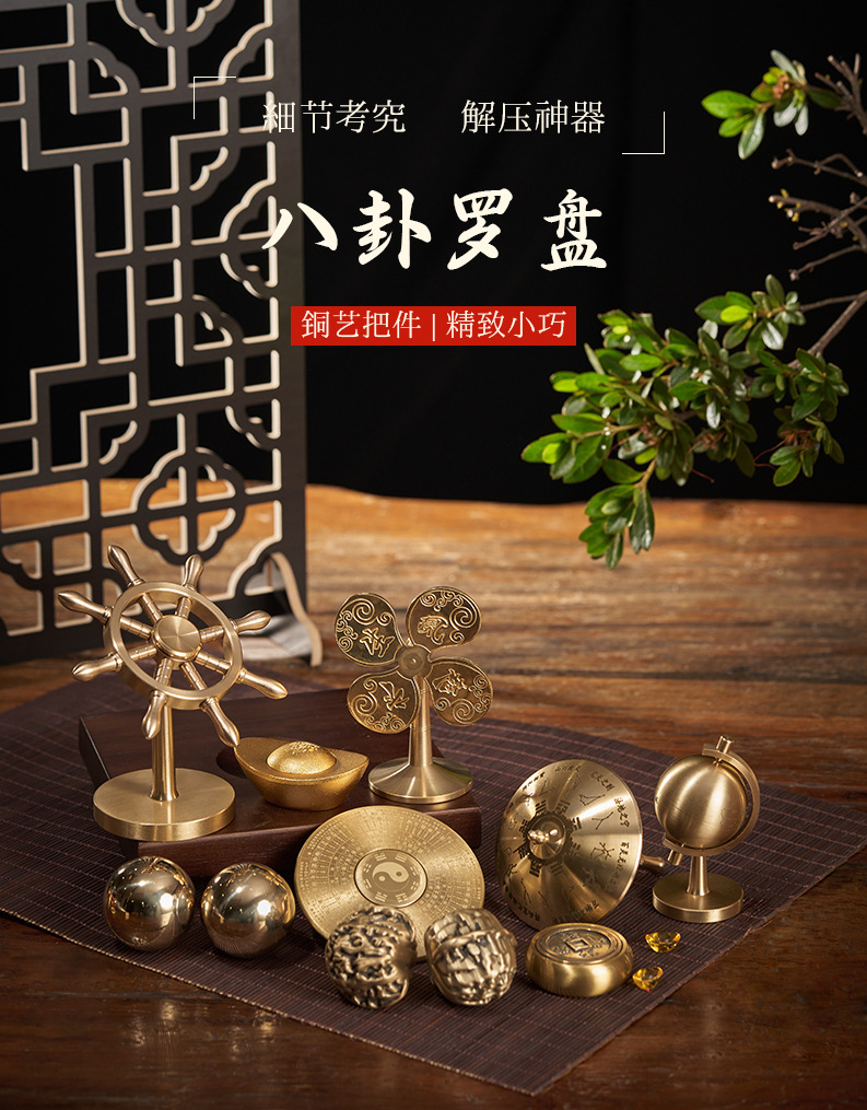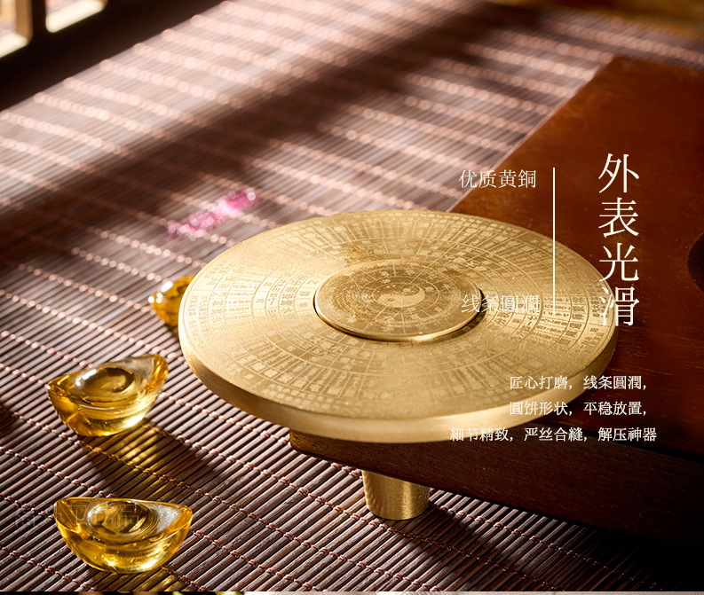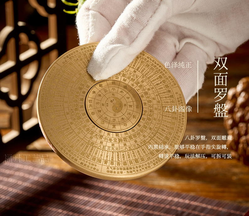 黄铜八卦罗盘随身携带家居实心八卦盘指尖陀螺可旋转工艺品摆件