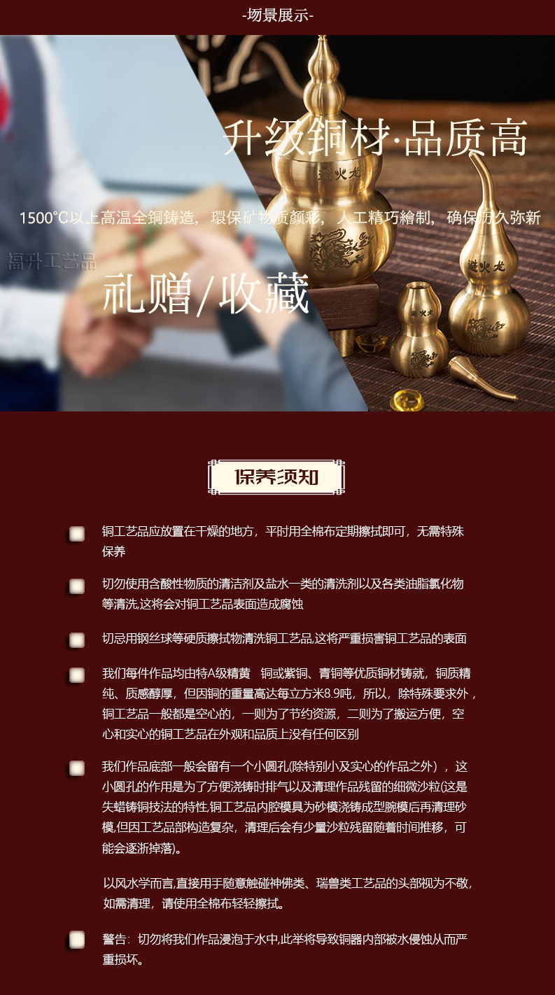 黄铜避火龙葫芦瓶厨房西北角摆件乾位火烧天门模具纳财工厂直销