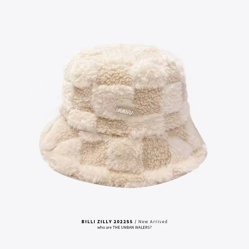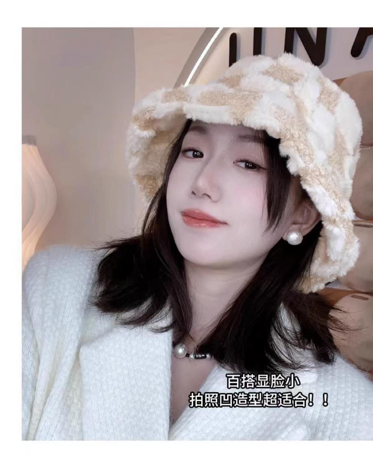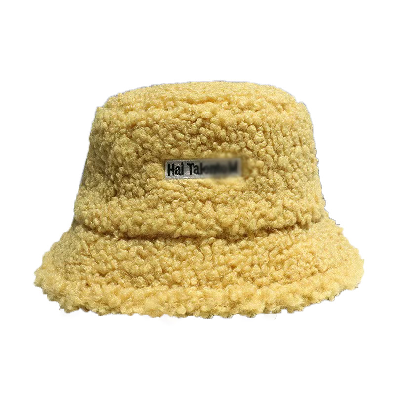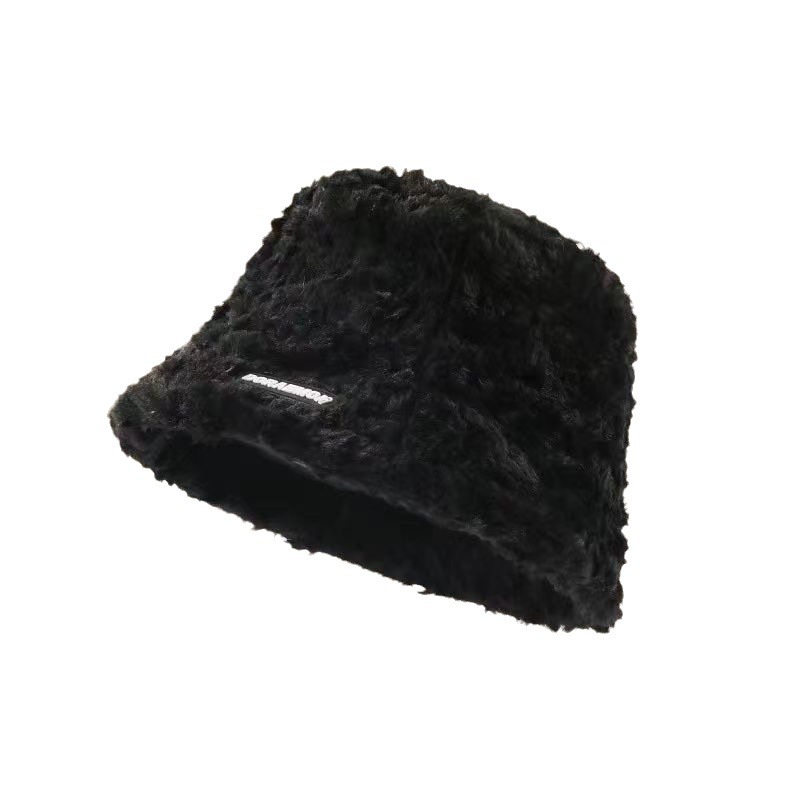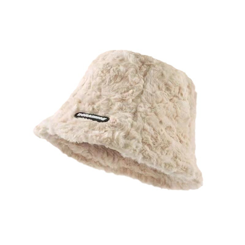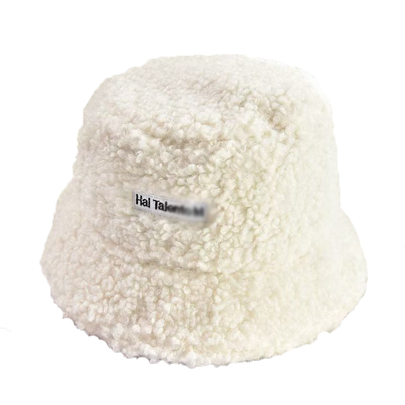 冬季羊羔绒渔夫帽子网红加厚保暖水桶帽韩版显脸小毛绒字母盆帽女