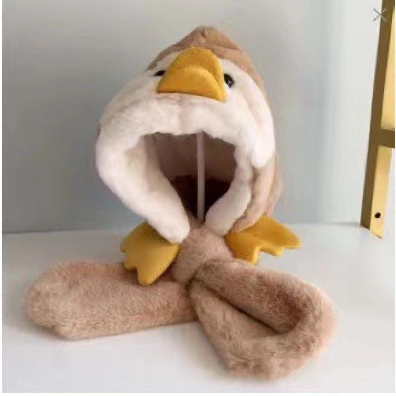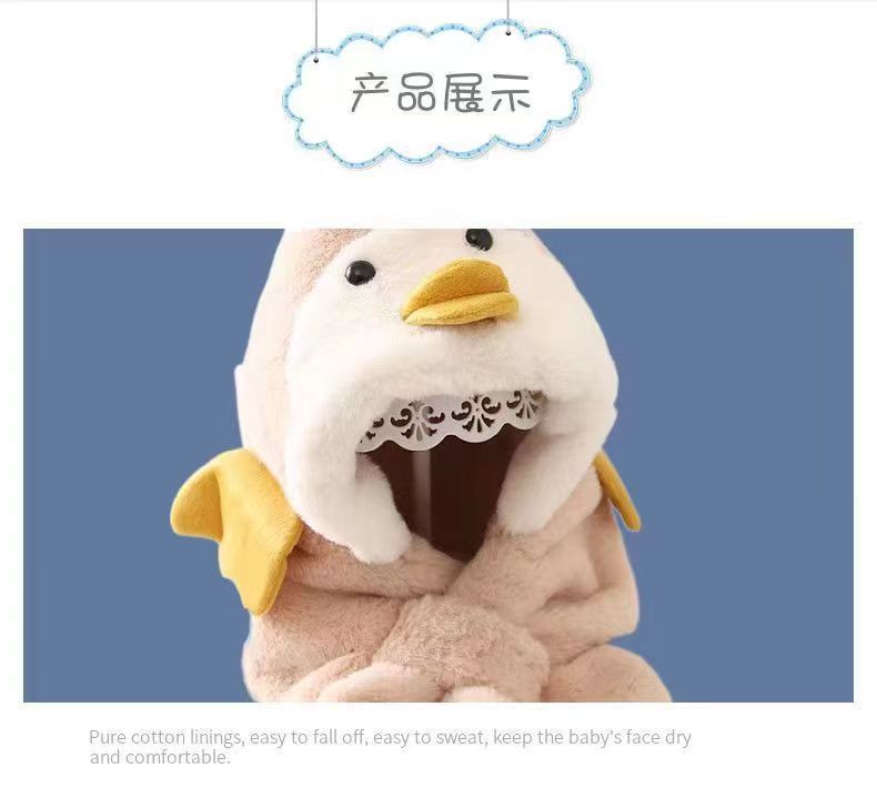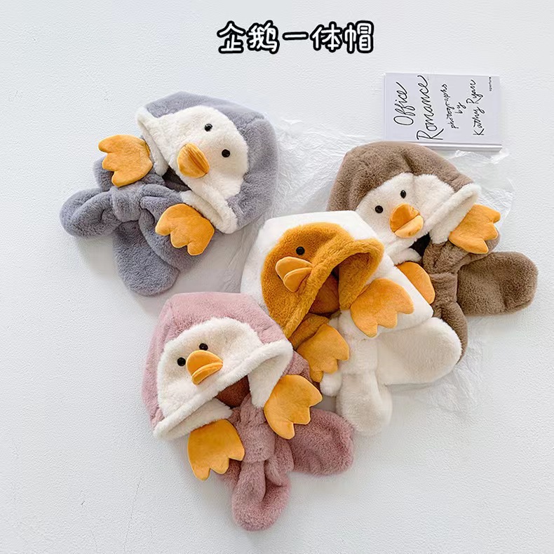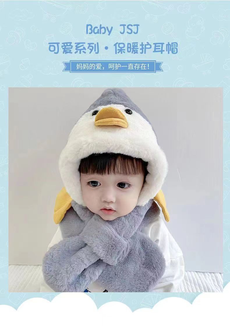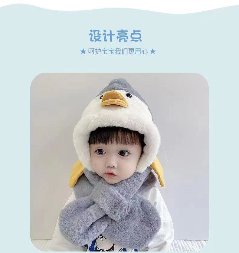 1-6岁冬季儿童保暖连体帽可爱卡通帽加绒加厚男女童帽子围巾一体