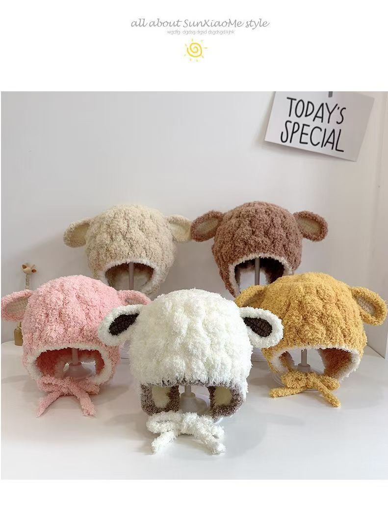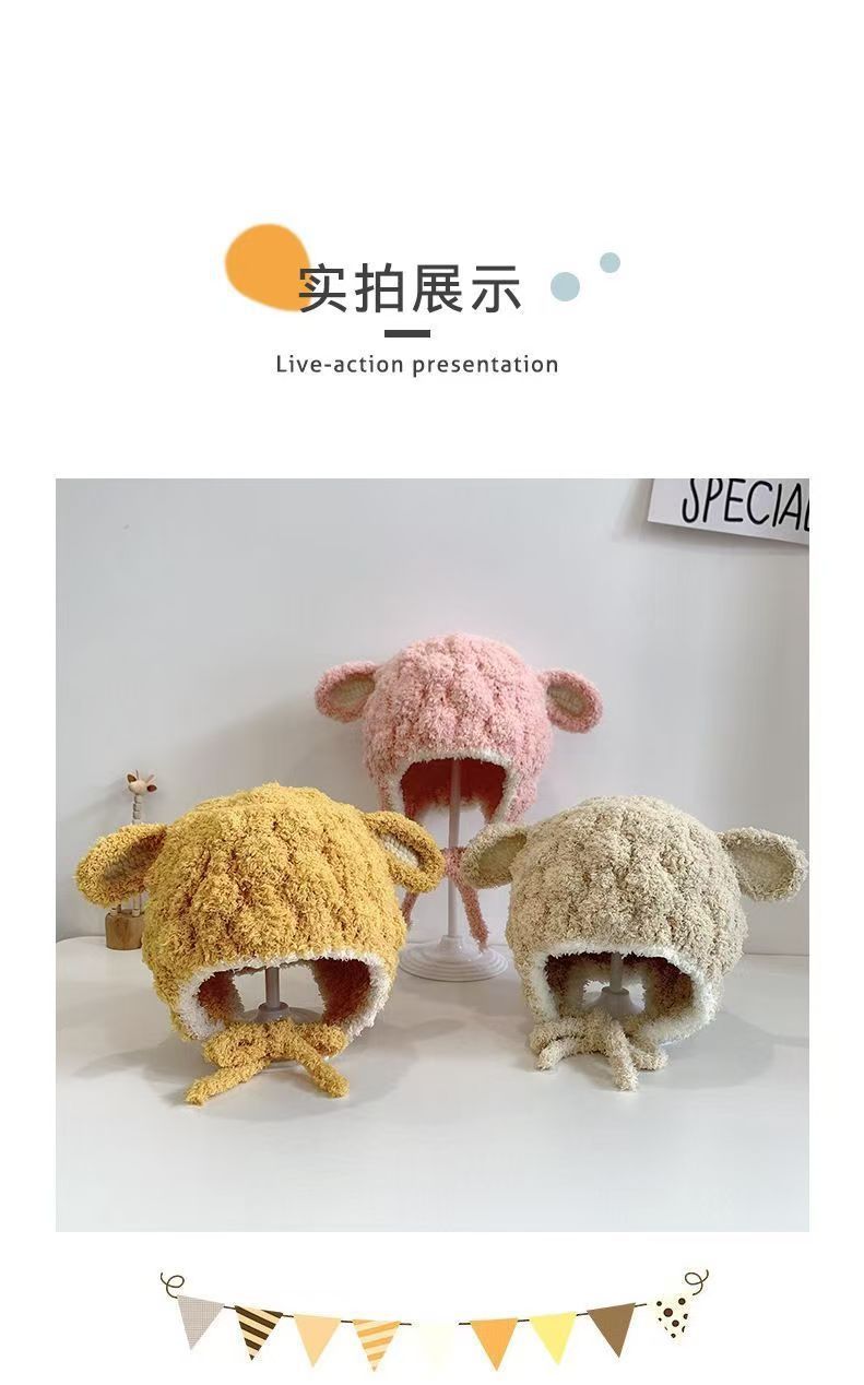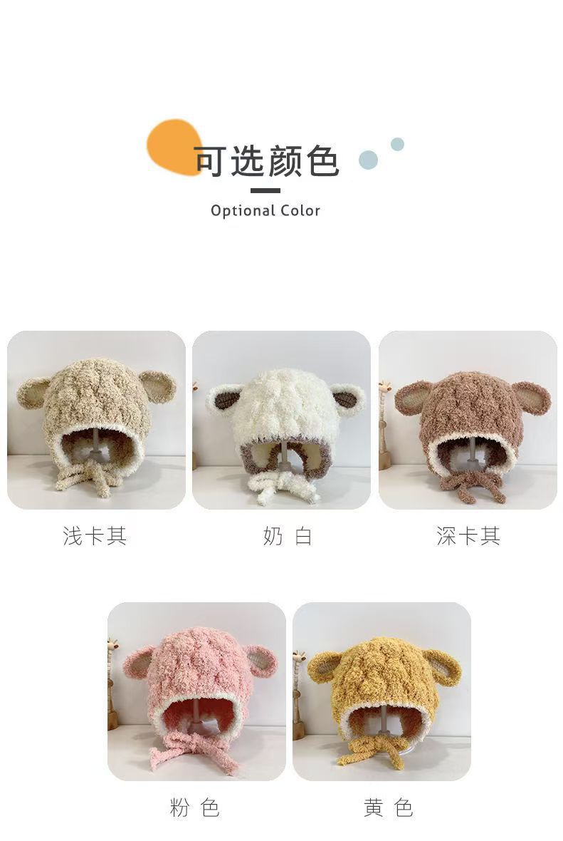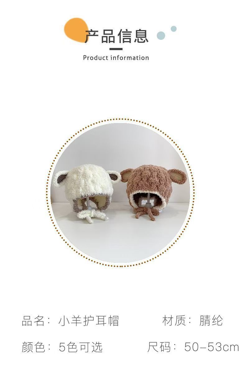 毛绒小羊宝宝帽子秋冬季护耳帽可爱幼儿童冬天男女童婴儿毛线帽