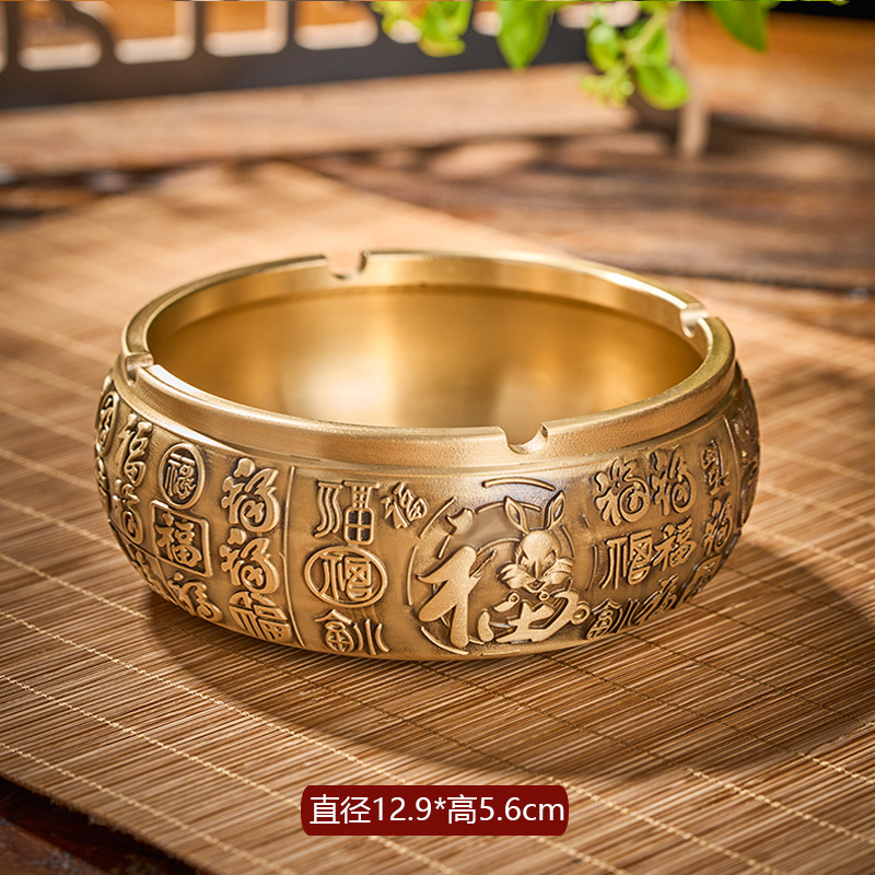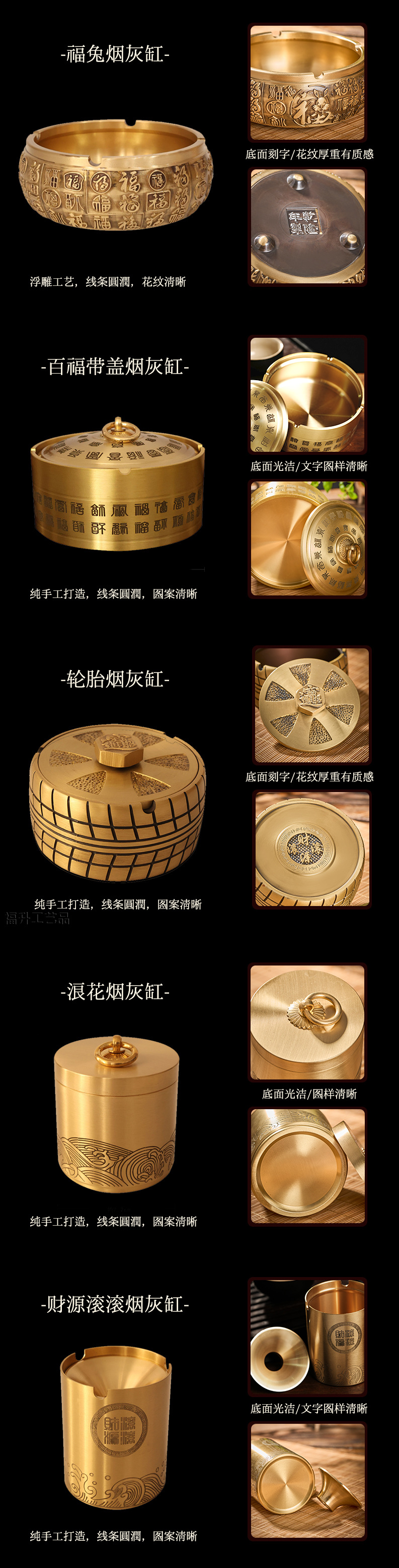 黄铜烟灰缸铁艺百福中式五牛虎万字纹摆件工艺品定制金属