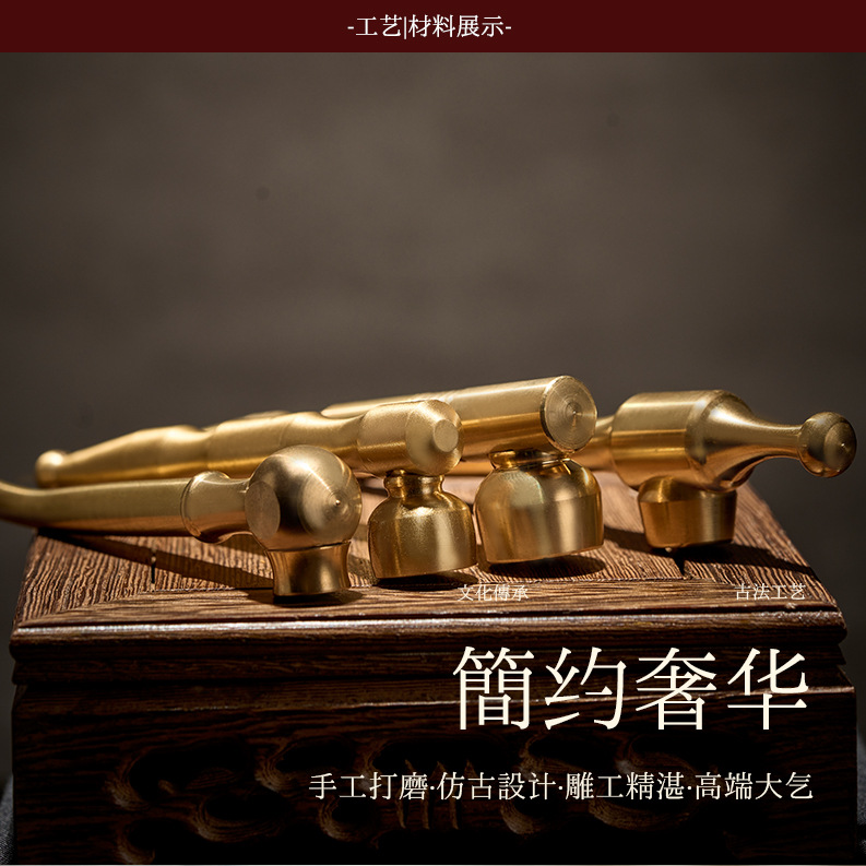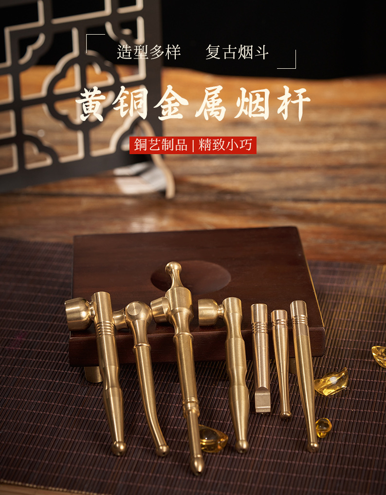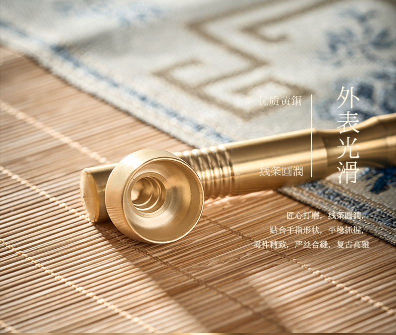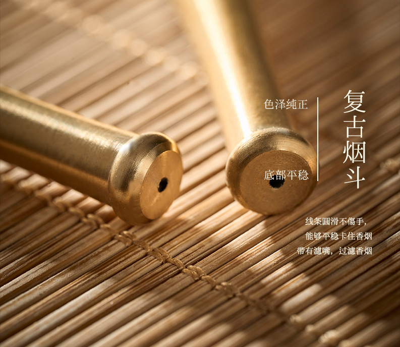 纯黄铜烟斗老式烟袋烟杆便携金属烟枪两用带过滤烟嘴复古旱烟杆