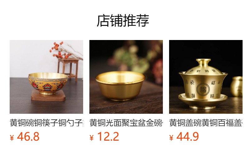 黄铜金碗光面聚宝盆中式供水双喜铜碗佛堂铜钱摆件春节母亲节