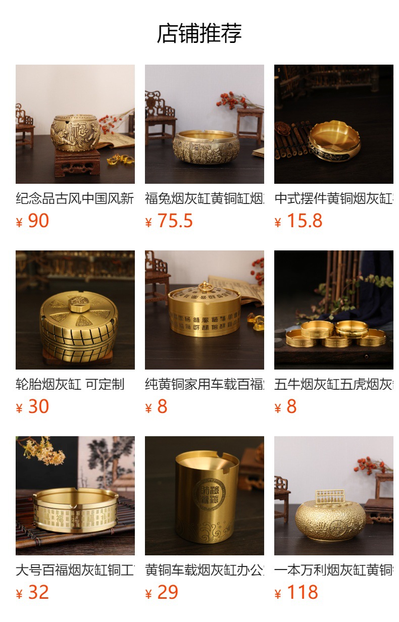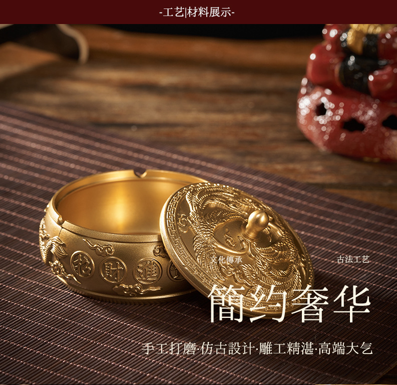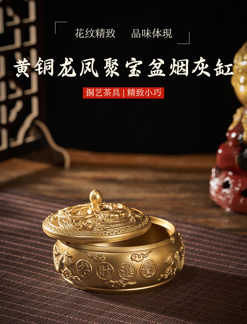 烟灰缸黄铜办公室摆件家用中式复古铜烟灰缸仿古仿古摆件双龙龙凤