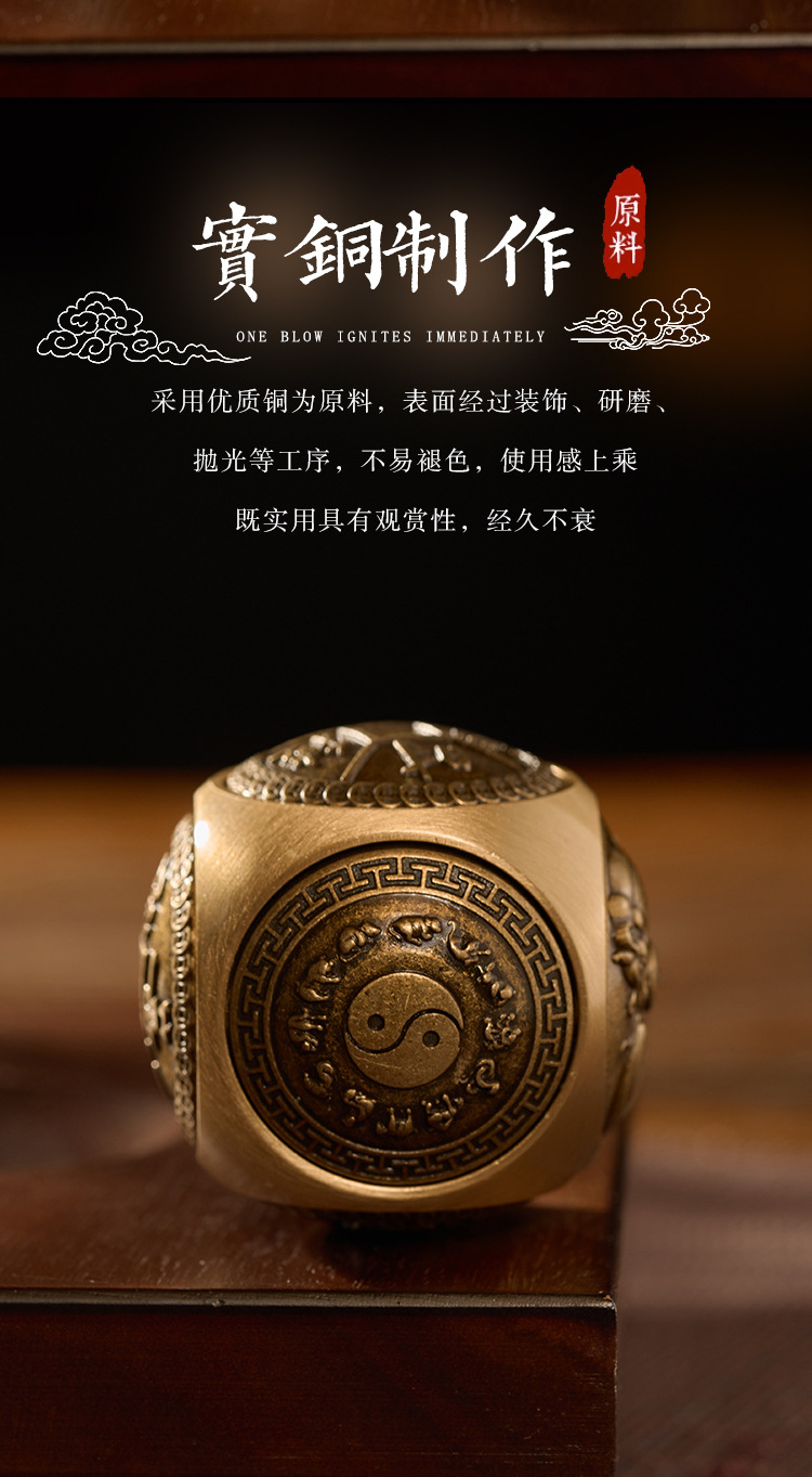 黄铜手把件六面圆形转转转钱解压赚钱五帝铜钱金属文玩摆件批发