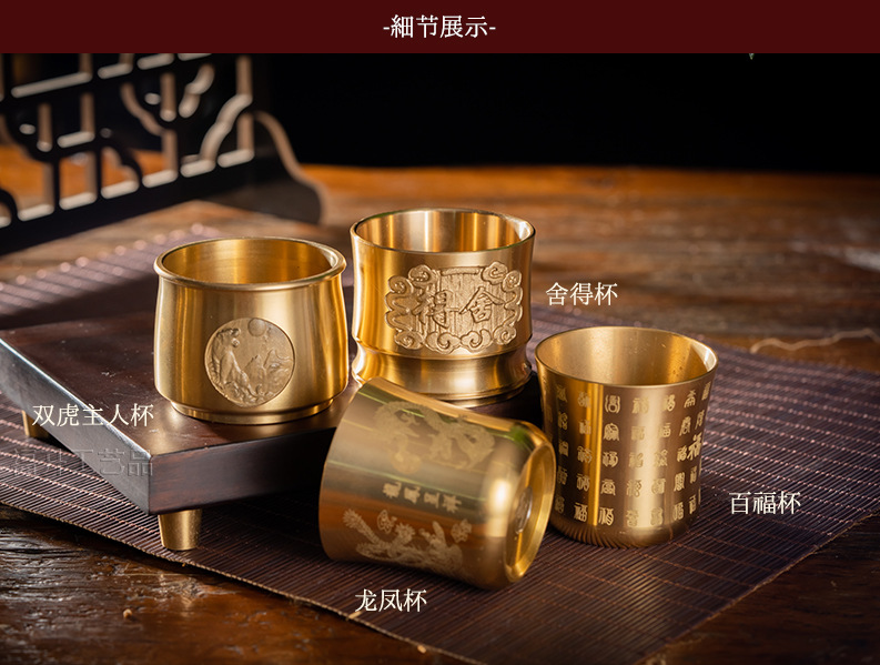 纯黄铜酒杯金属百福龙凤摆件酒宴小酒杯高脚杯供水杯酒具装饰