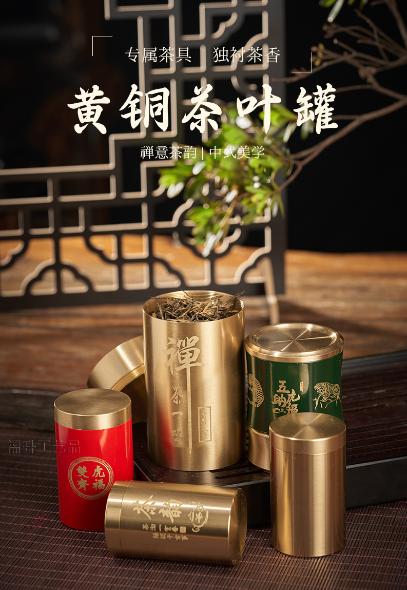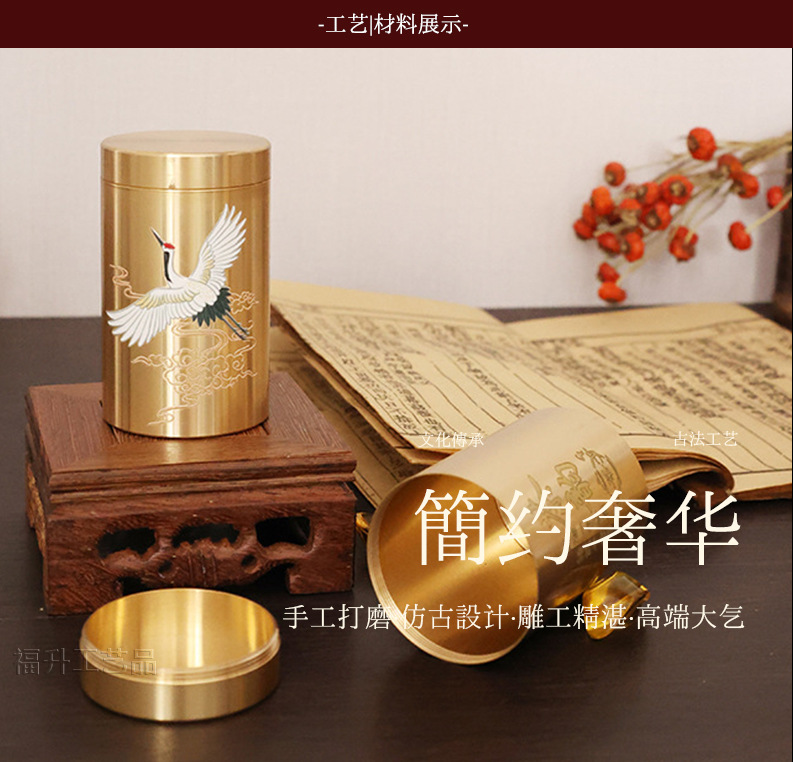 黄铜茶具茶叶罐密封储茶办公室桌面摆件随身便携旅行中国风储物