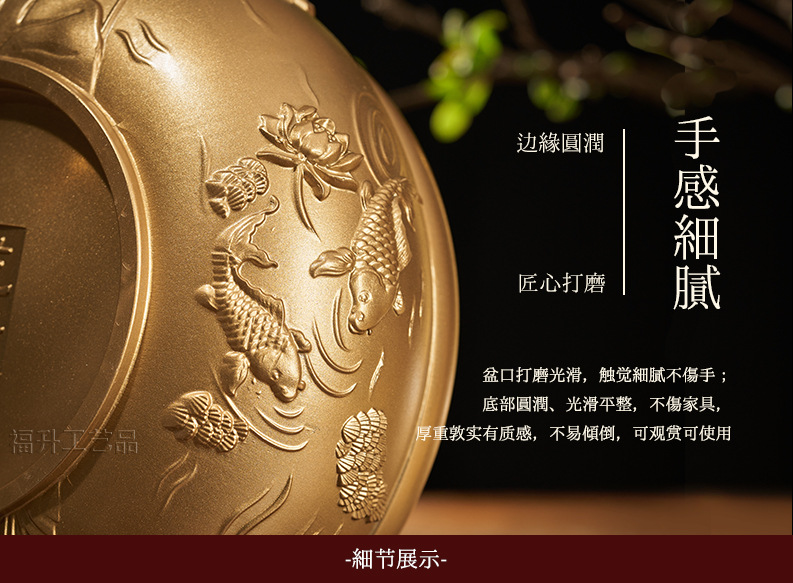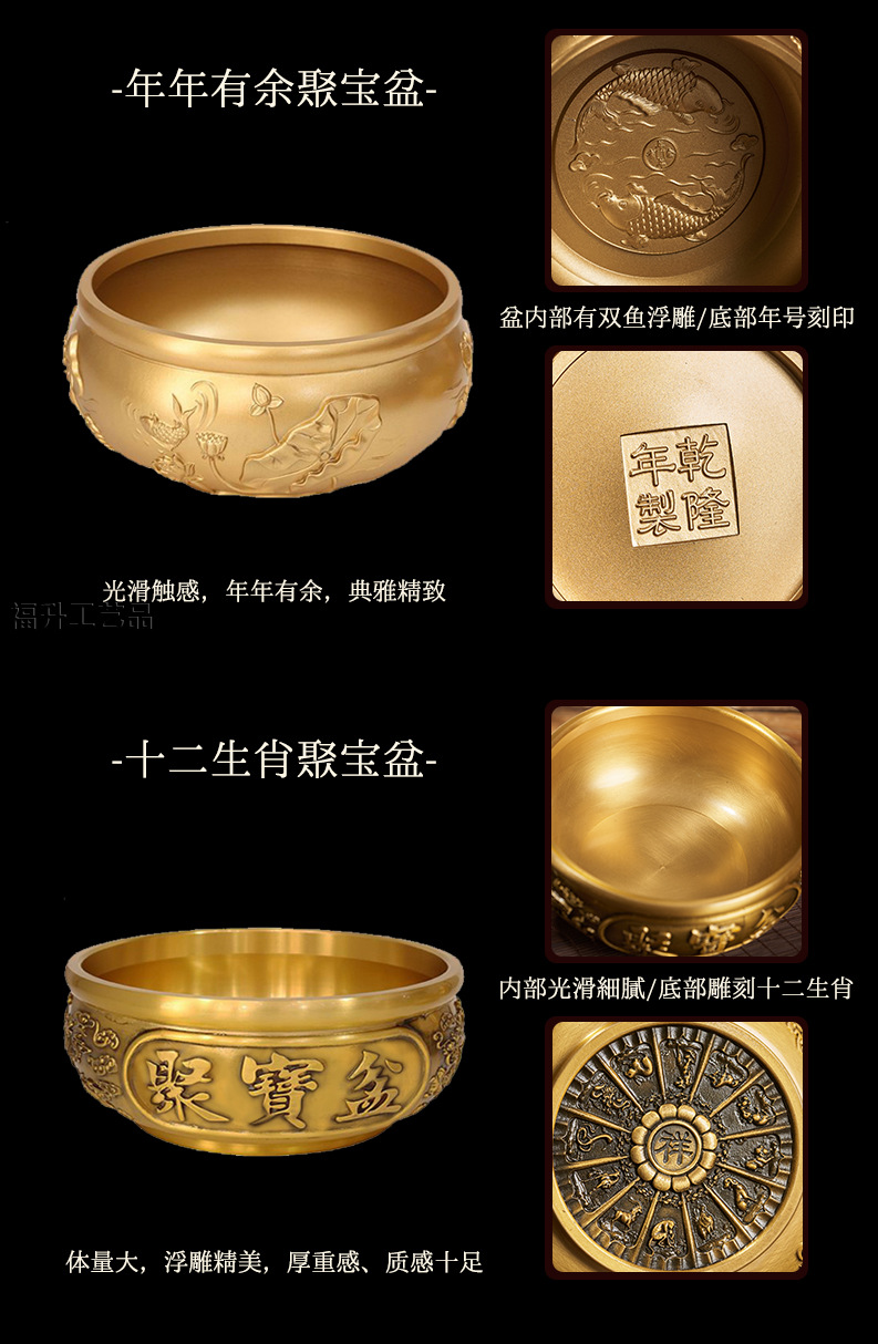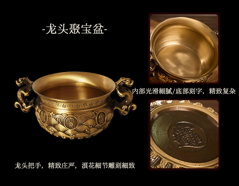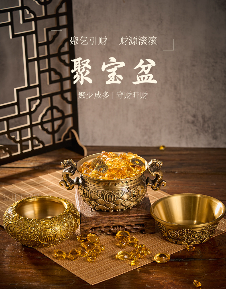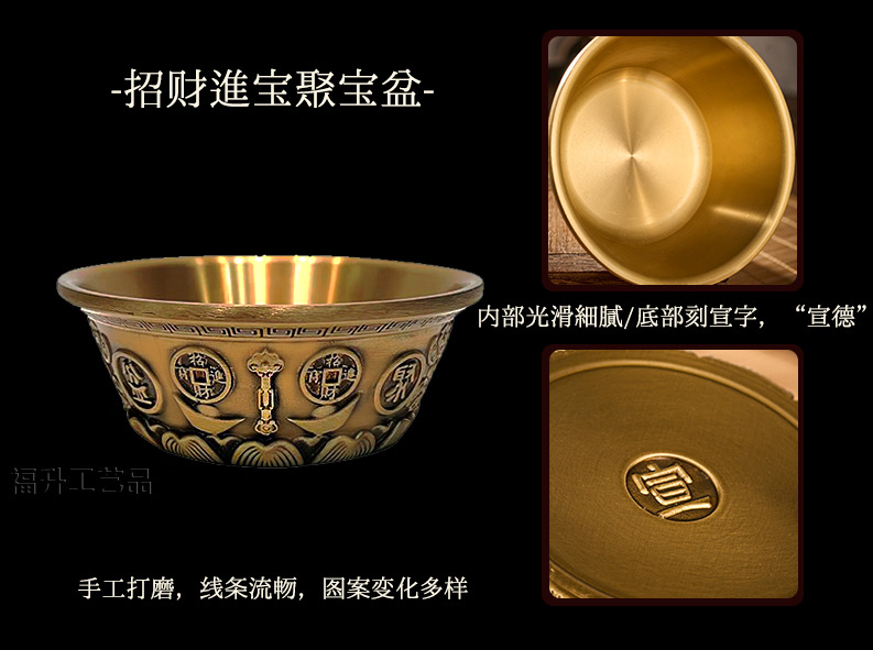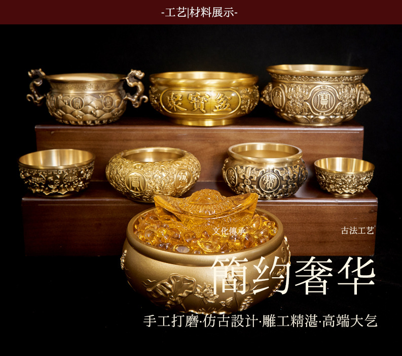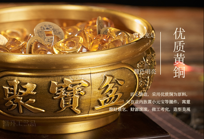 黄铜聚宝盆铜钱古典中式纯黄铜百福缸工艺品几何米缸
