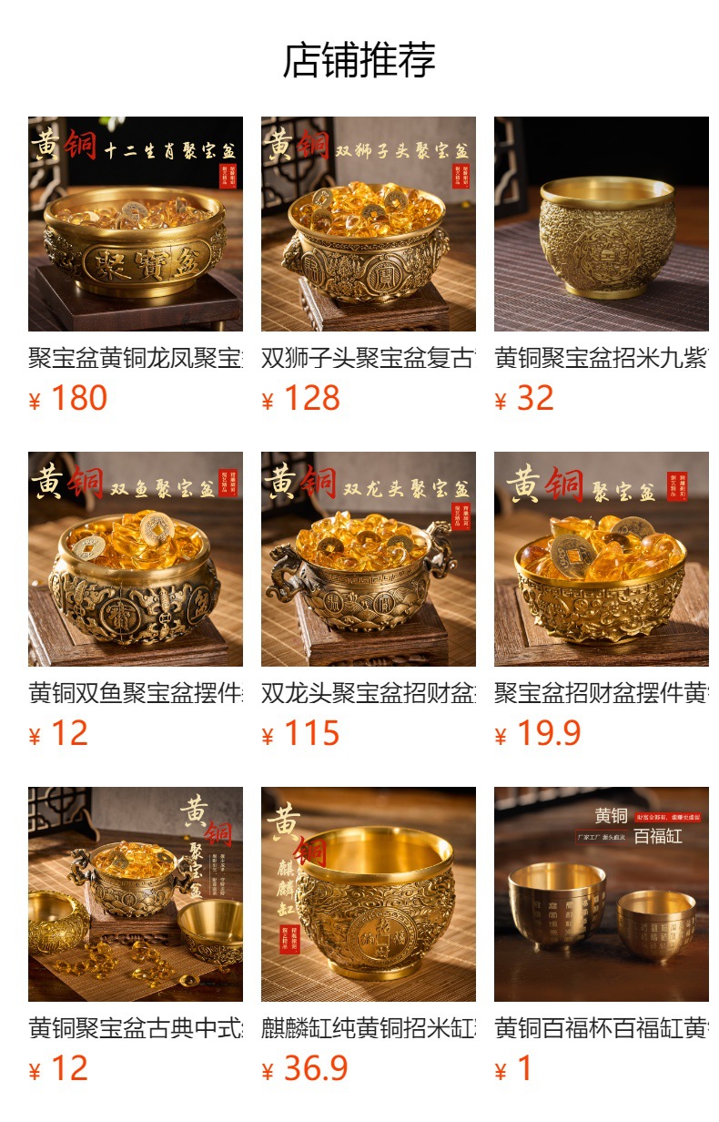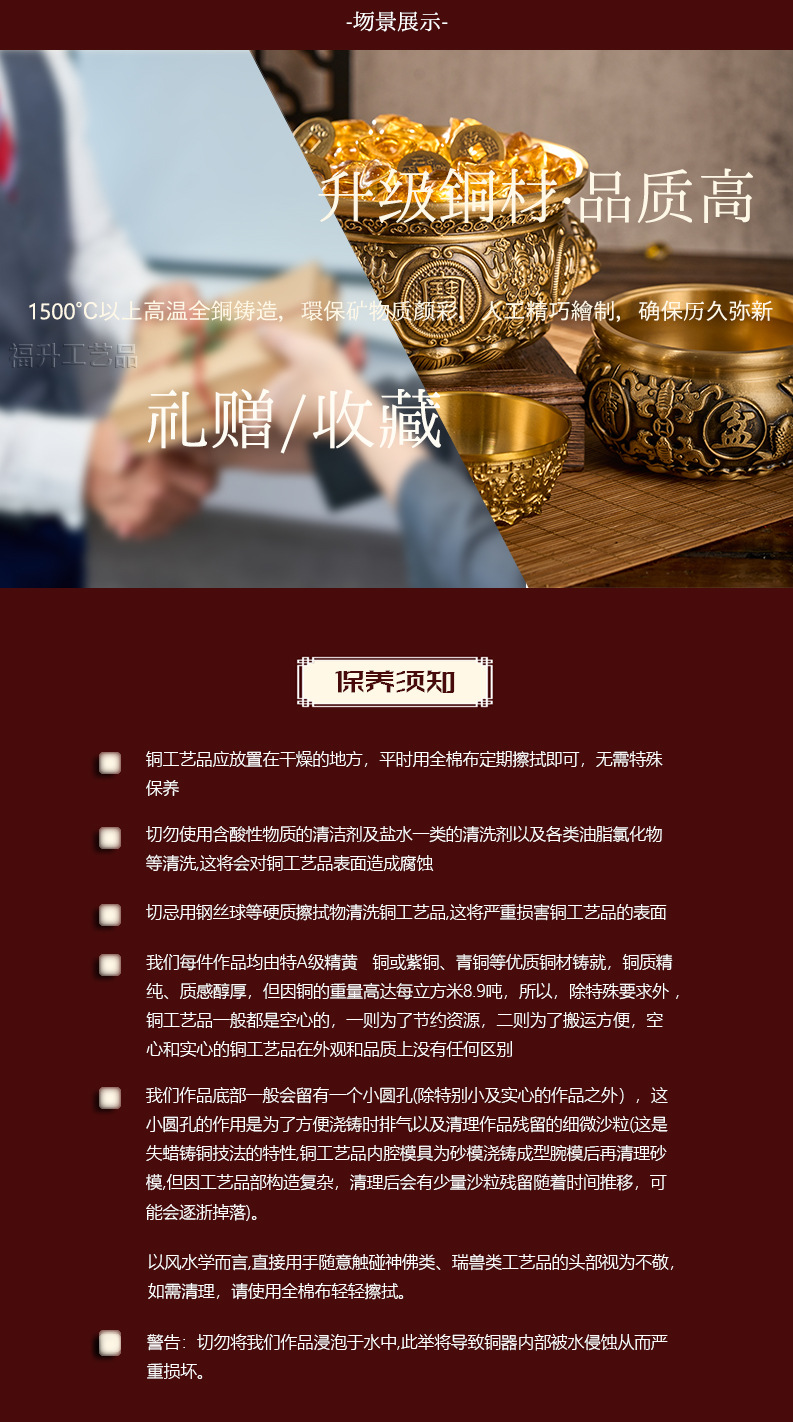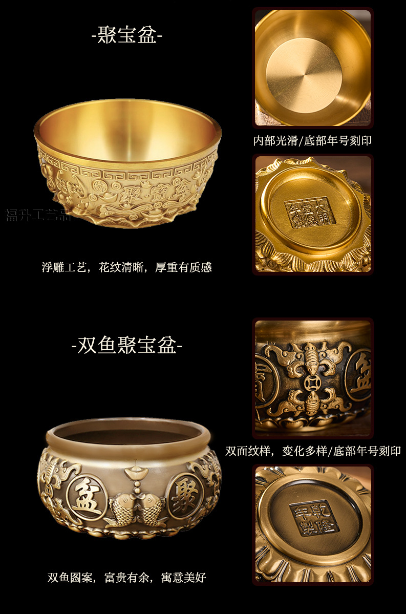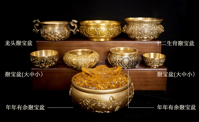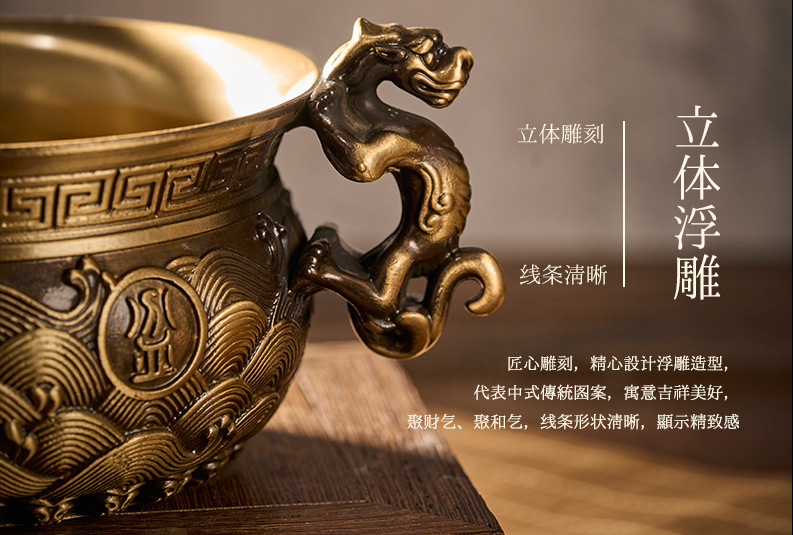 黄铜聚宝盆铜钱古典中式纯黄铜百福缸工艺品几何米缸