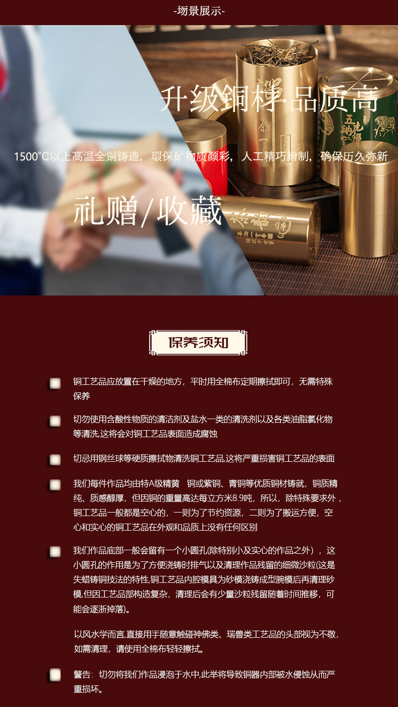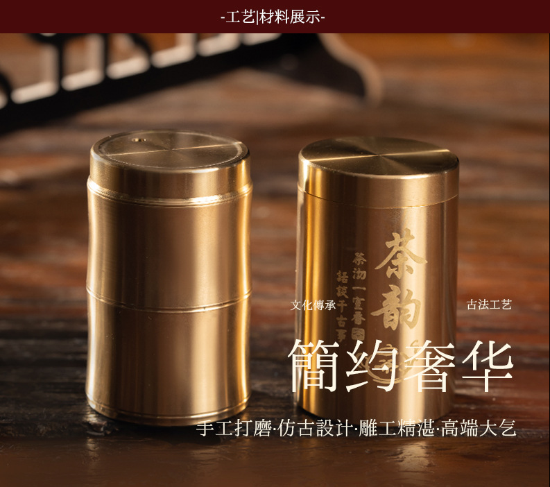 黄铜茶叶罐牙签罐便携旅行茶具铜制茶道茶叶储存密封罐批发储物罐