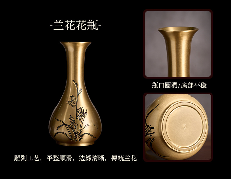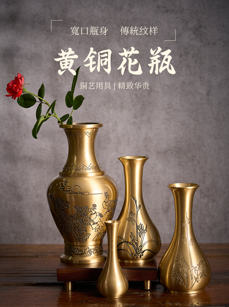 黄铜小花瓶干花花瓶手掌摆件桌面装饰仿古花器金属客厅插花创意铜
