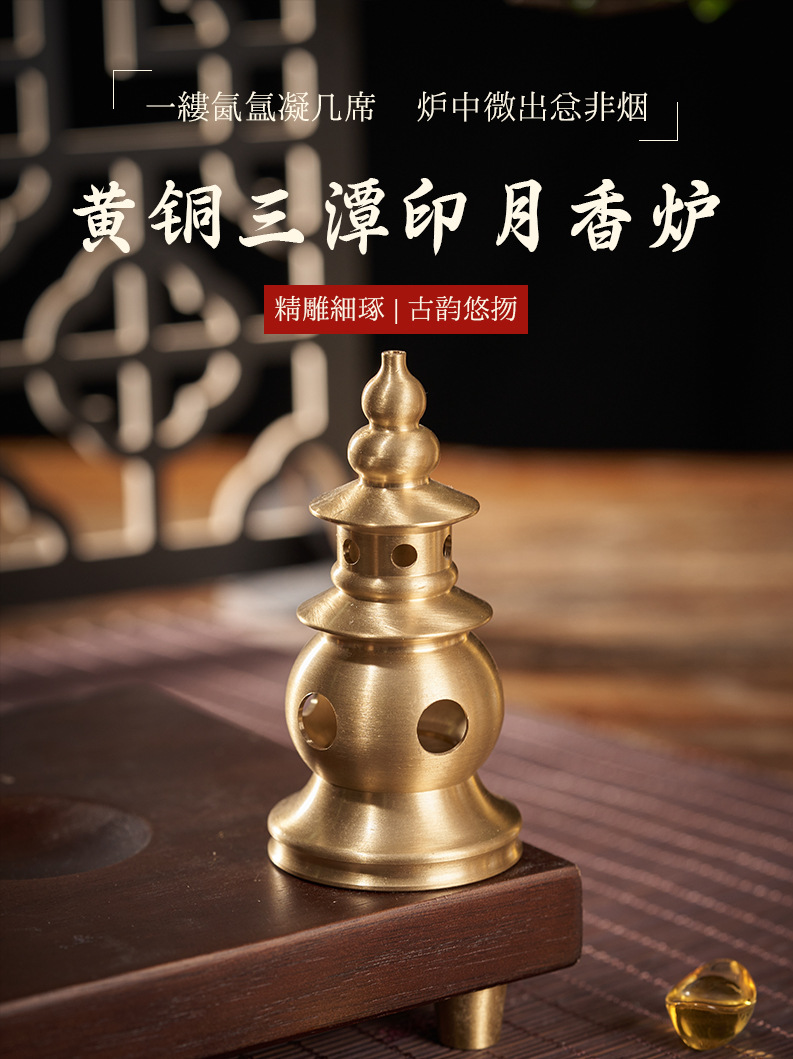 三潭印月香炉黄铜葫芦型熏香炉金属工艺品室内装饰品礼品摆件批发